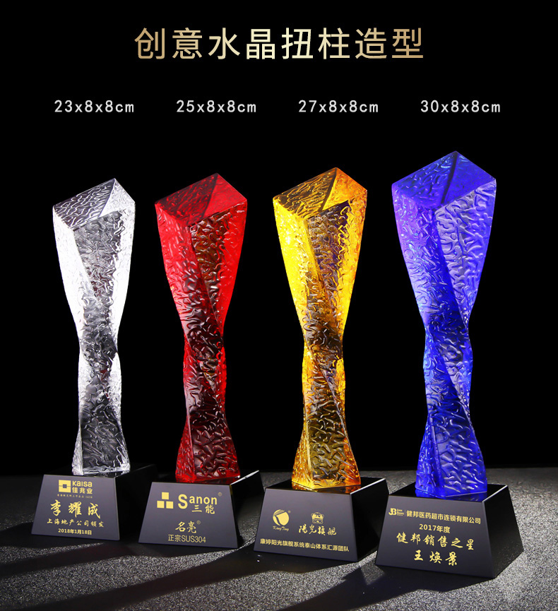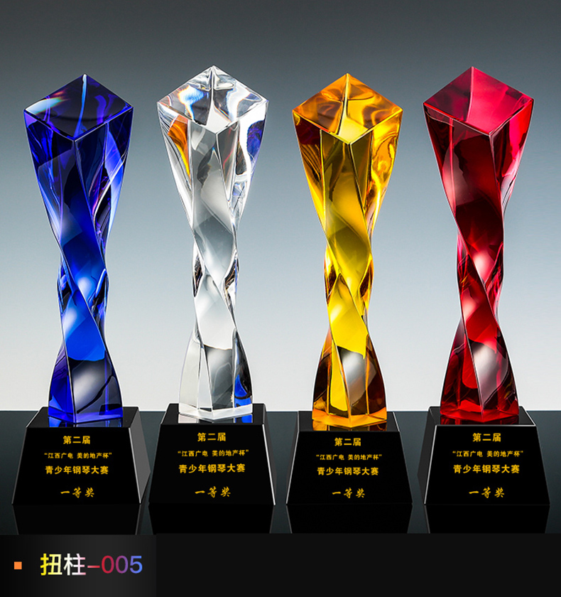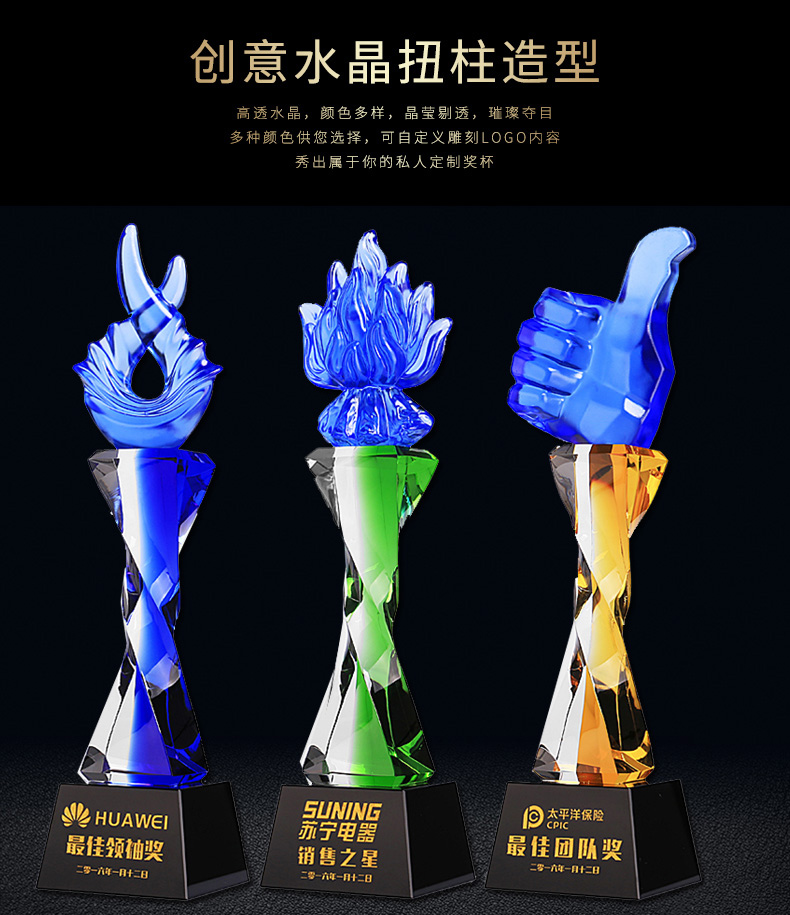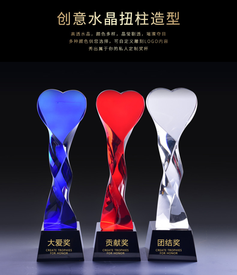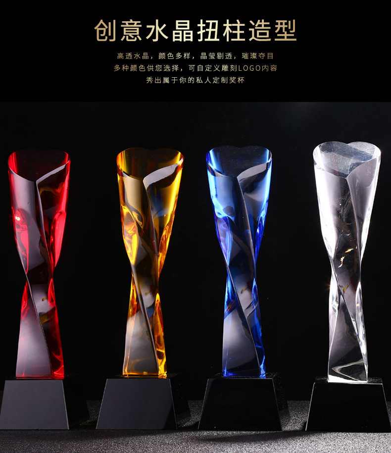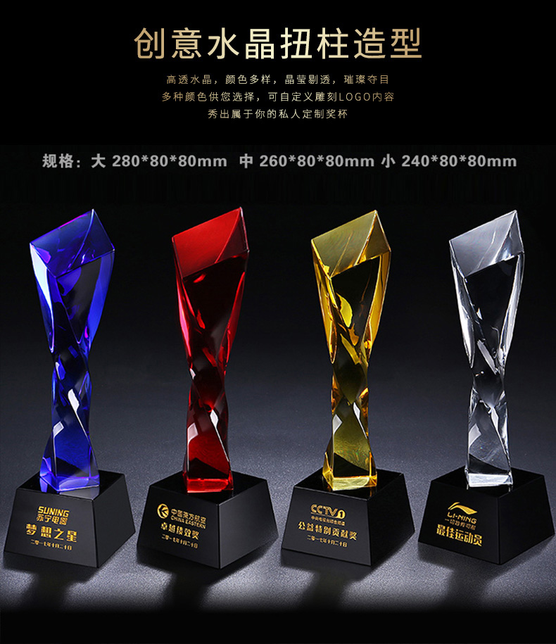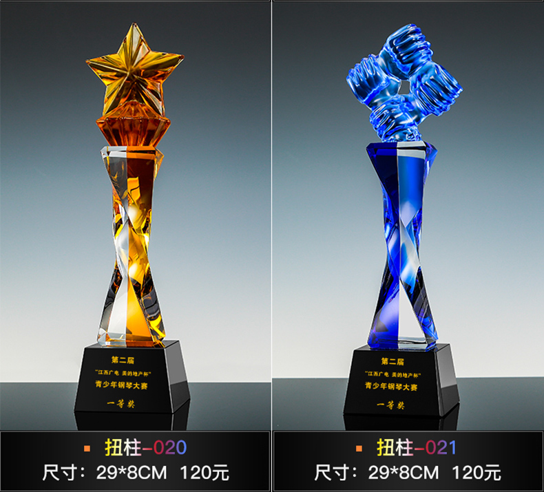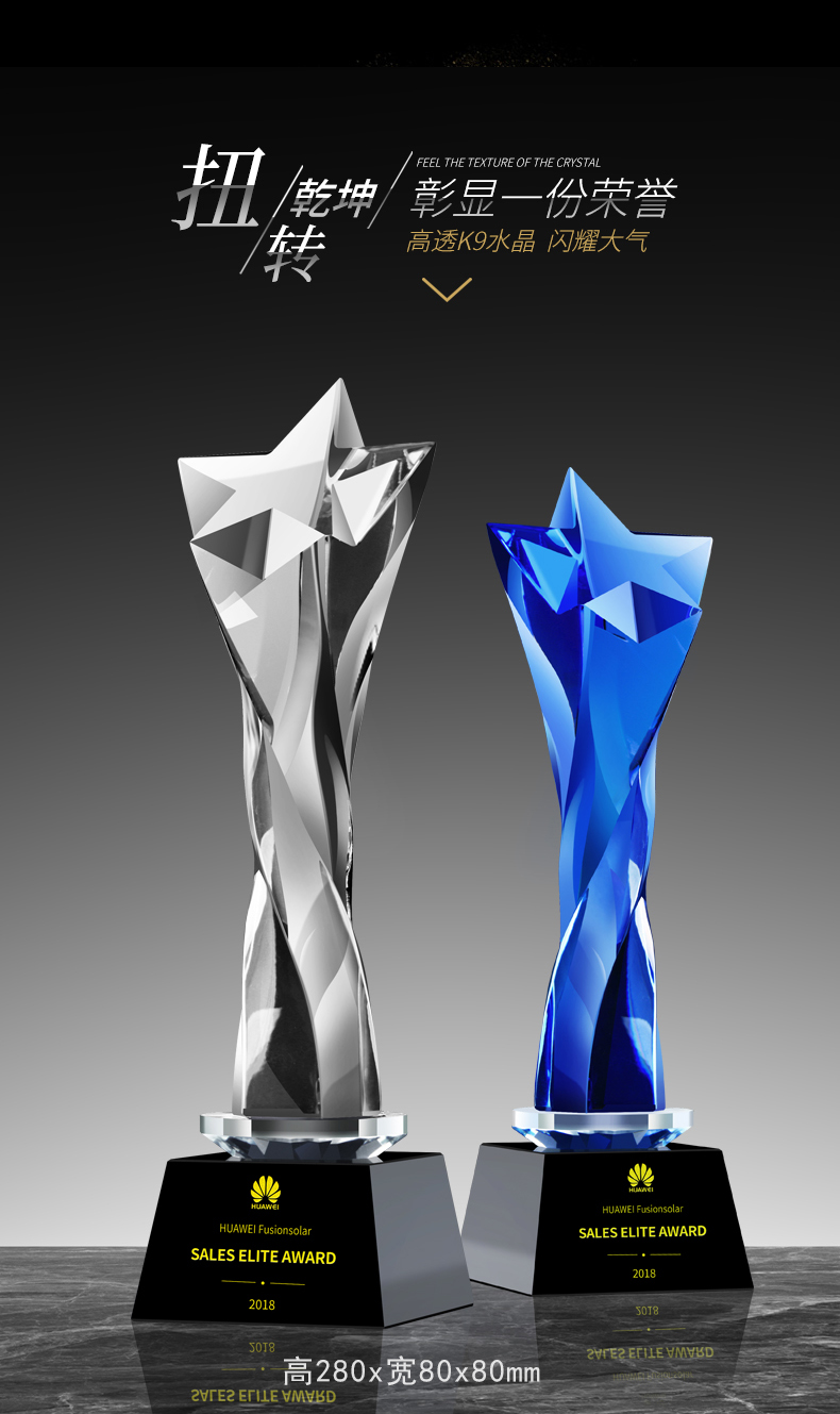 1002 / 蓝色红色扭柱高档五角星水晶奖杯定制企业优秀员工比赛创意奖牌定做
