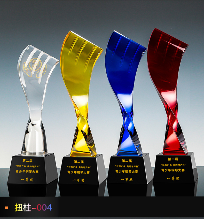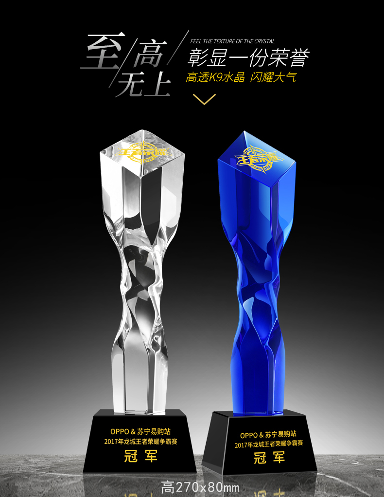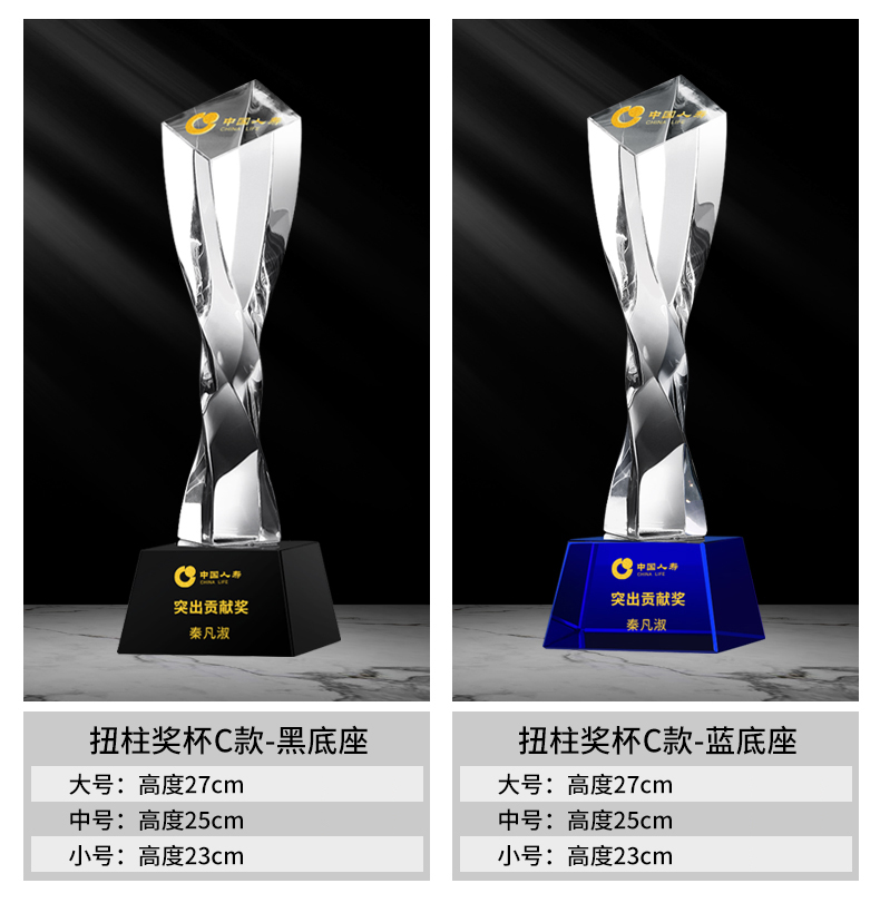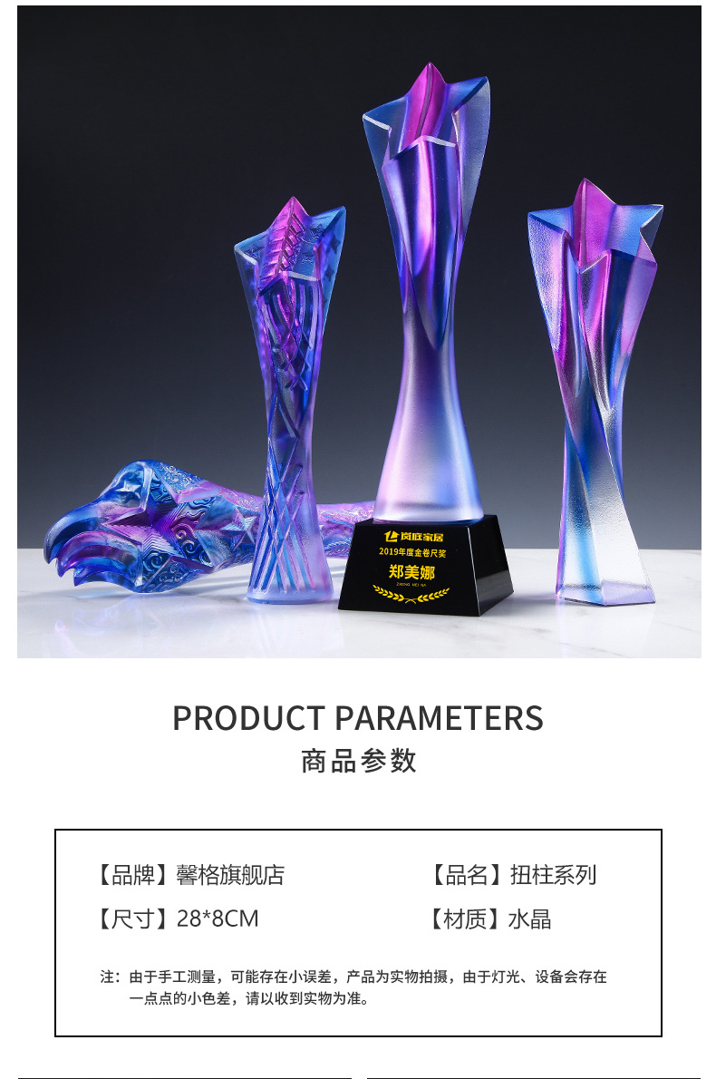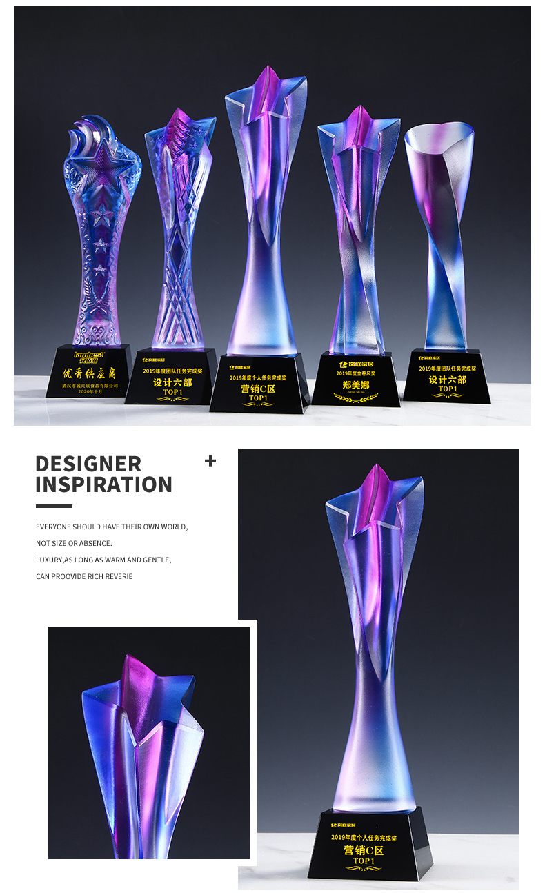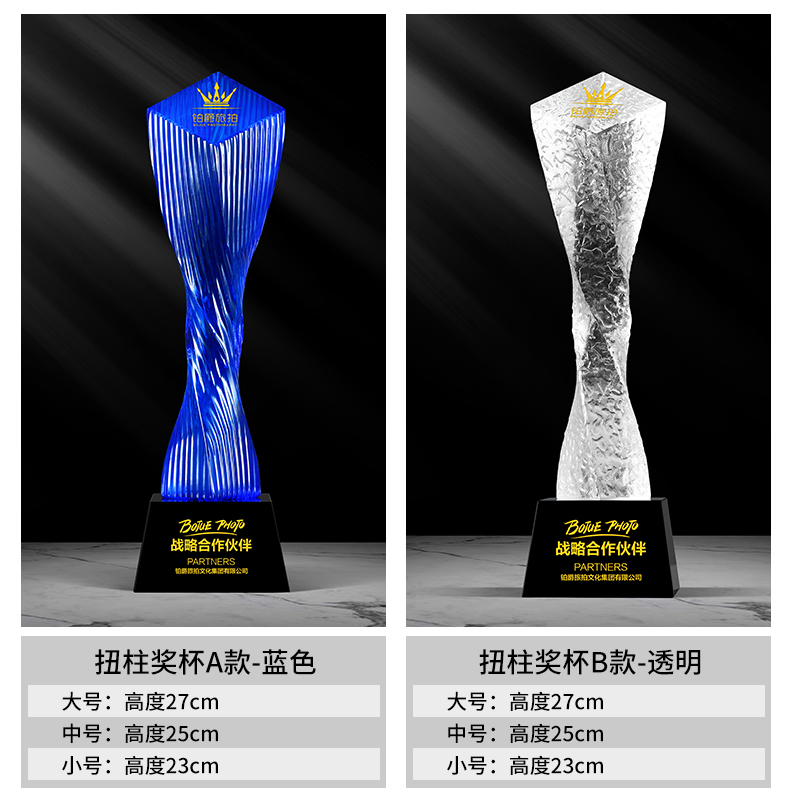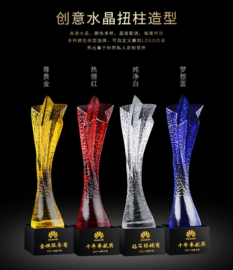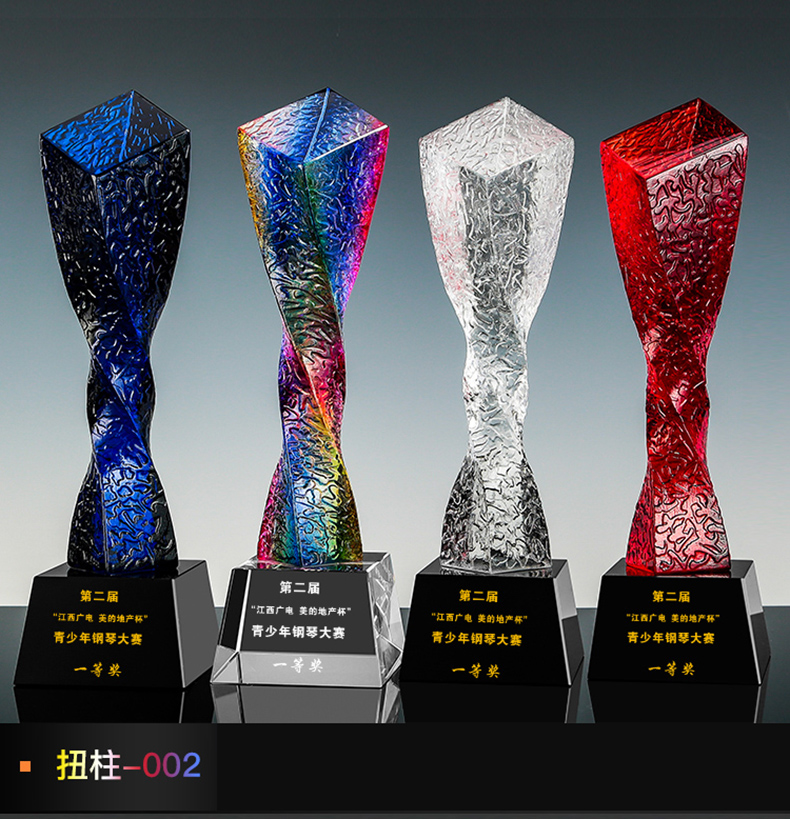 1002 / 蓝色红色扭柱高档五角星水晶奖杯定制企业优秀员工比赛创意奖牌定做