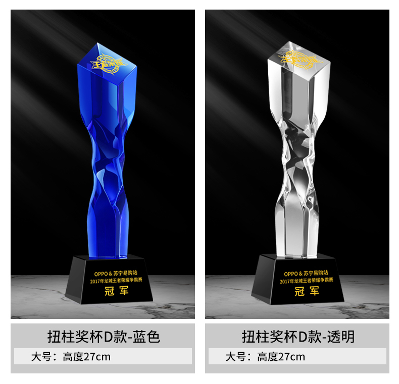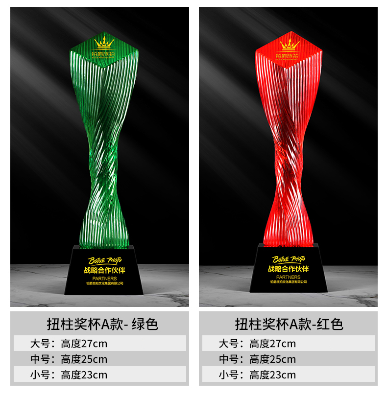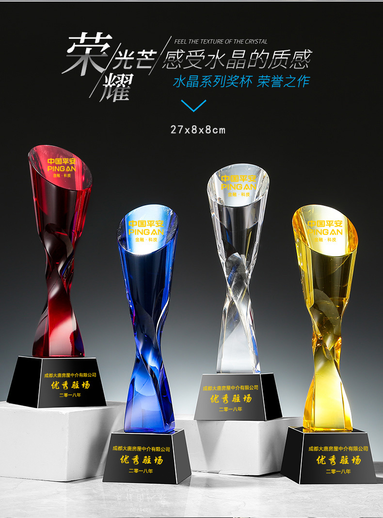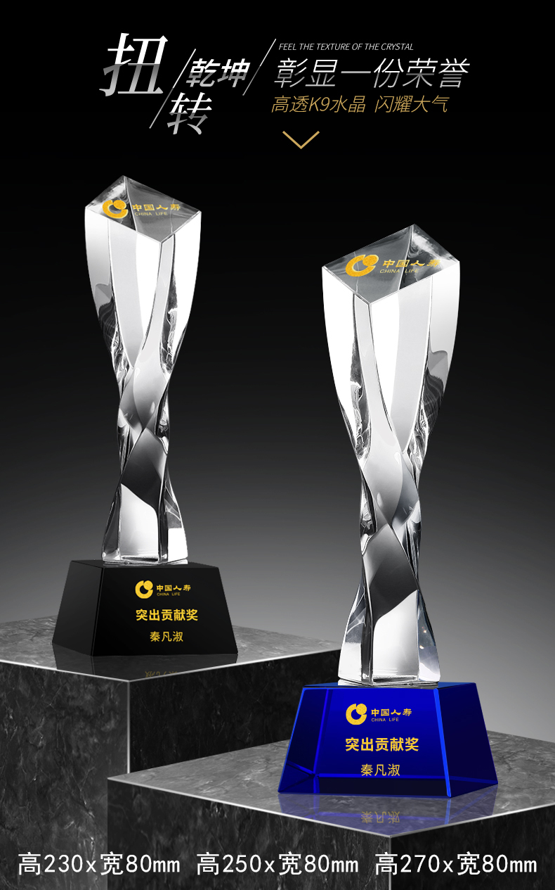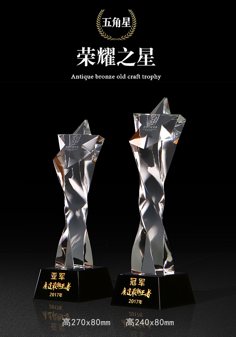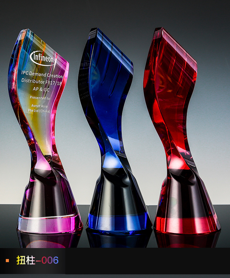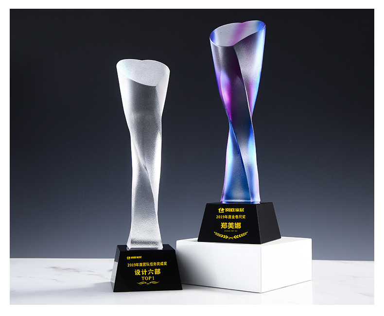 1002 / 蓝色红色扭柱高档五角星水晶奖杯定制企业优秀员工比赛创意奖牌定做