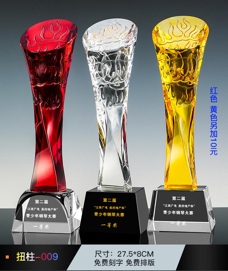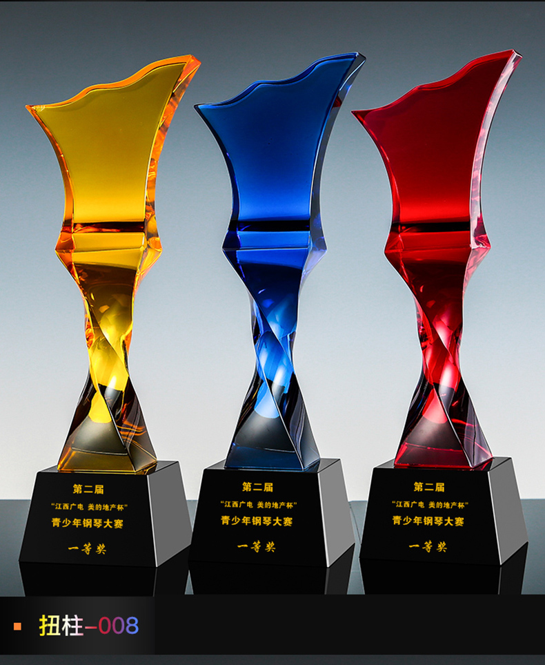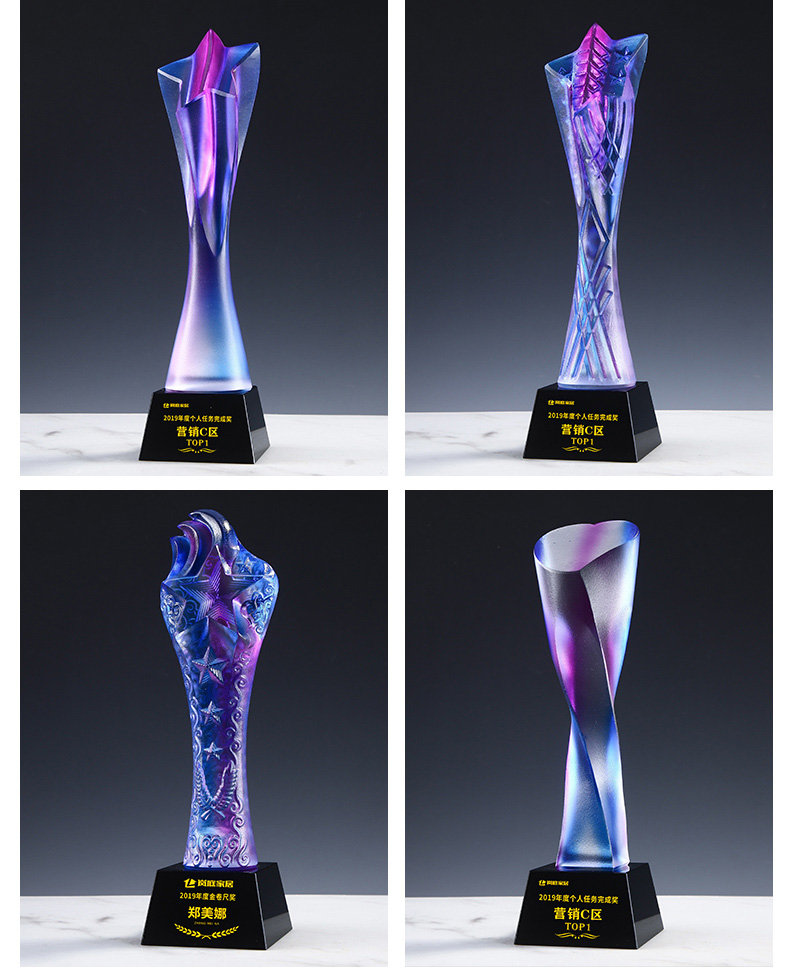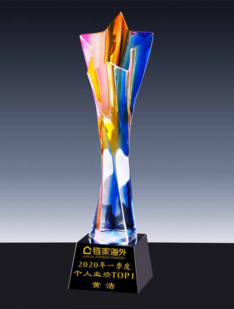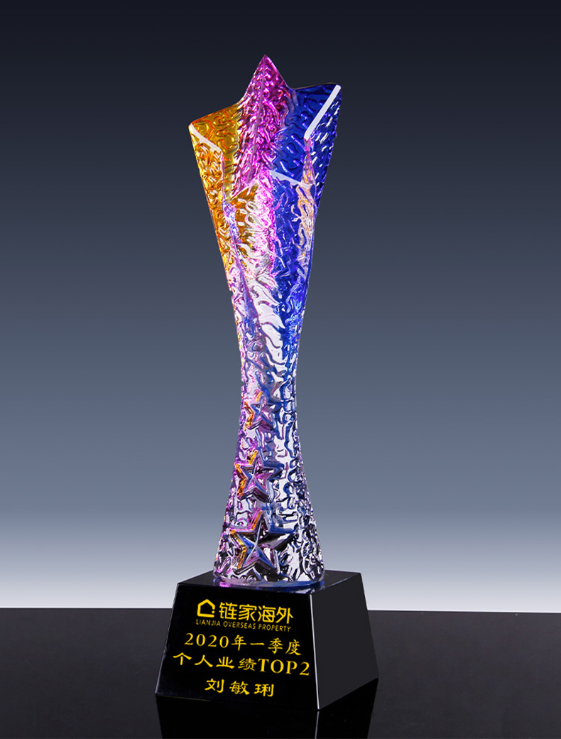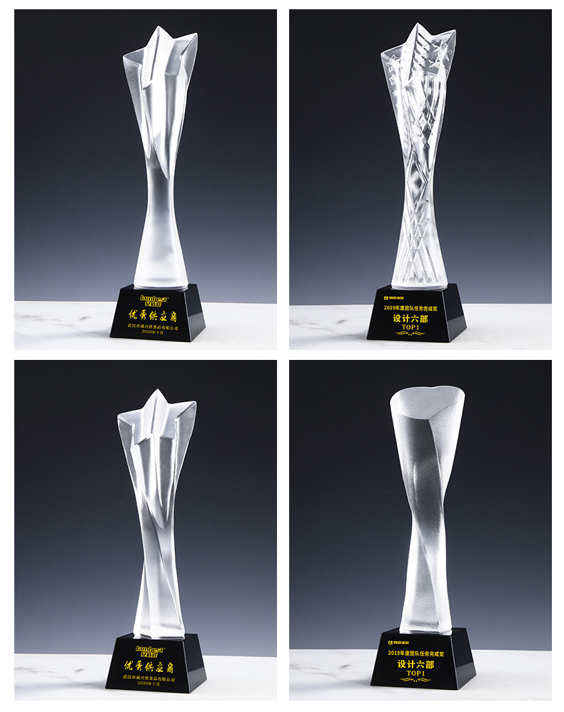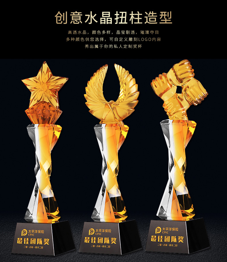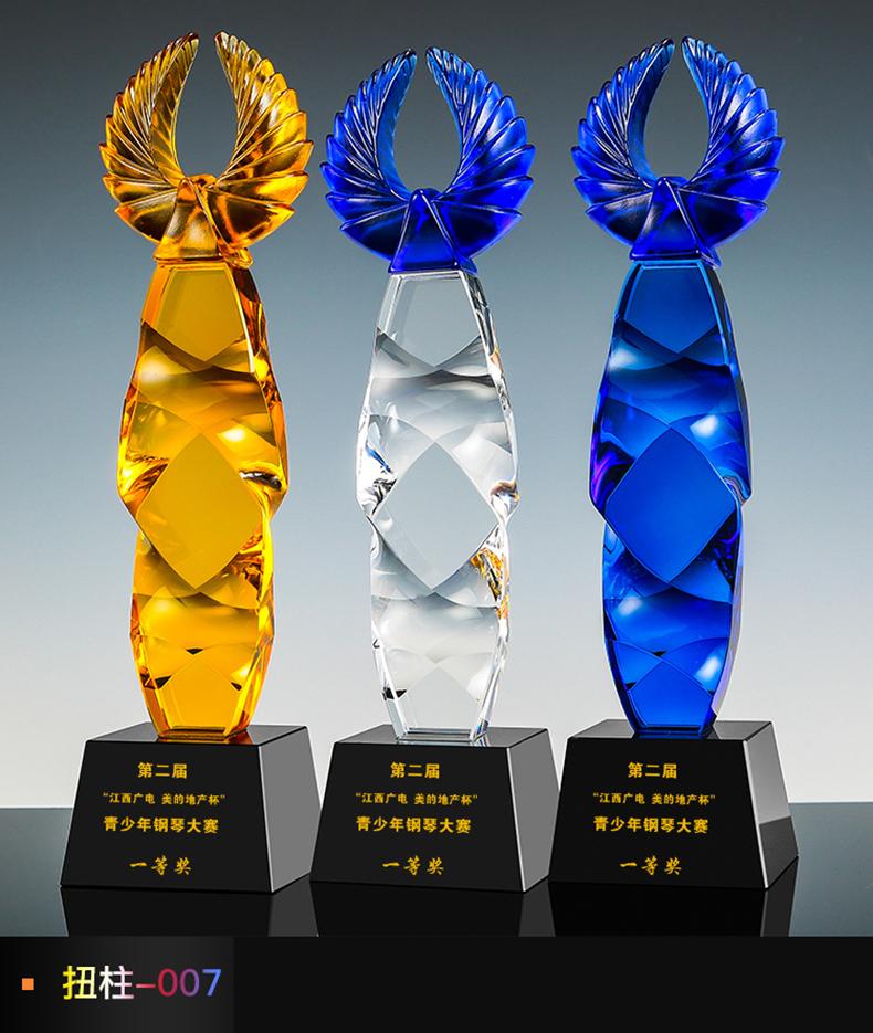 1002 / 蓝色红色扭柱高档五角星水晶奖杯定制企业优秀员工比赛创意奖牌定做