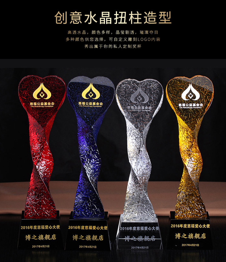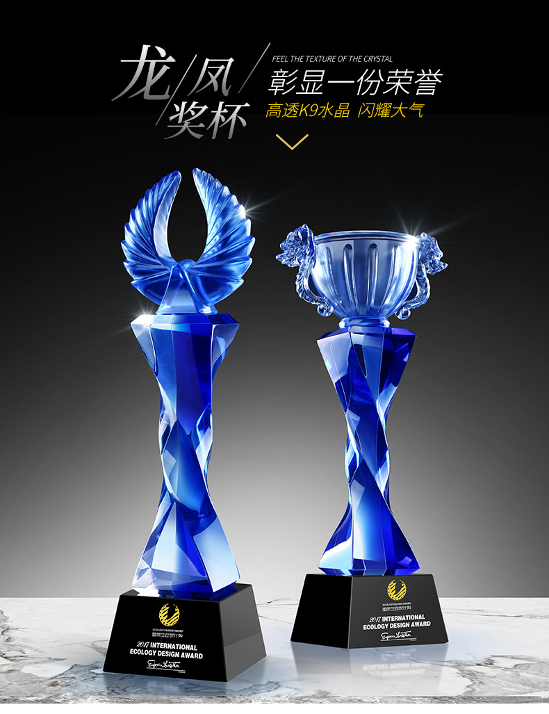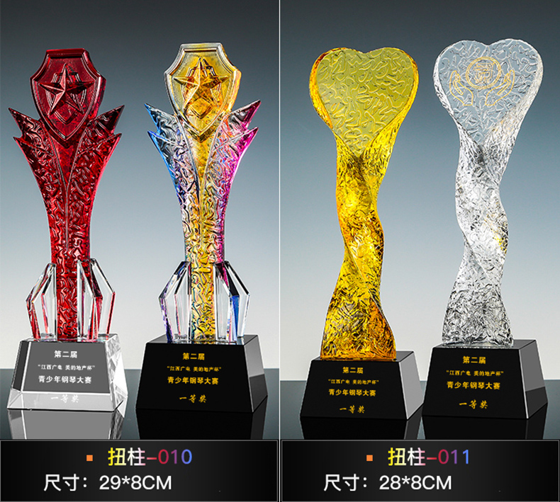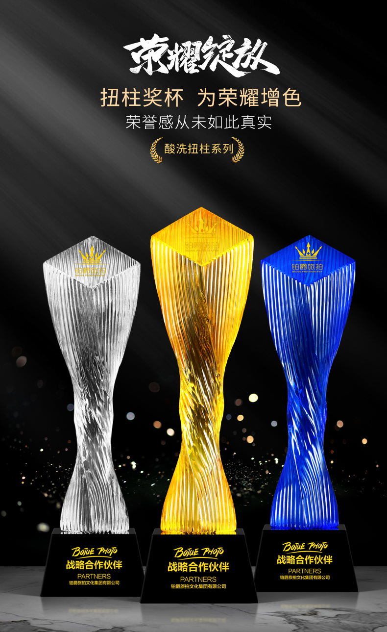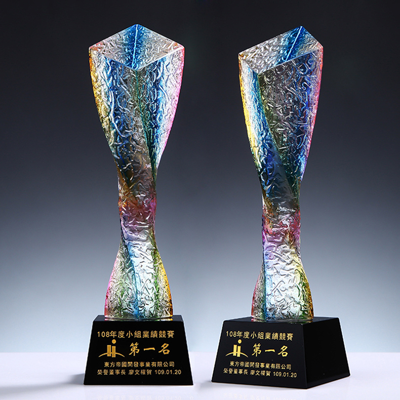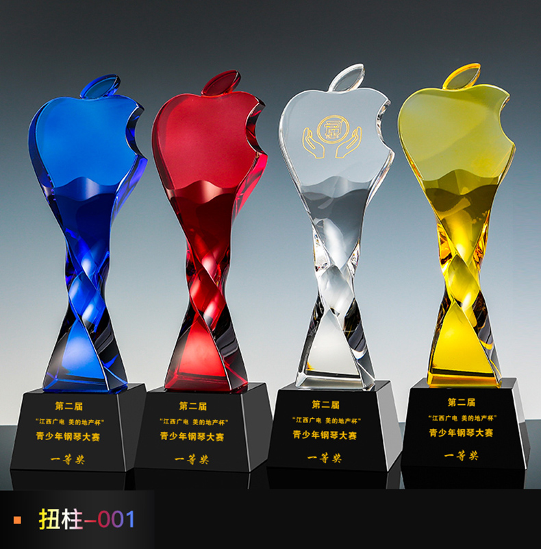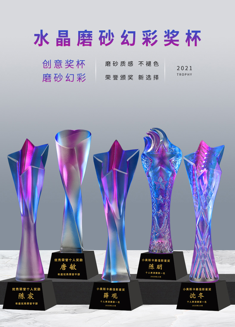 1002 / 蓝色红色扭柱高档五角星水晶奖杯定制企业优秀员工比赛创意奖牌定做