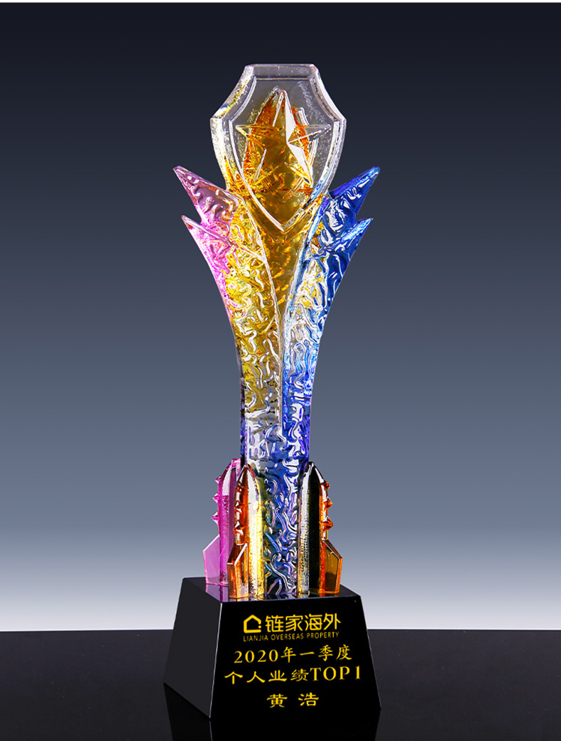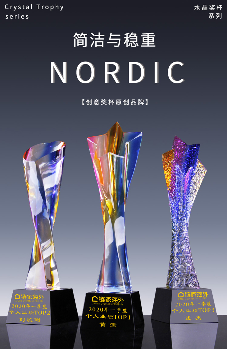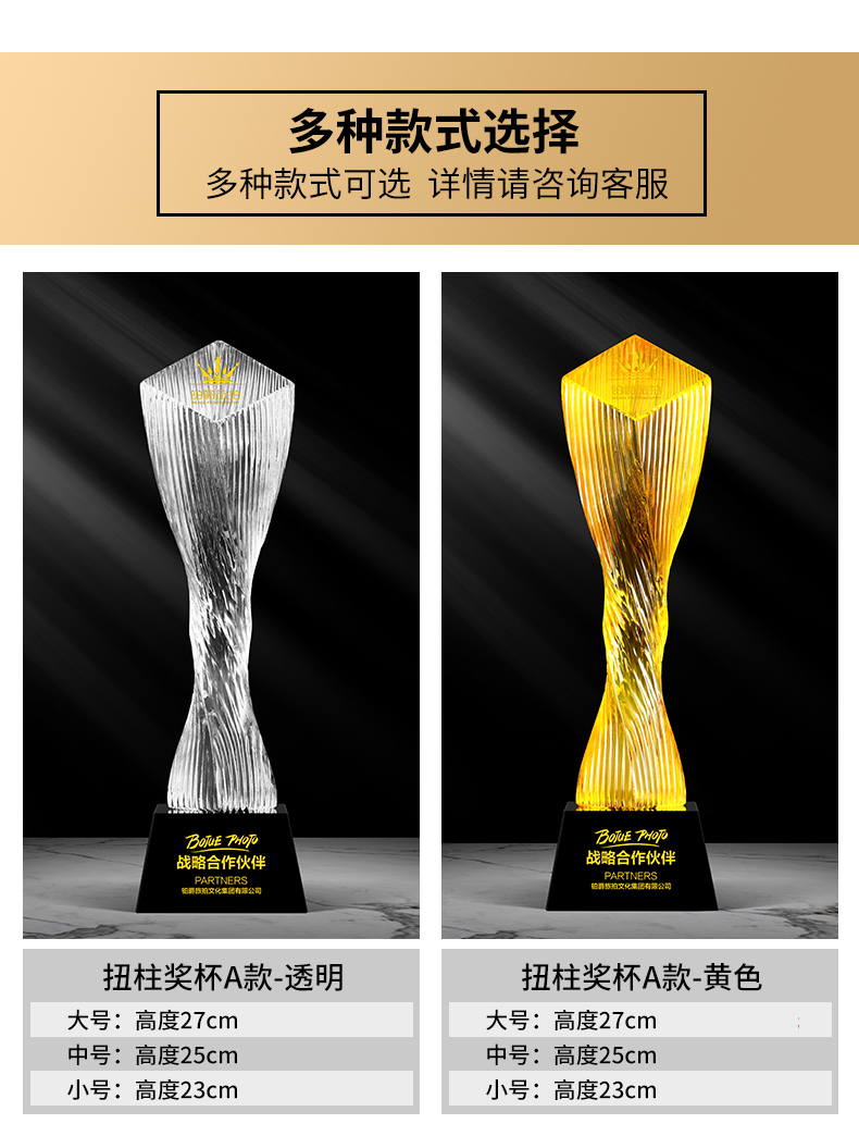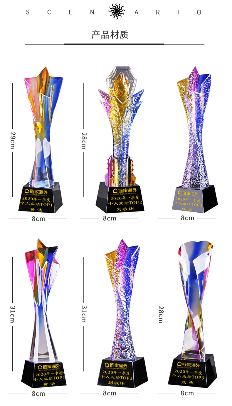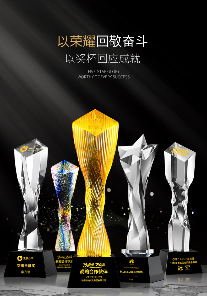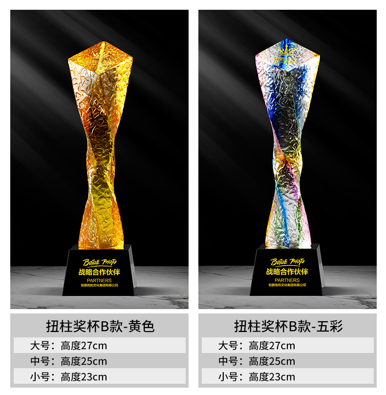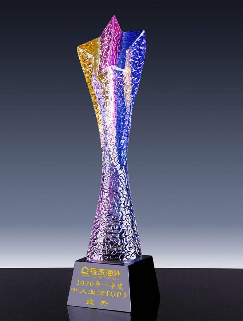 1002 / 蓝色红色扭柱高档五角星水晶奖杯定制企业优秀员工比赛创意奖牌定做