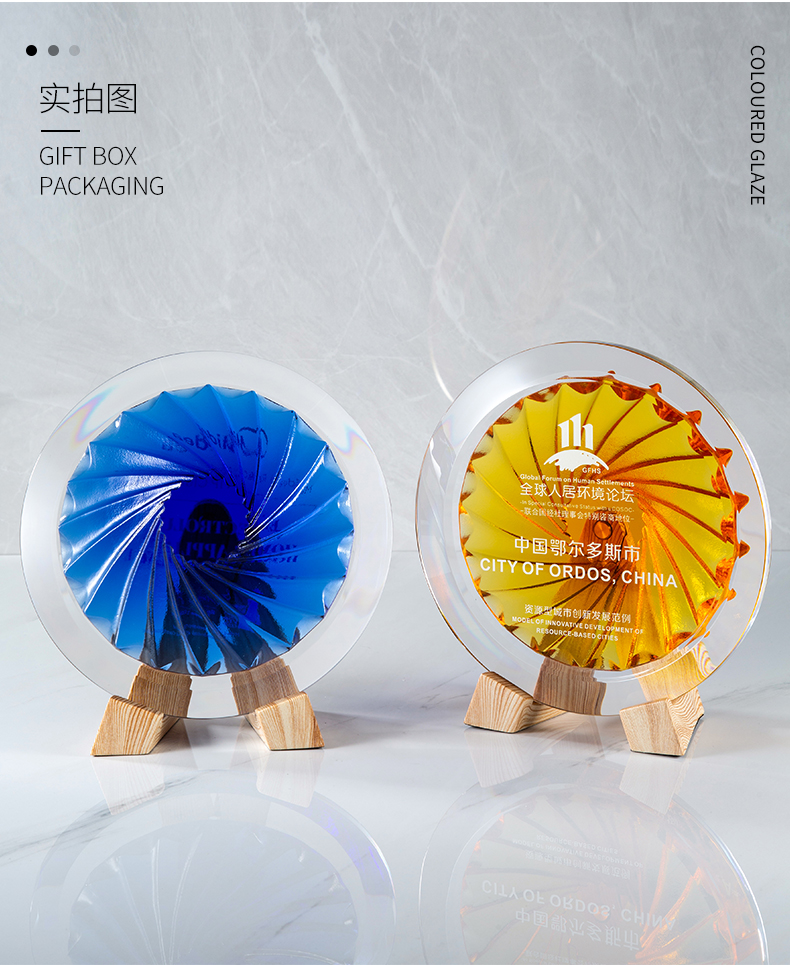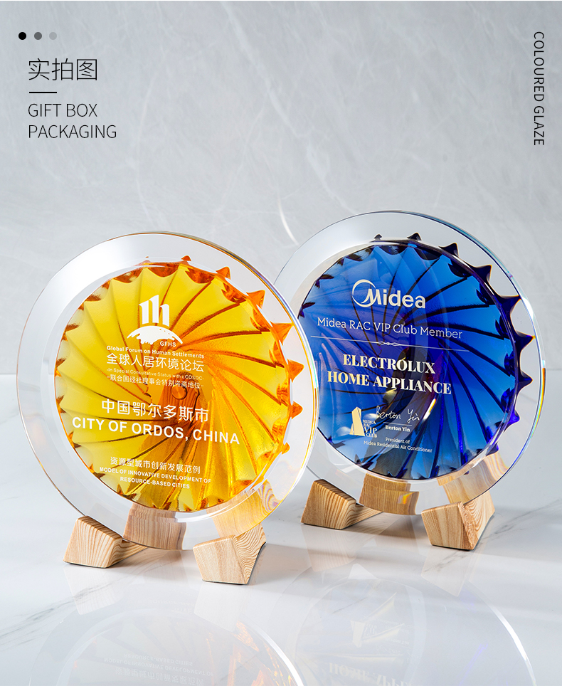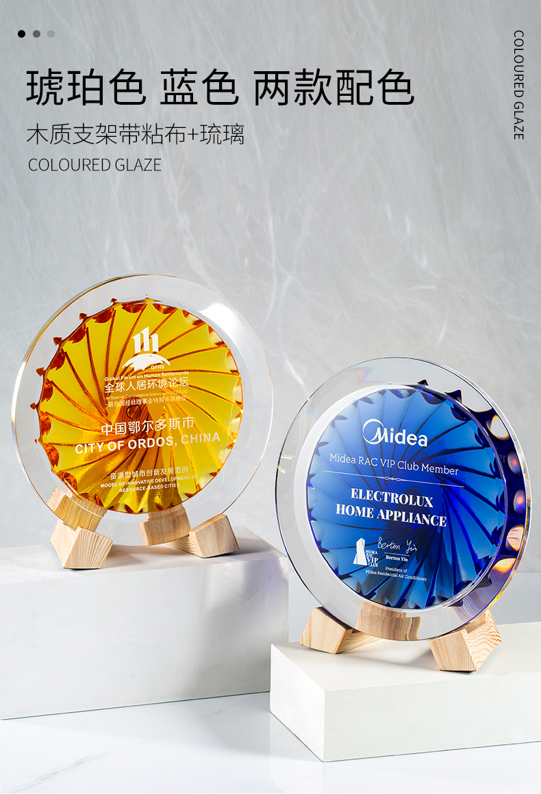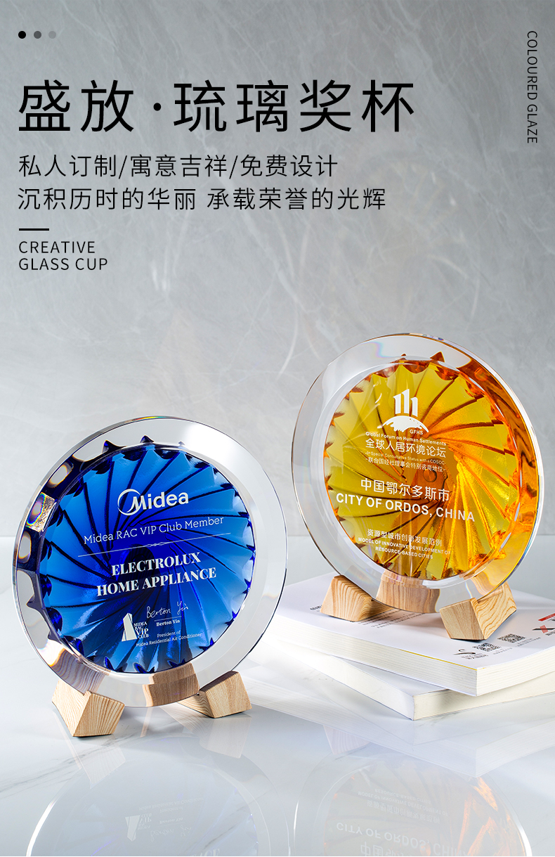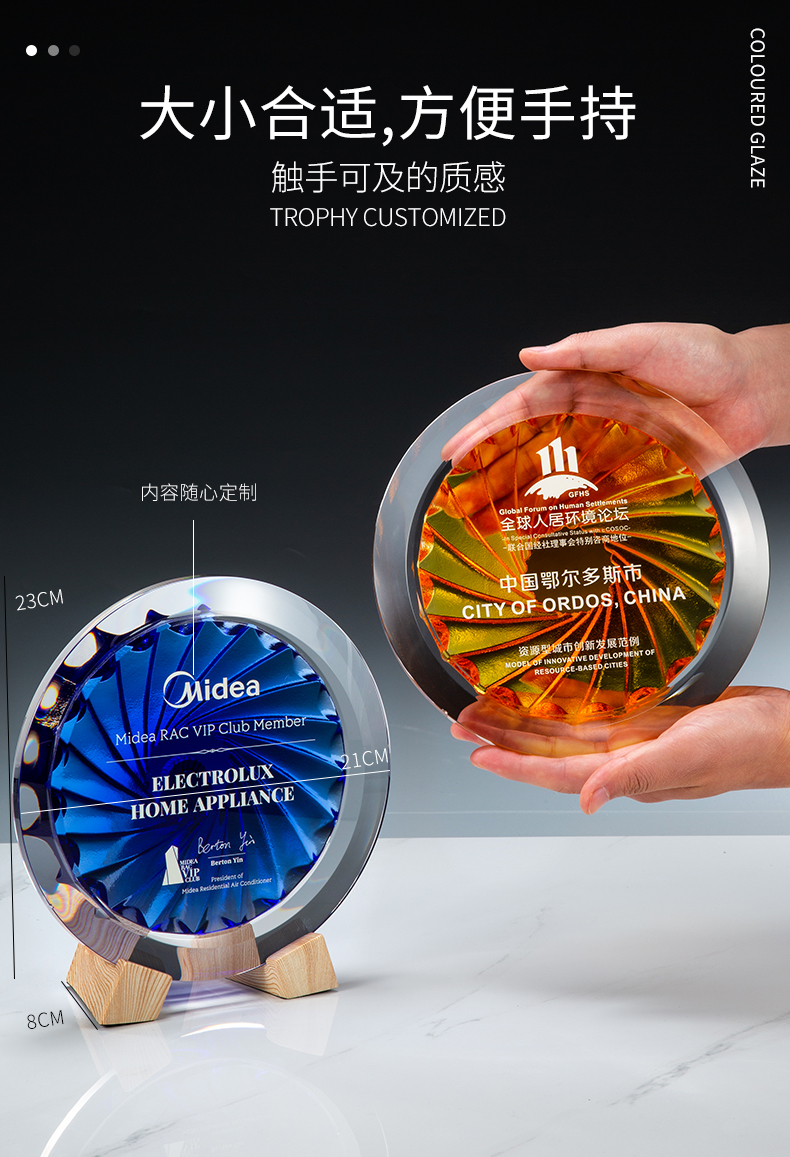1032 / 水晶琉璃奖杯奖盘定制高档奖盘奖牌定制定做周年纪念品年会奖品
