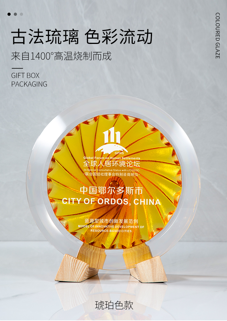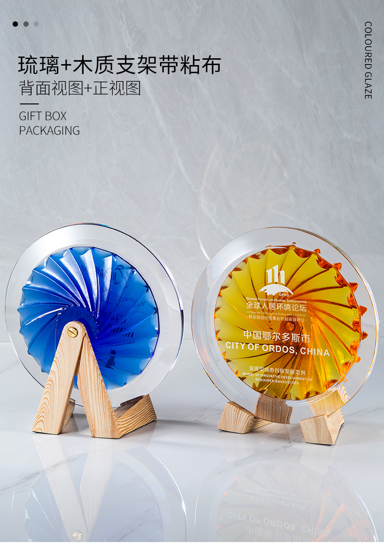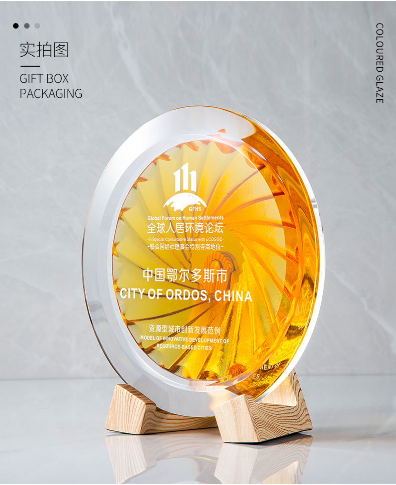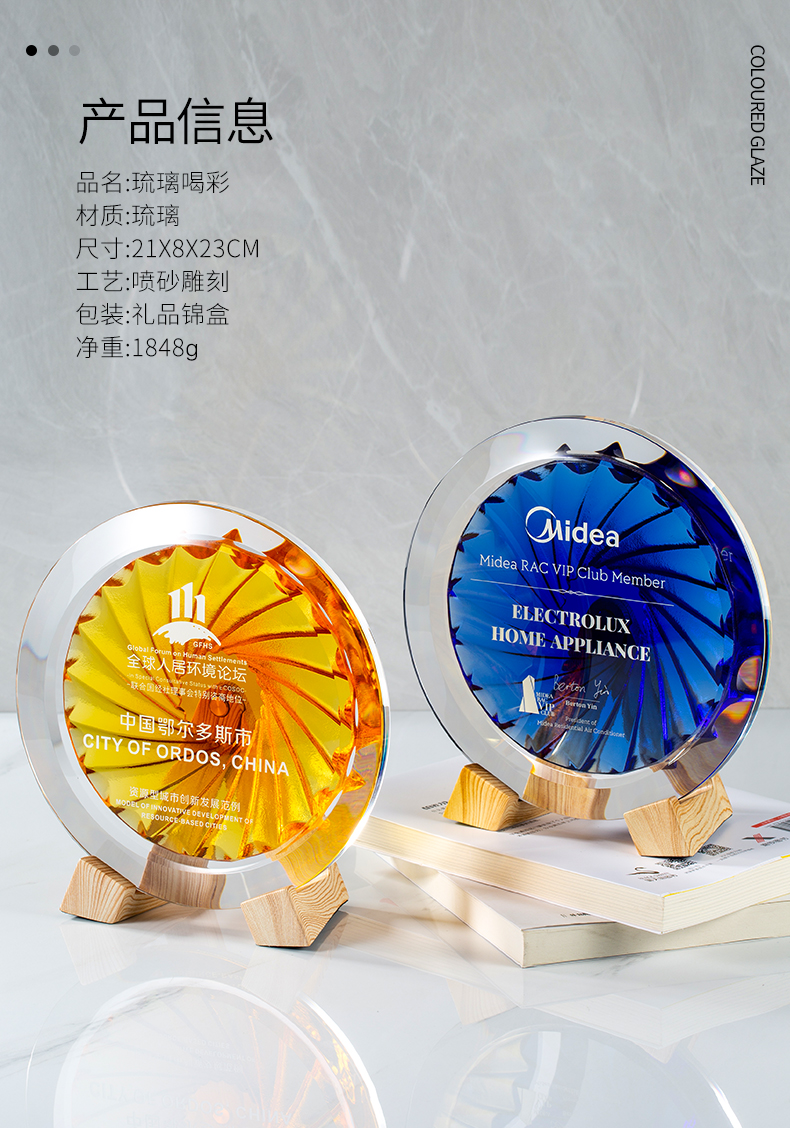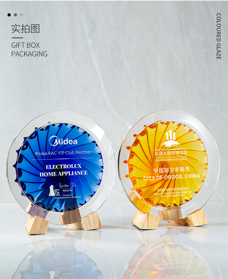 1032 / 水晶琉璃奖杯奖盘定制高档奖盘奖牌定制定做周年纪念品年会奖品