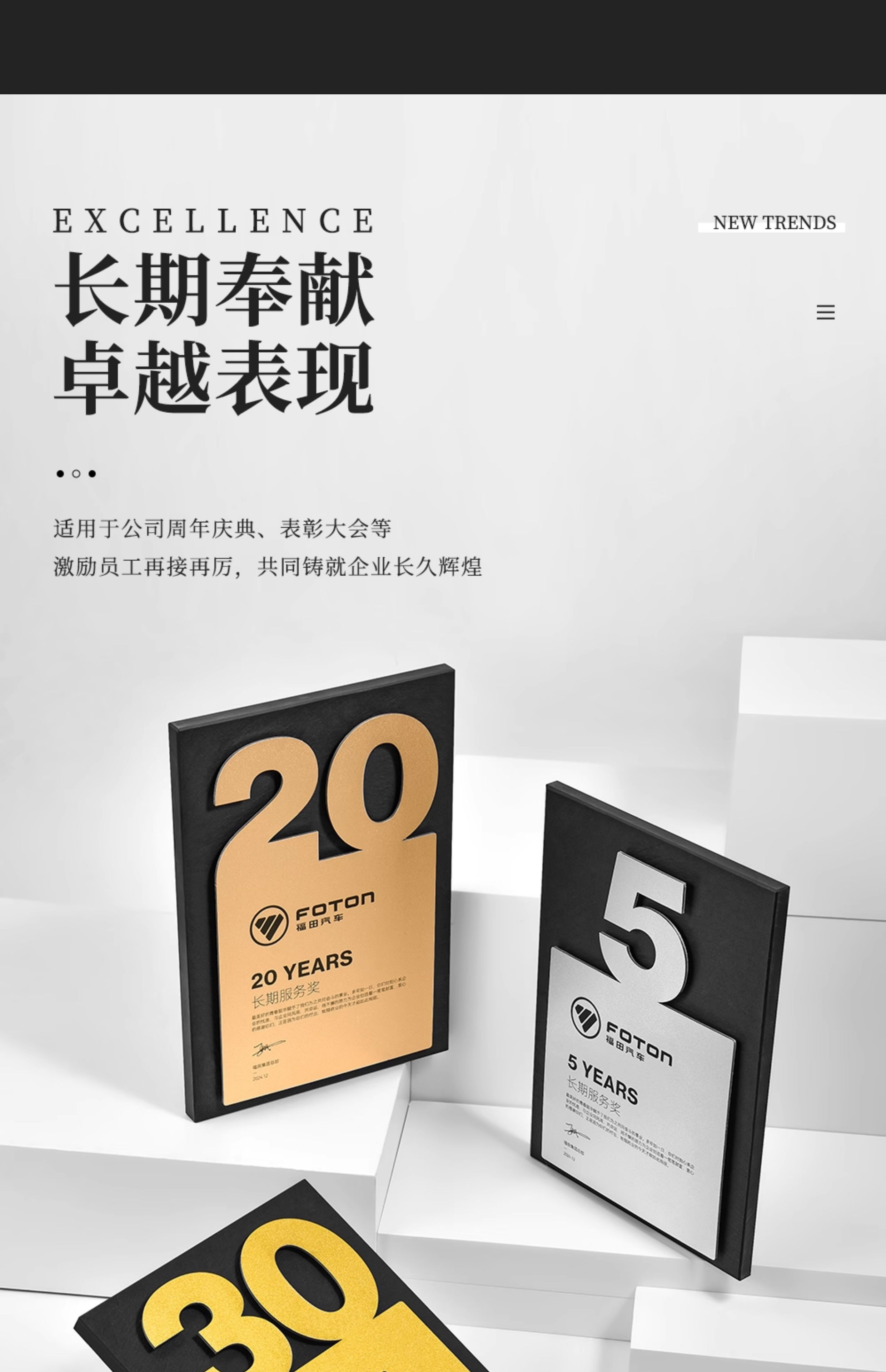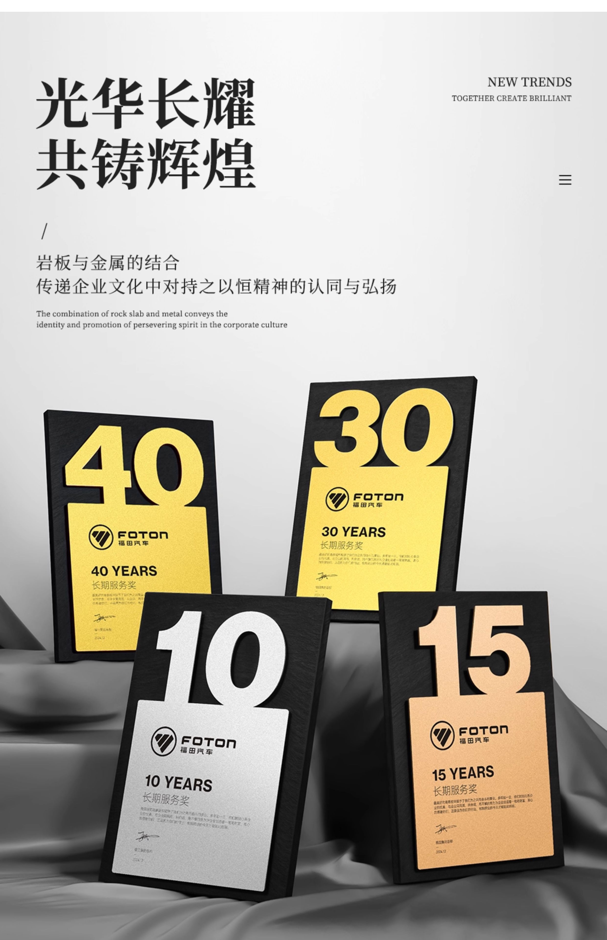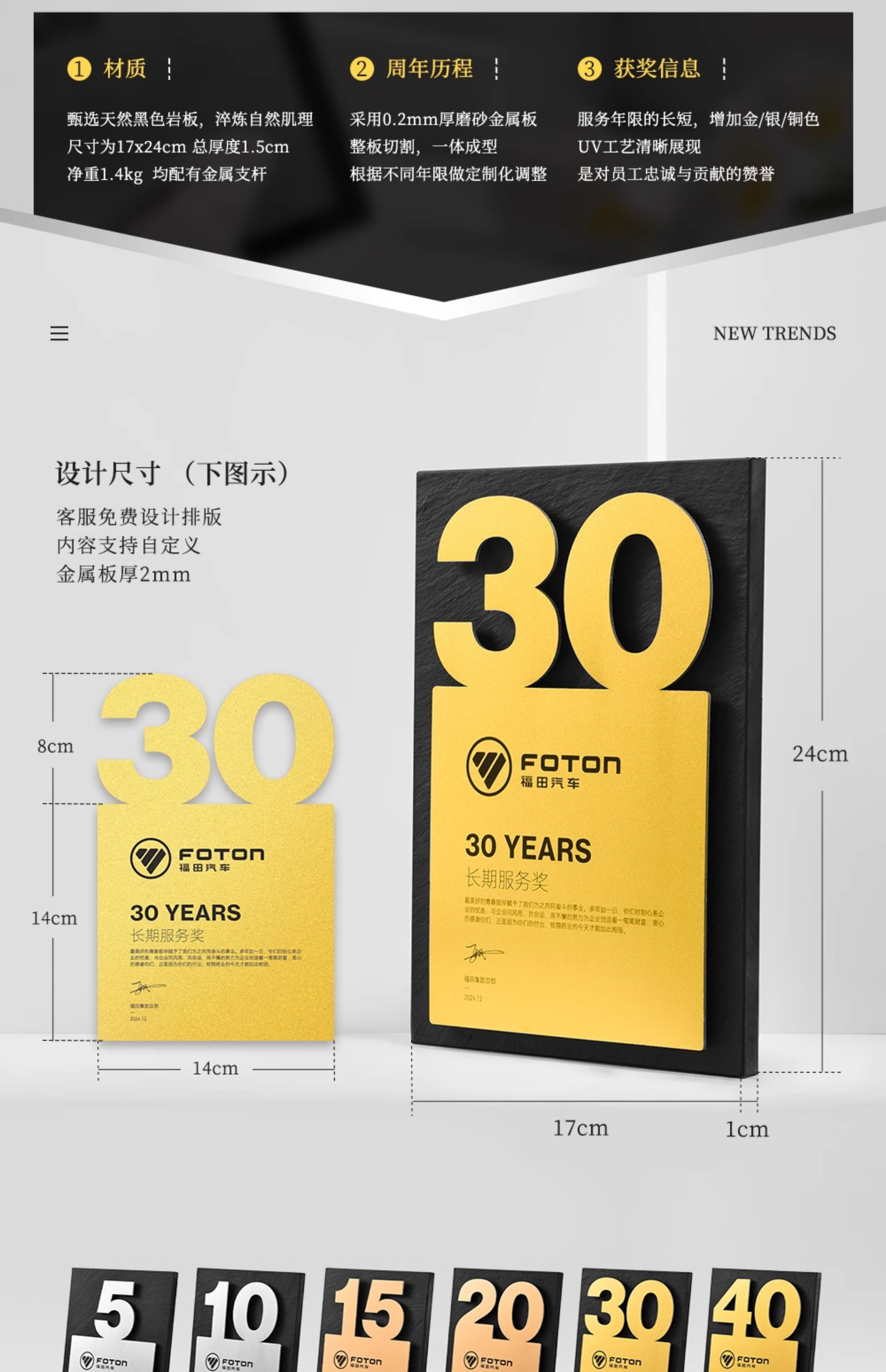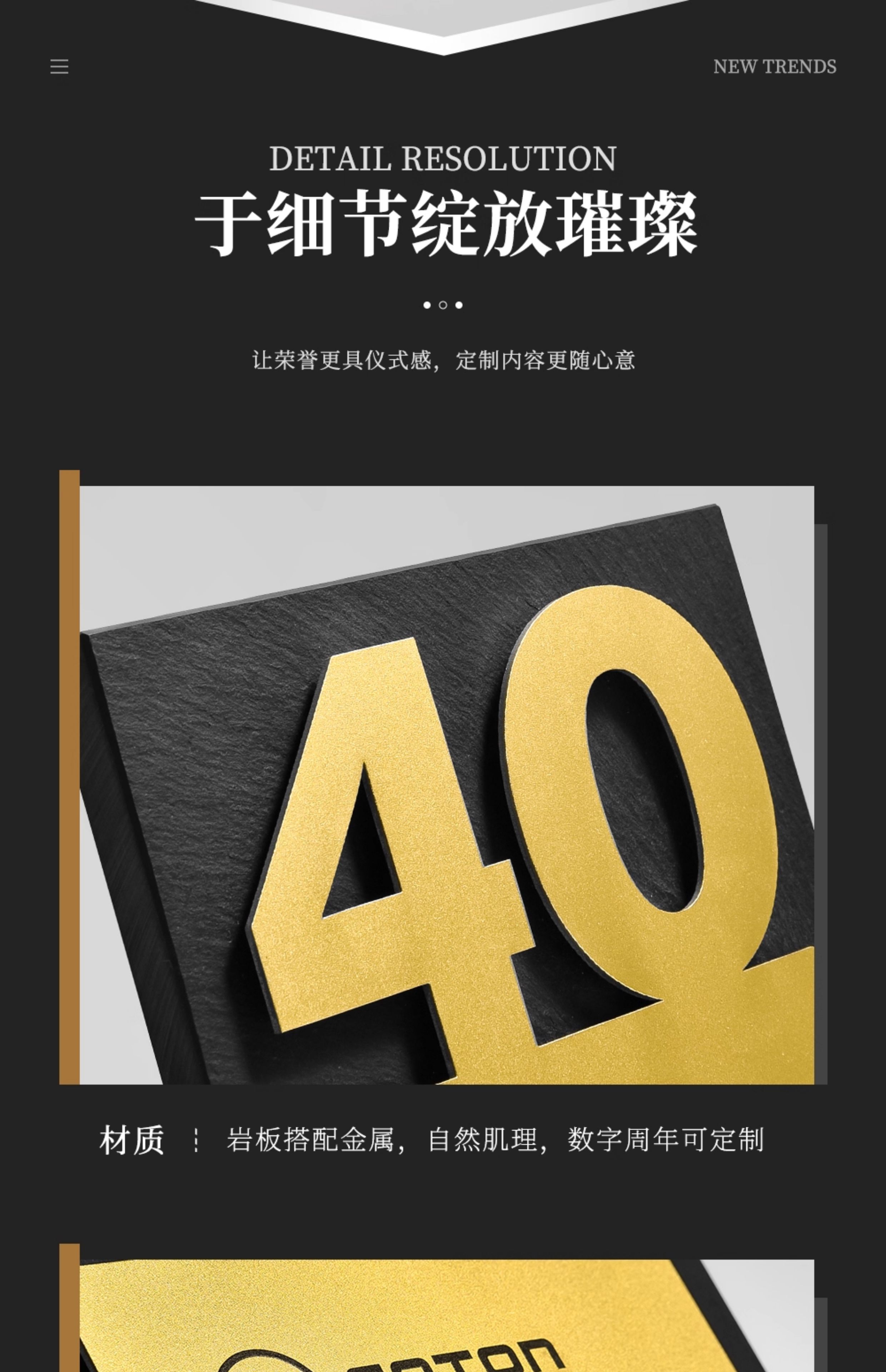 586 / 10年岩板周年数字奖牌定制周年金属纪念奖杯金银铜5 15 20 30 40