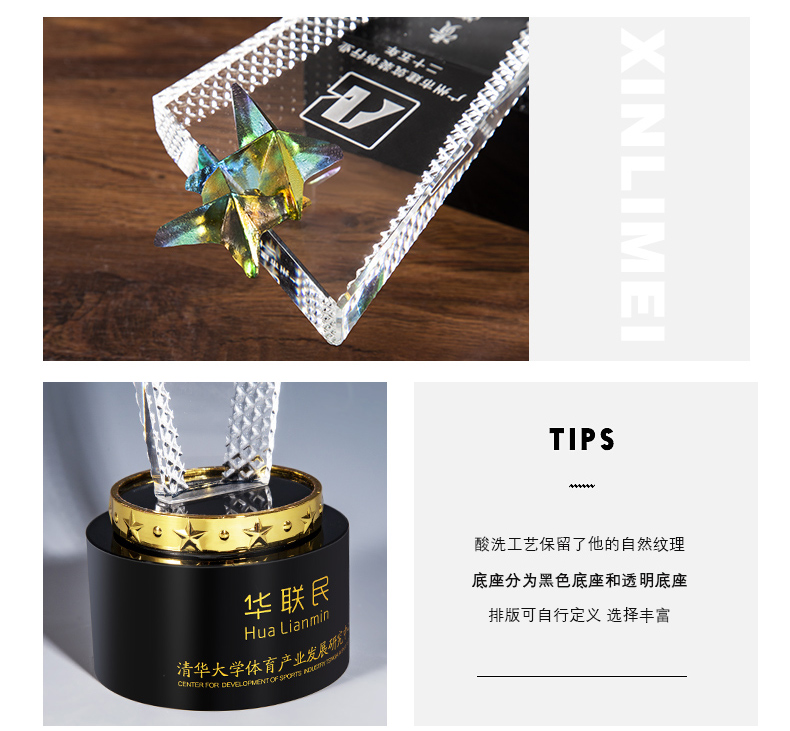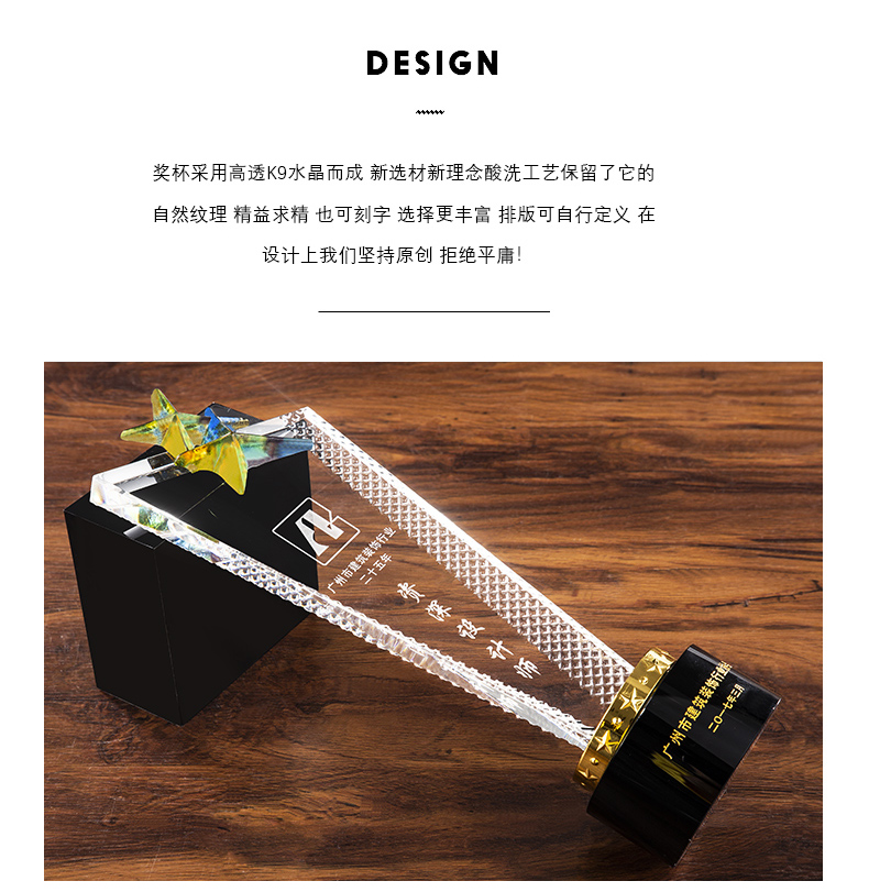 1019 / 高档创意琉璃五角星水晶奖杯奖座领导晋升优秀员工合作授权牌刻字