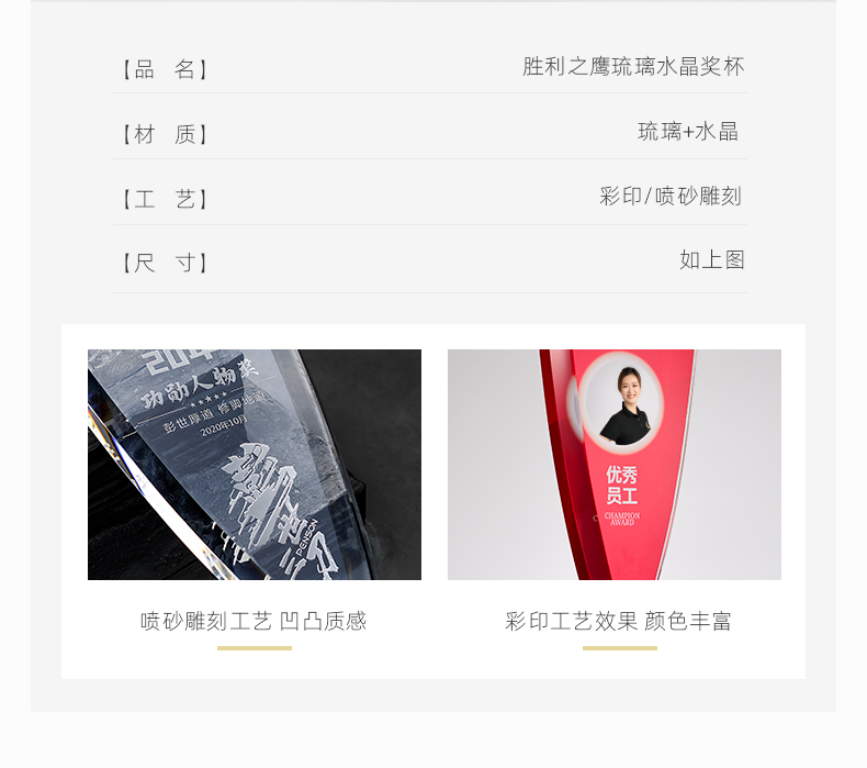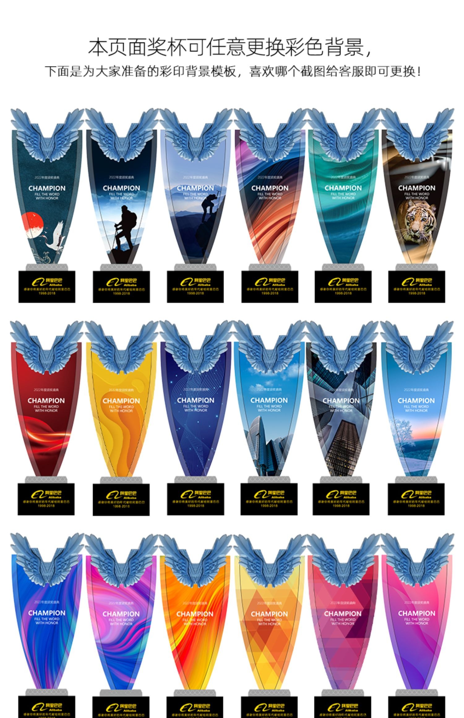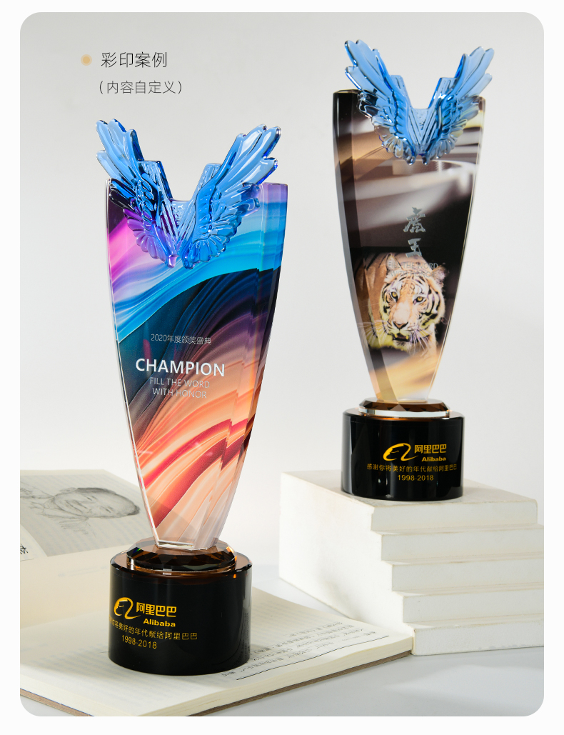 1022 / 新款翅膀高档大气水晶奖杯奖牌创意定做定制优秀员工周年庆纪念品