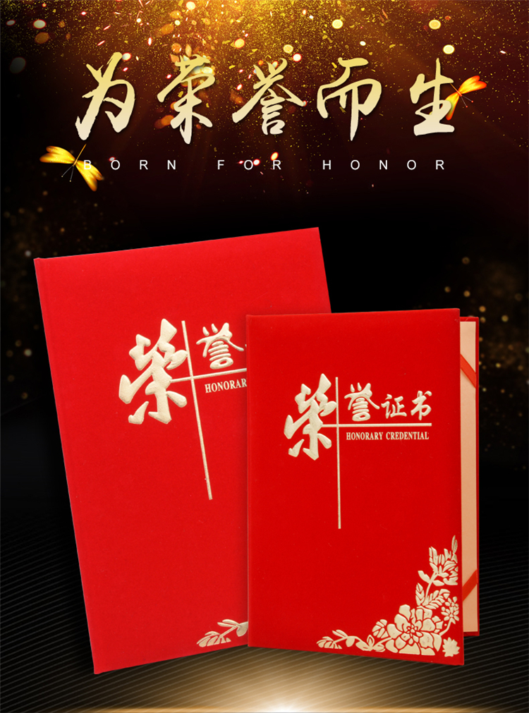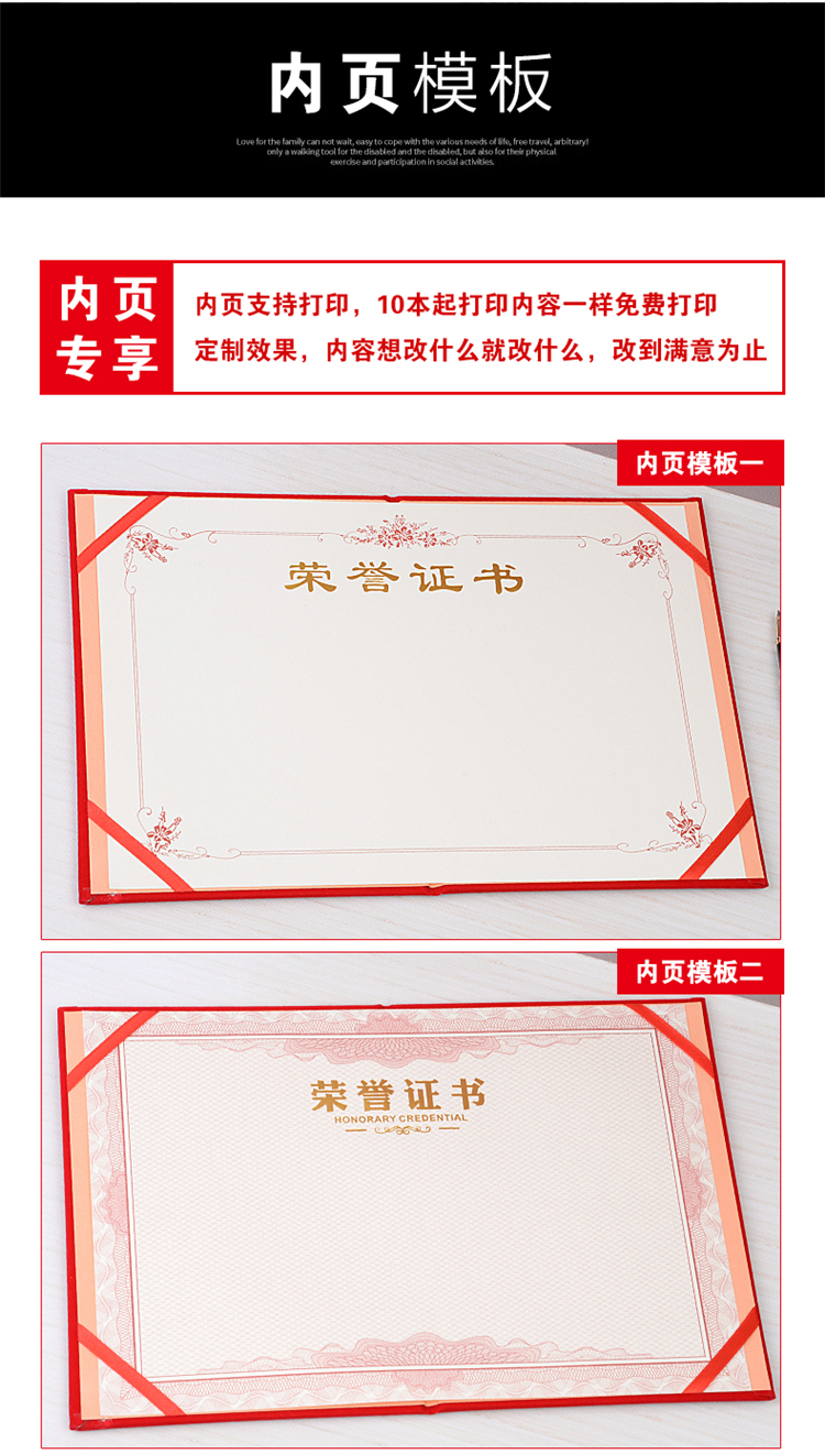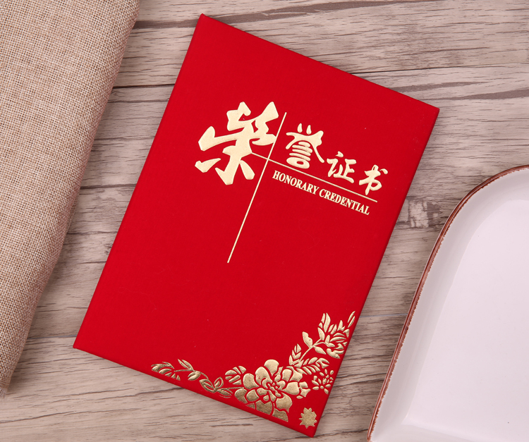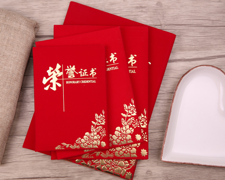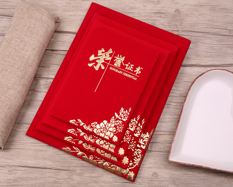 1055 / 高档绒面荣誉证书外壳封皮定做制作内页芯奖状结业a4获得奖定制