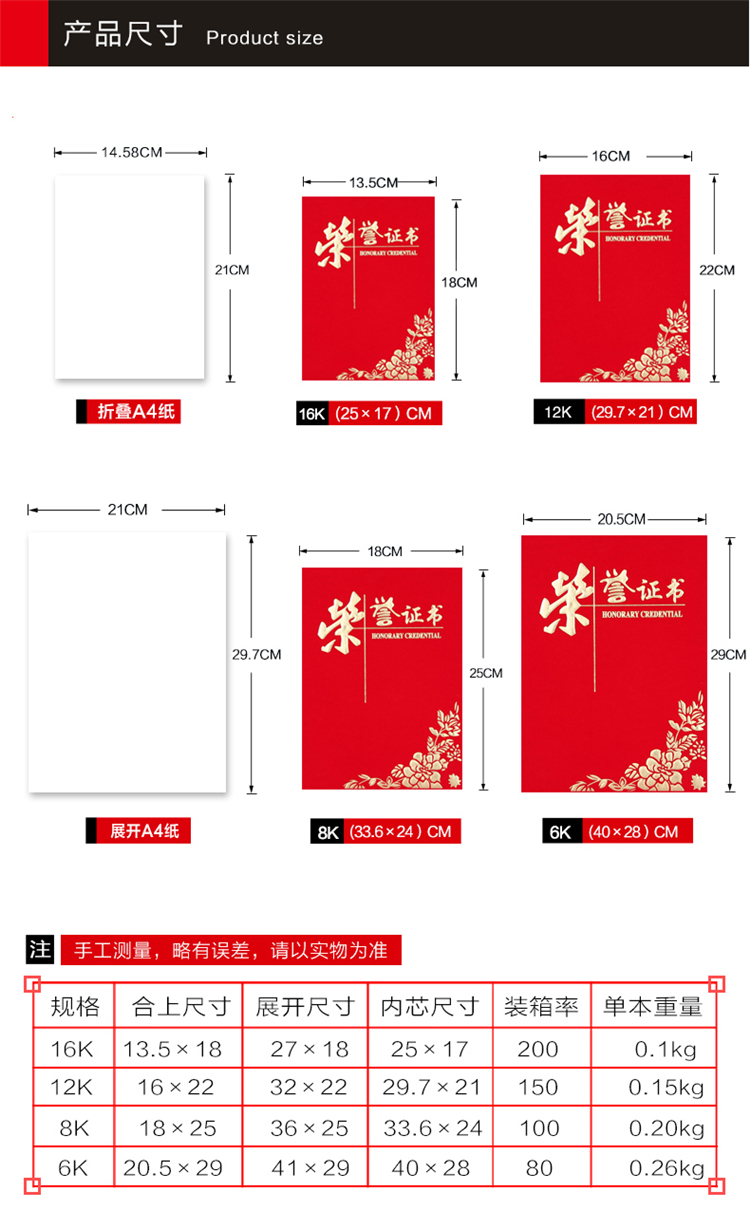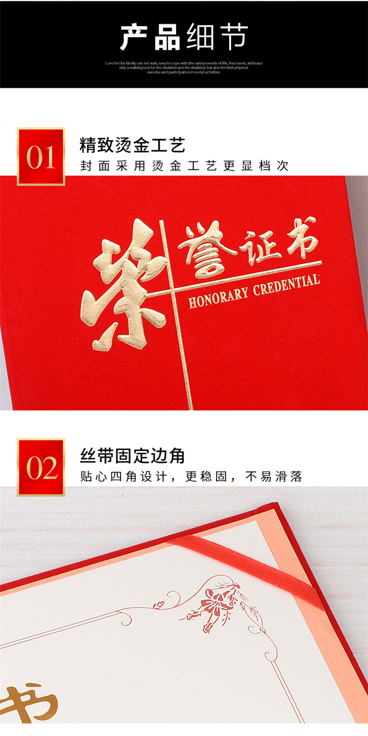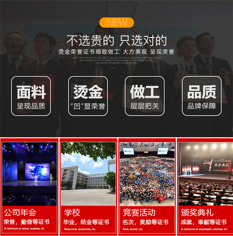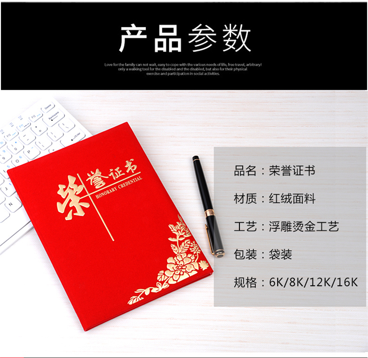 1055 / 高档绒面荣誉证书外壳封皮定做制作内页芯奖状结业a4获得奖定制