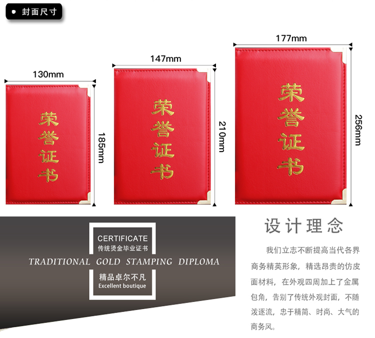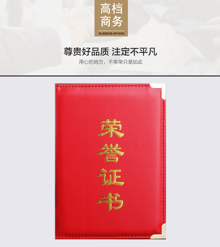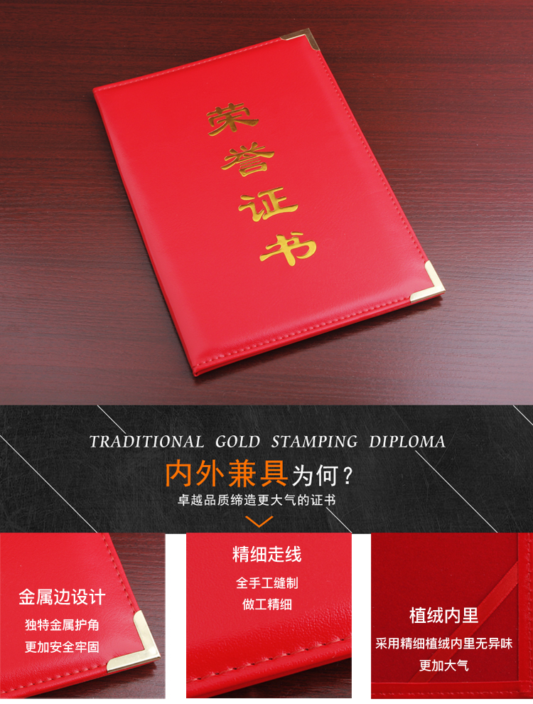 1056 / 高档皮革荣誉证书外壳框定做可打印带内芯内页纸奖状获奖制作封皮