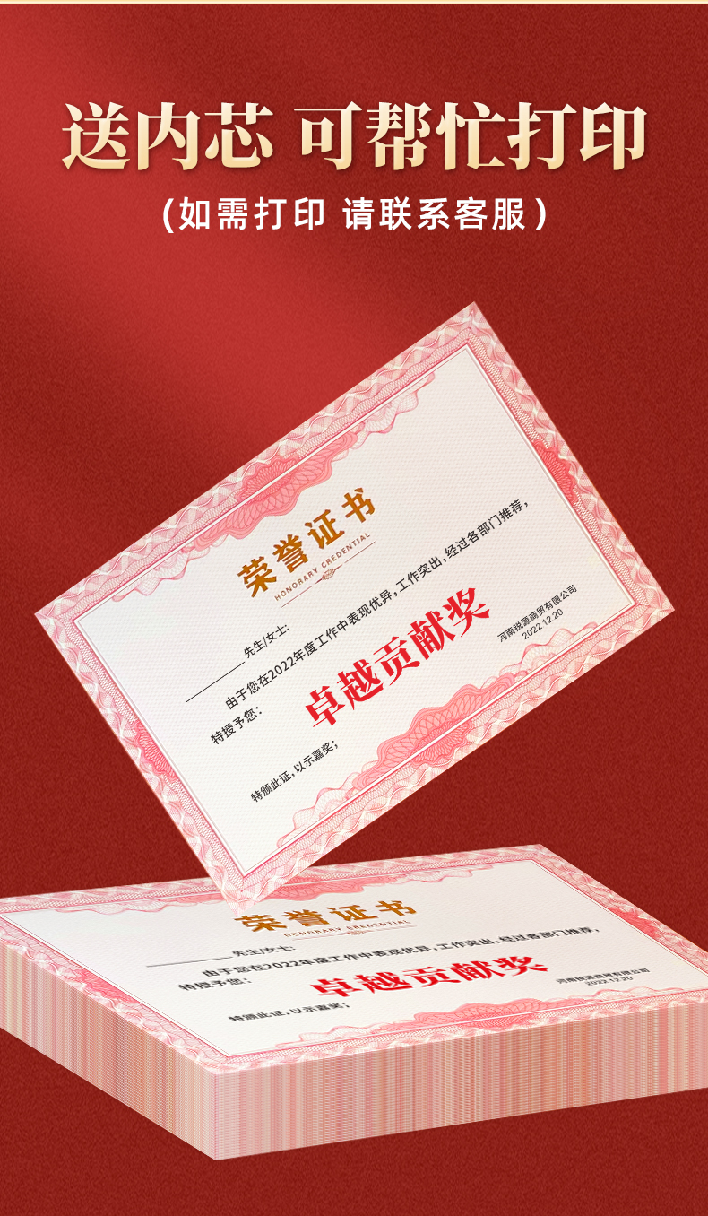 1063 / 荣誉证书证件书封面外壳封皮定制内页内芯打印企业优秀员工志愿者表彰奖励获奖捐赠a4奖状保护套烫金