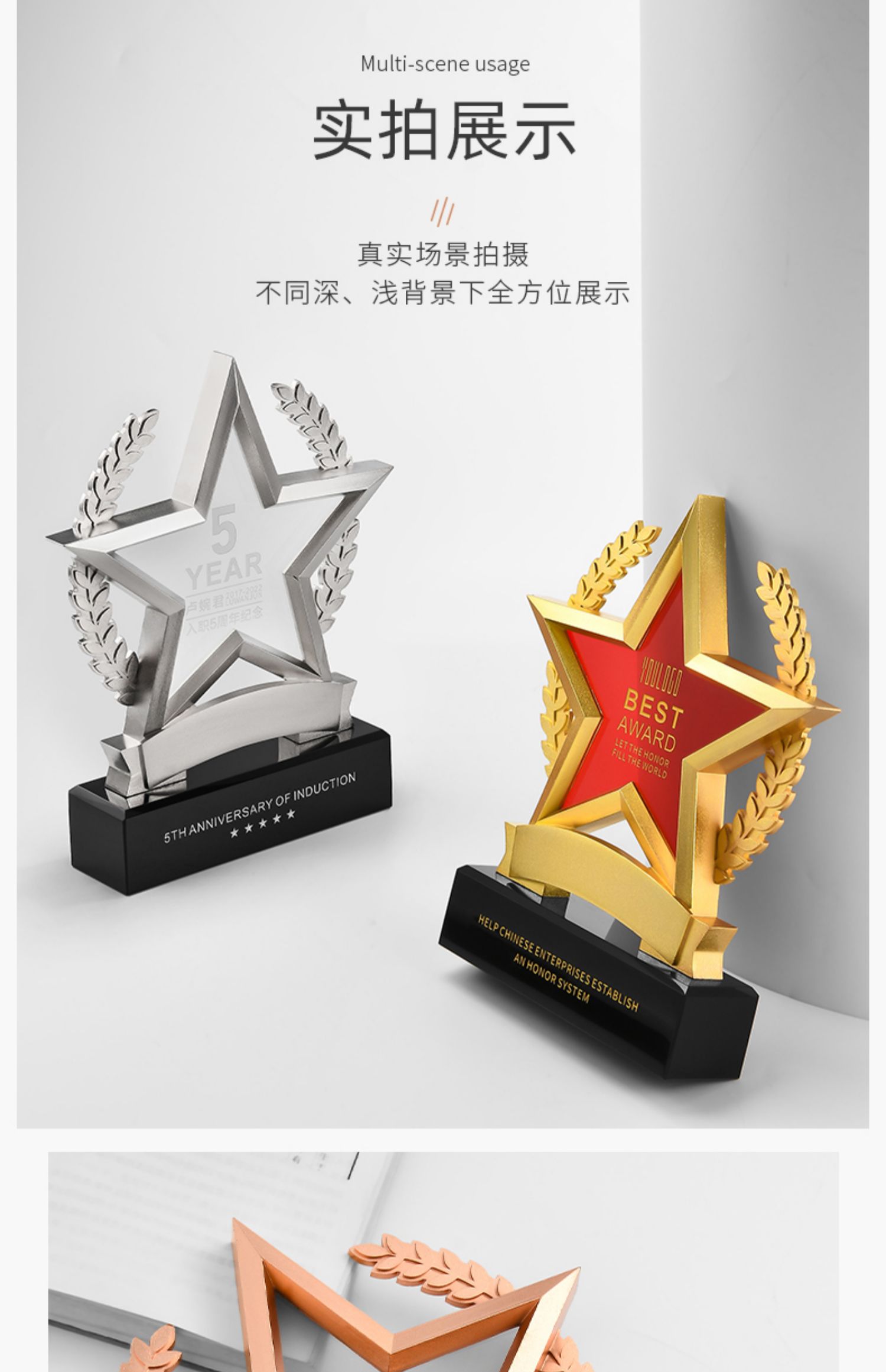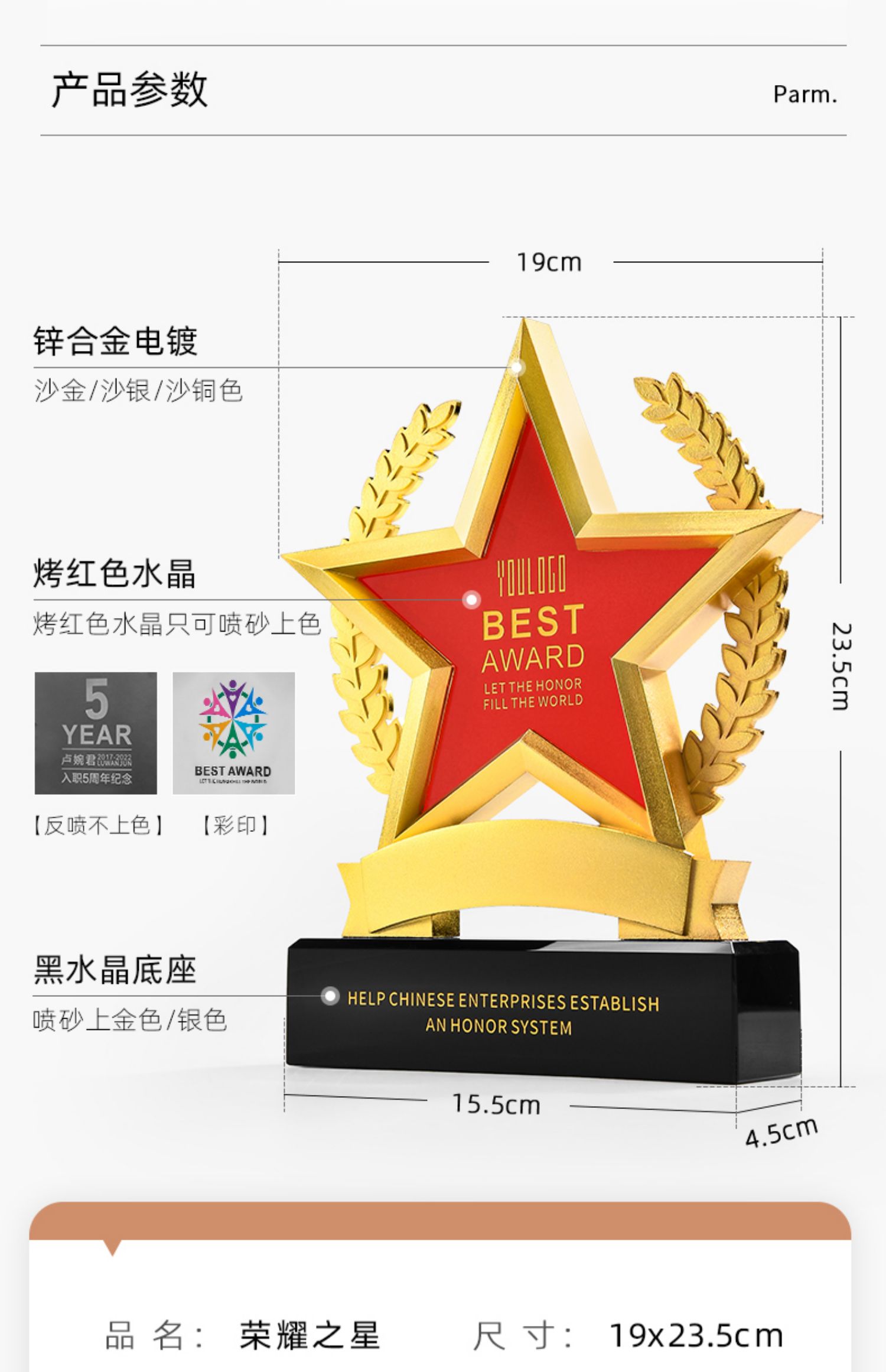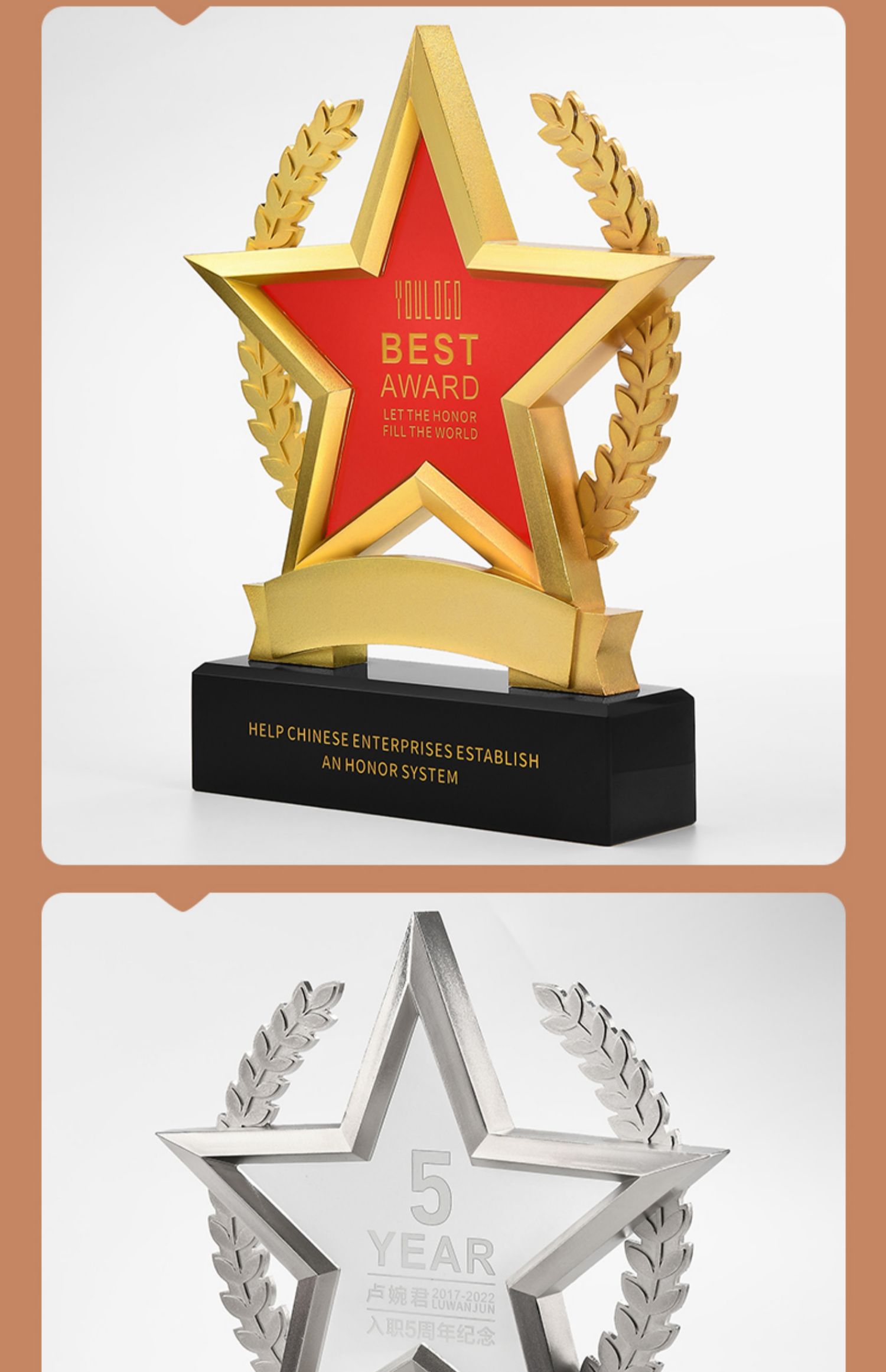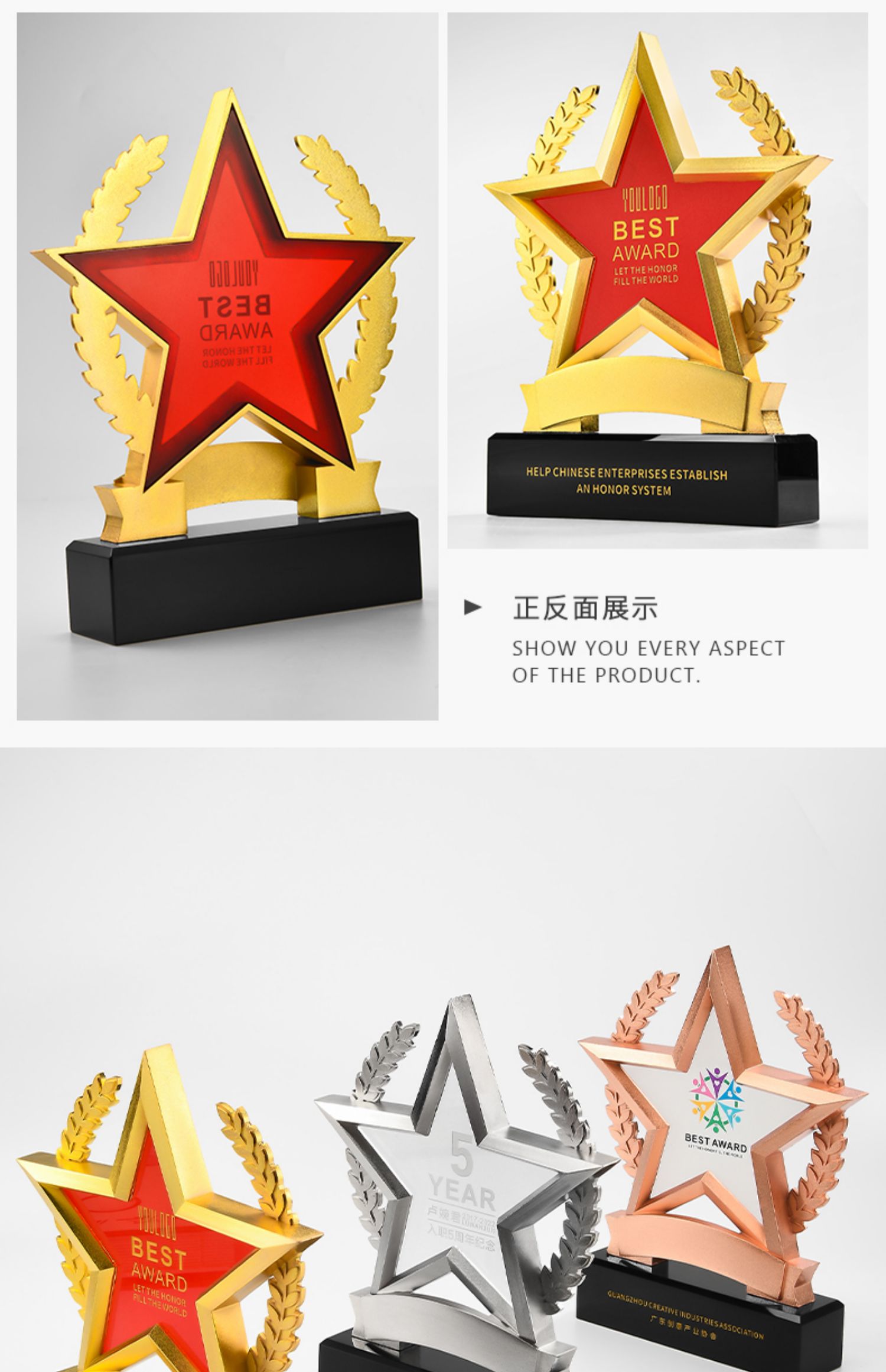 1098 / 红色五角星金属水晶奖杯定制金银铜订制创意志愿者纪念品优秀员工