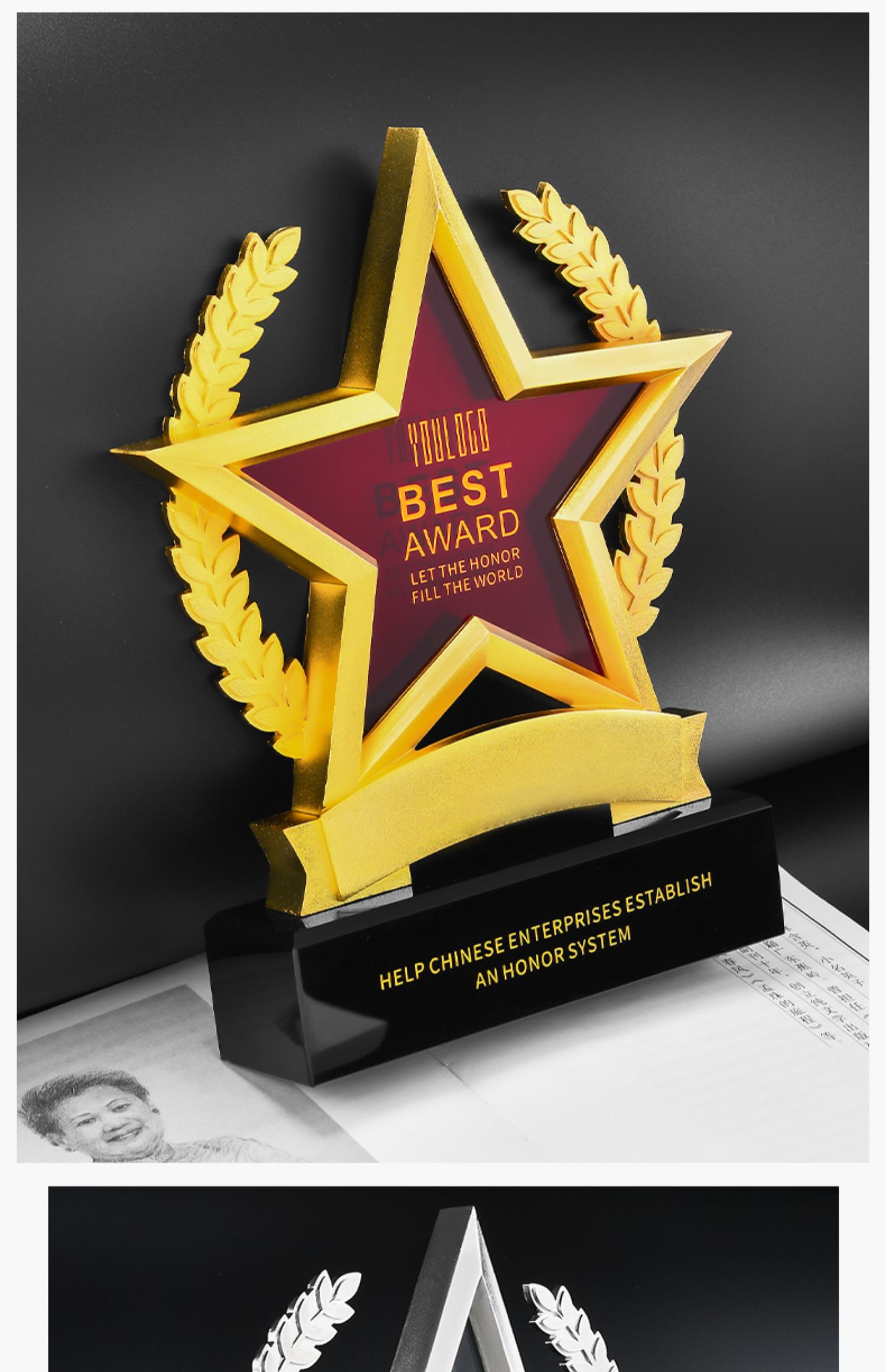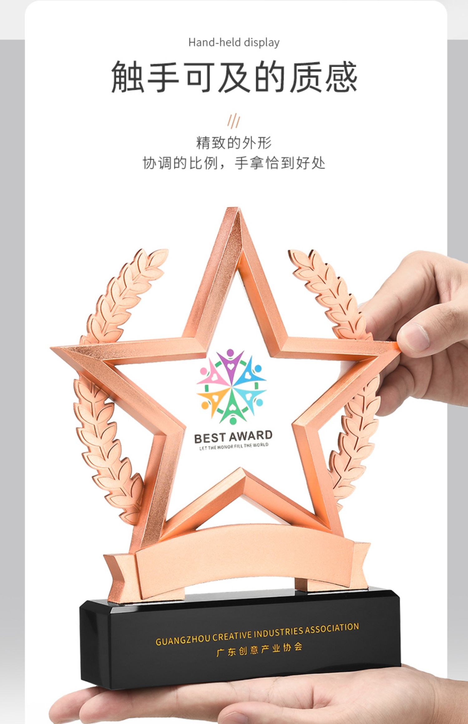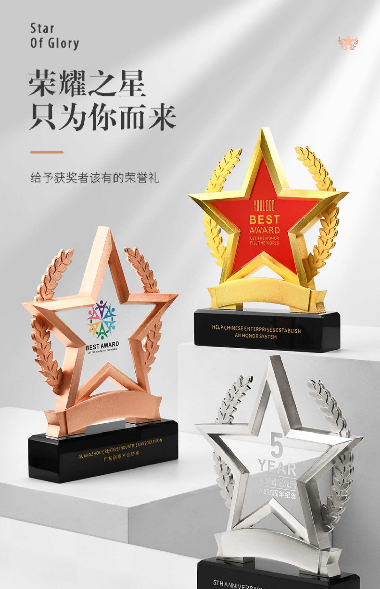 1098 / 红色五角星金属水晶奖杯定制金银铜订制创意志愿者纪念品优秀员工