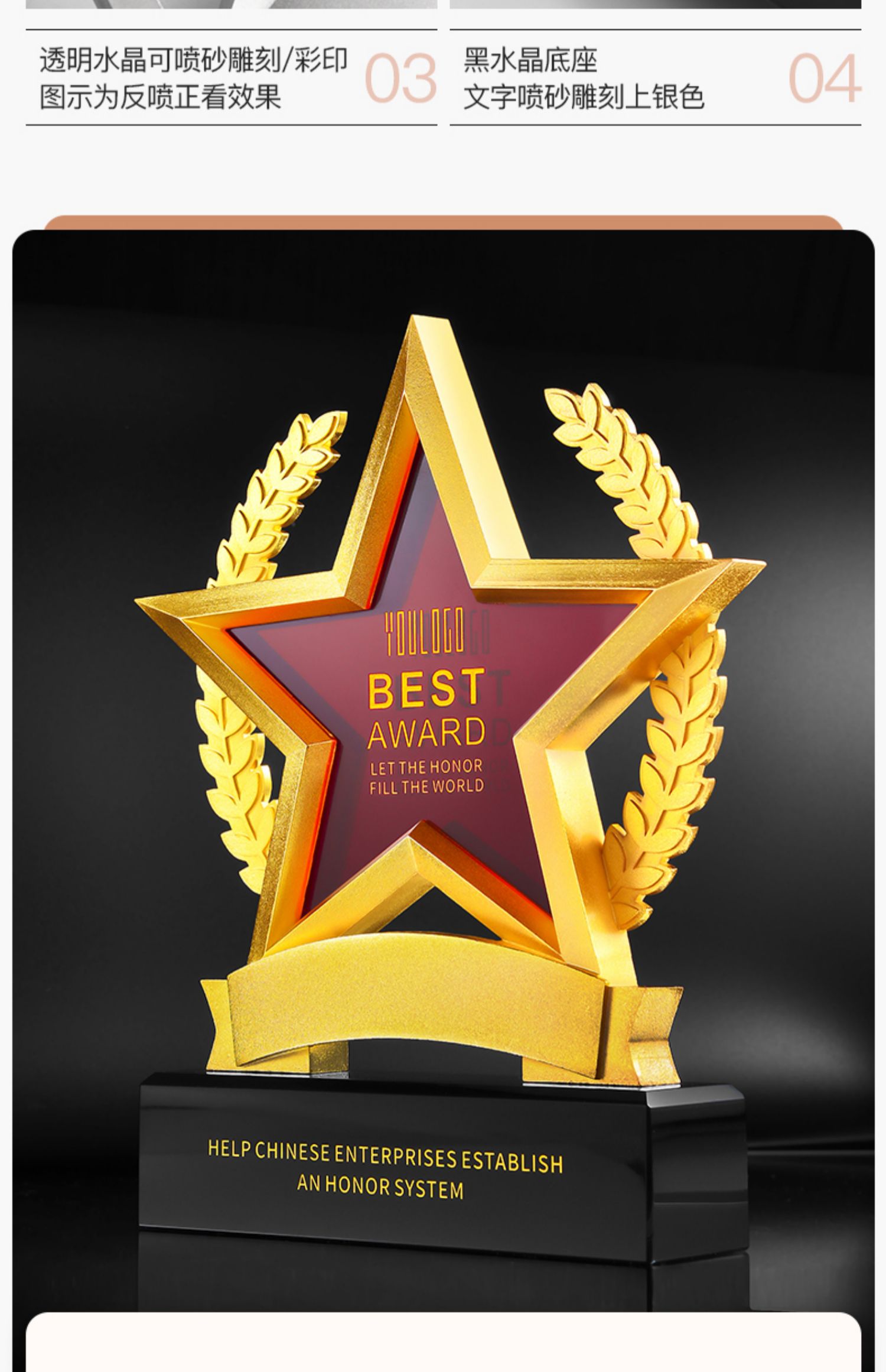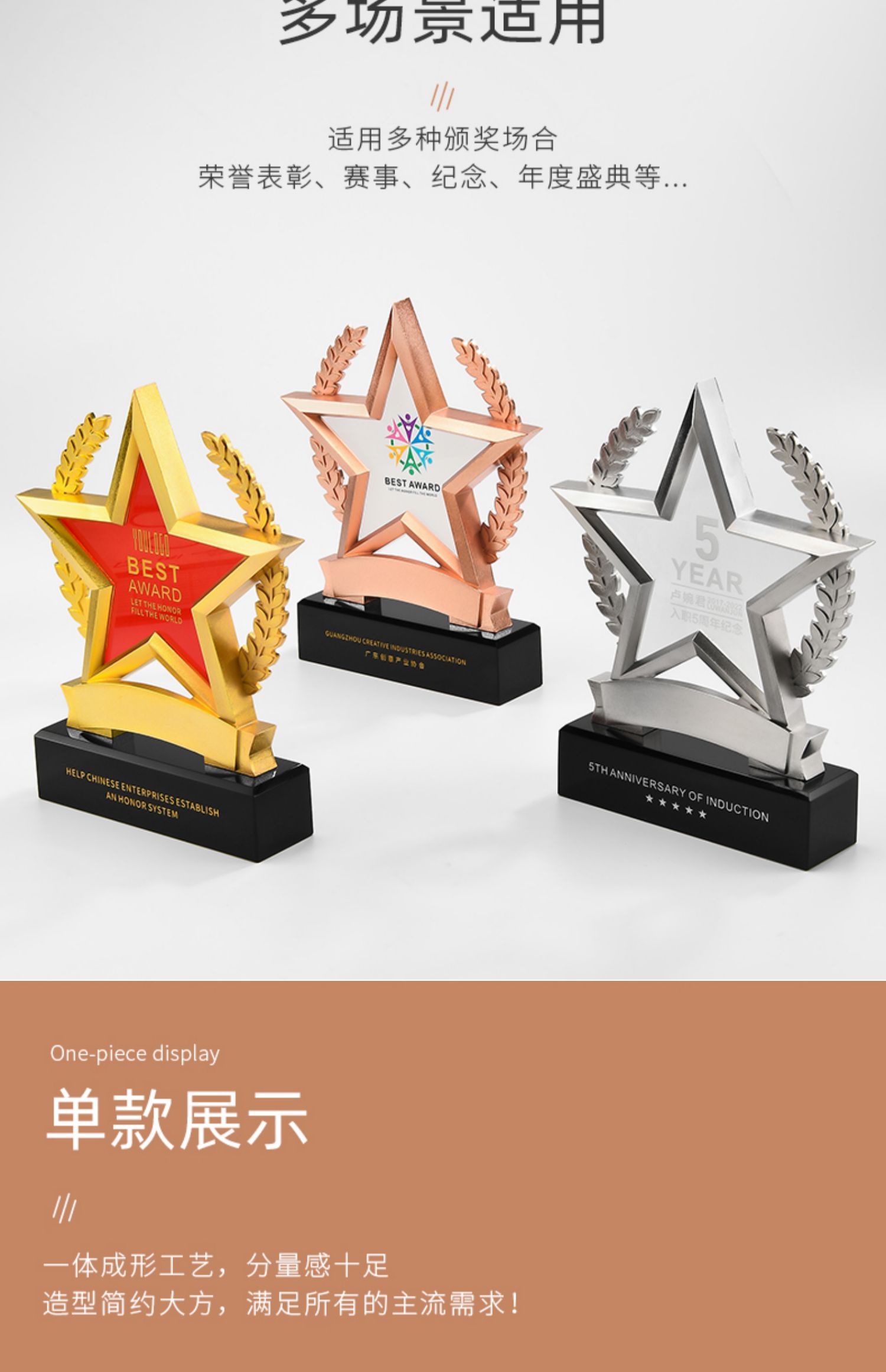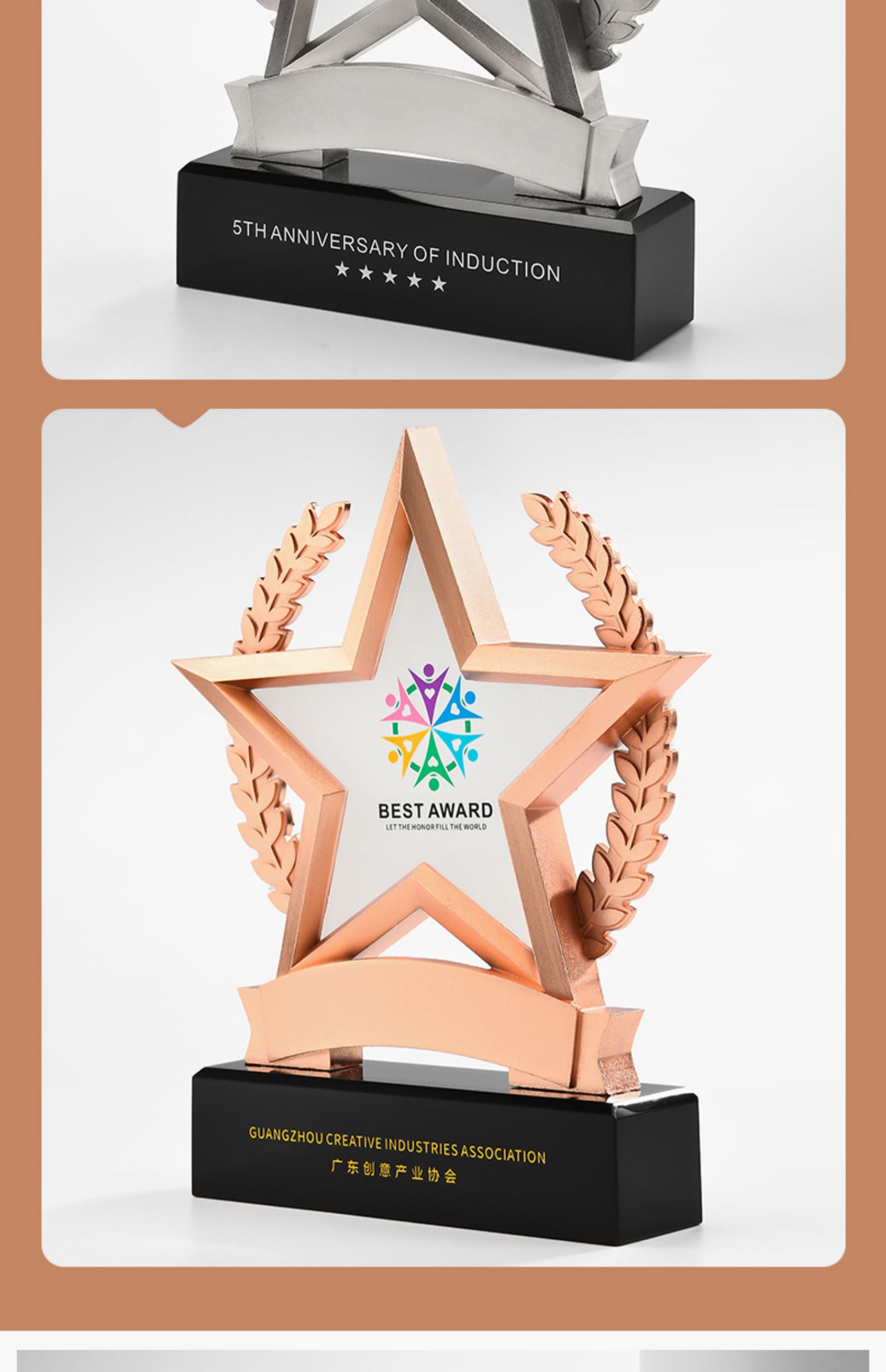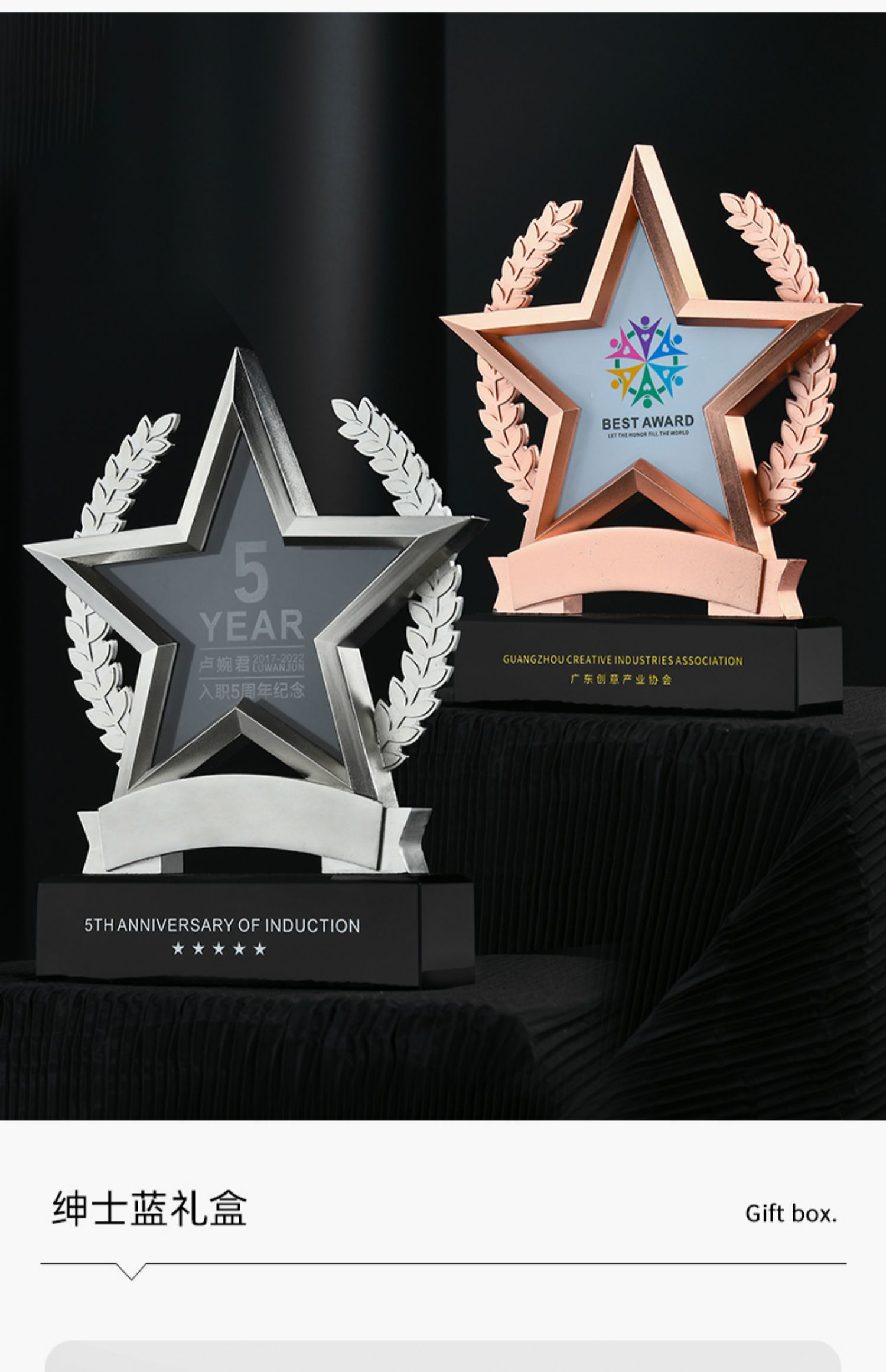1098 / 红色五角星金属水晶奖杯定制金银铜订制创意志愿者纪念品优秀员工