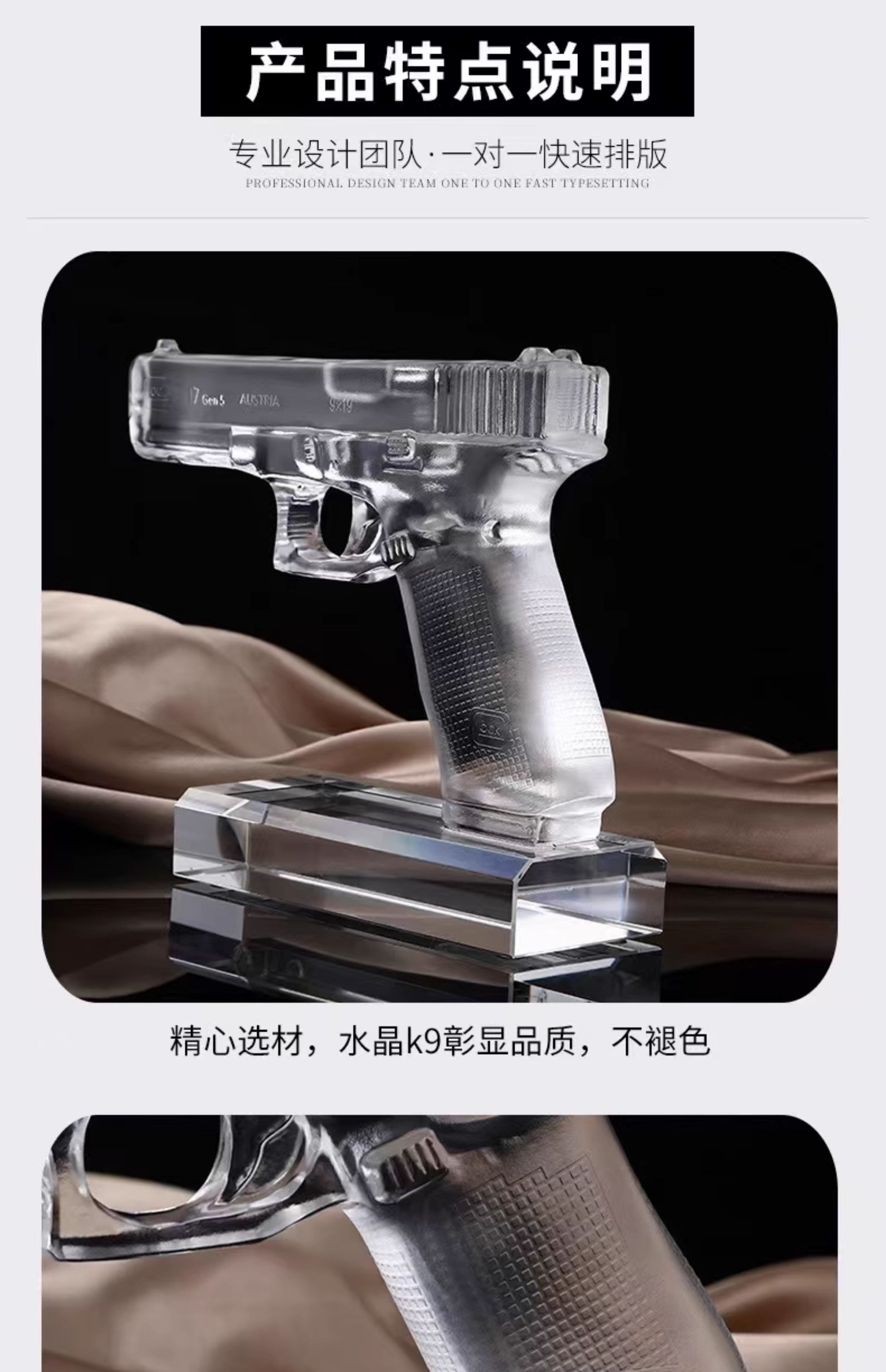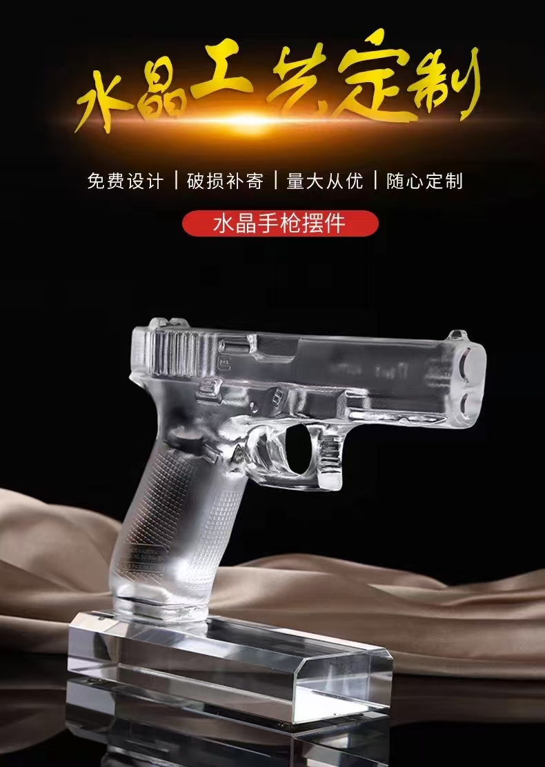 1015 / 水晶手枪奖杯退伍退役战友当兵服役军校毕业射击俱乐部纪念品比赛