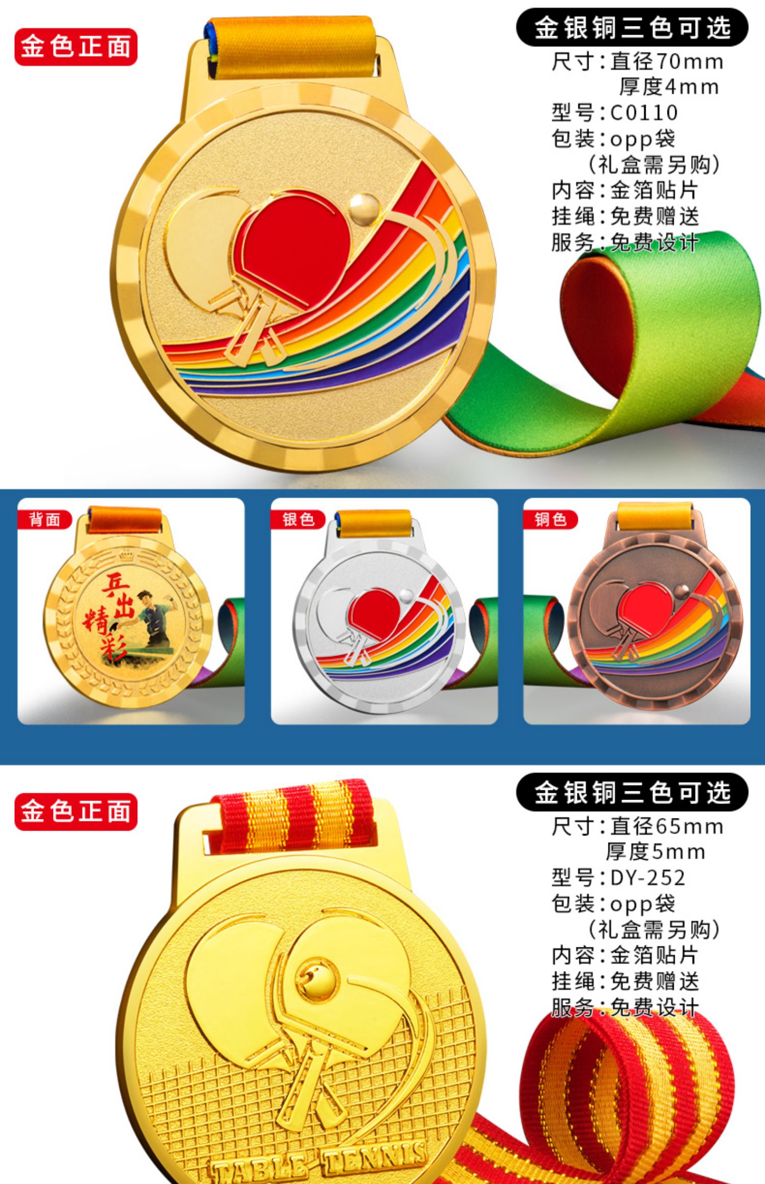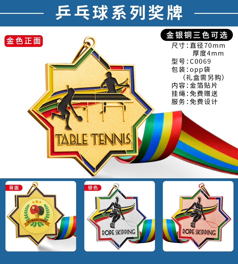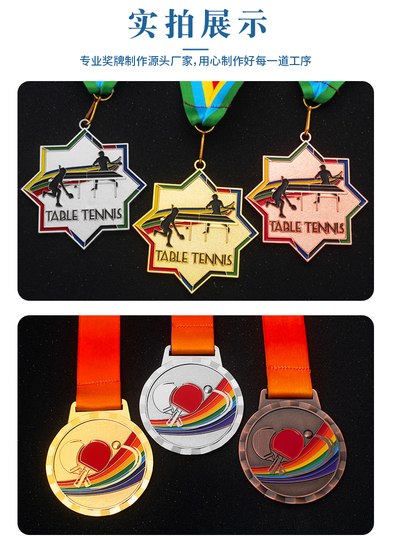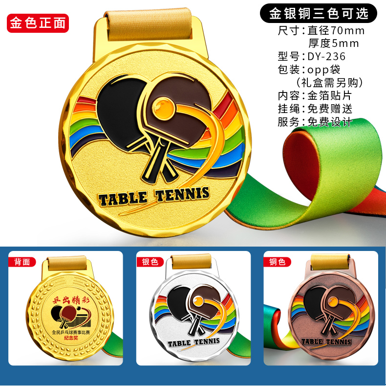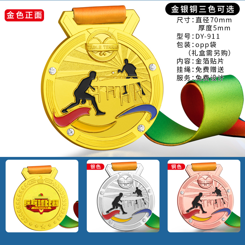 879 / 乒乓球奖牌定制运动比赛金银铜牌金箔奖杯定做儿童颁奖冠亚季奖品