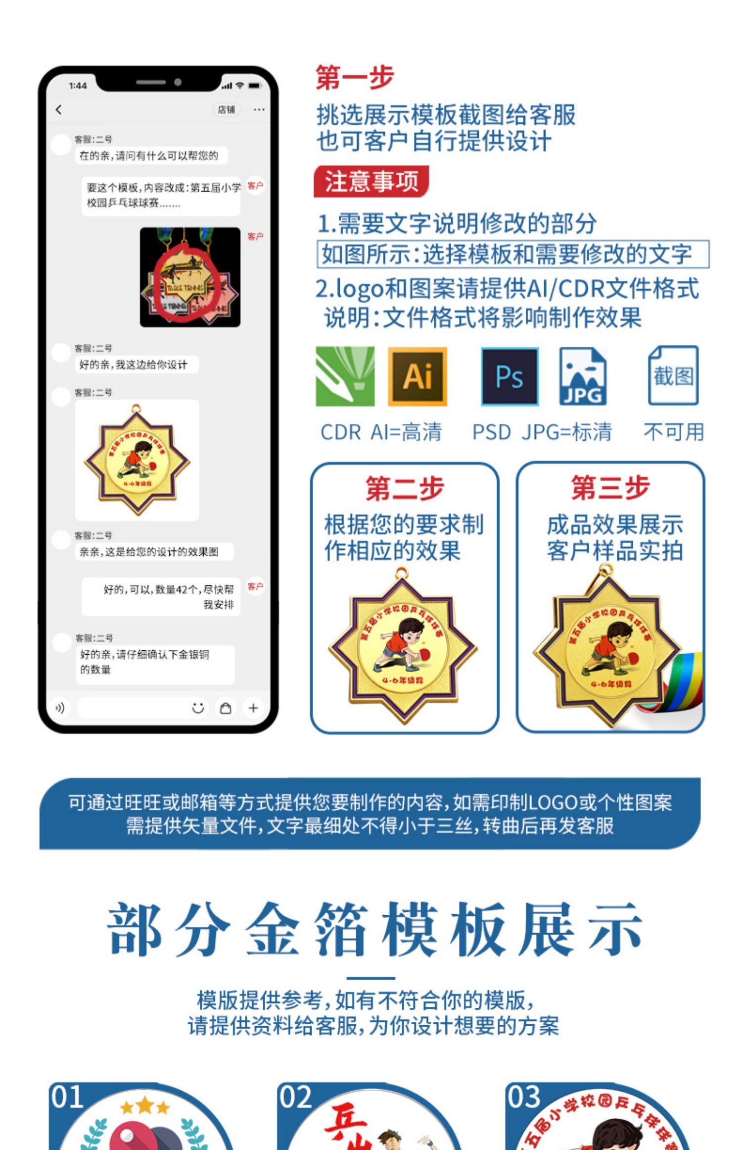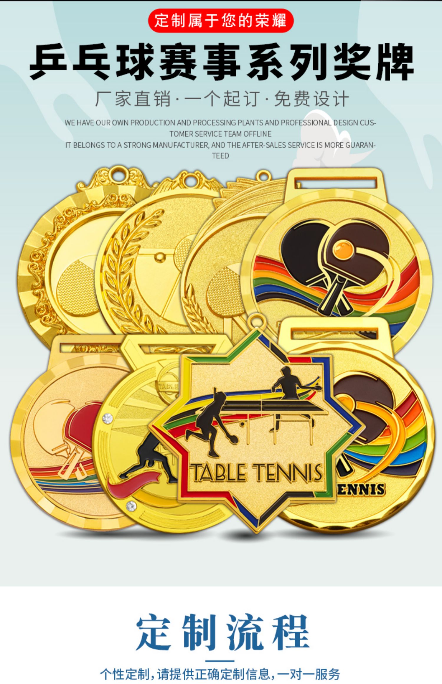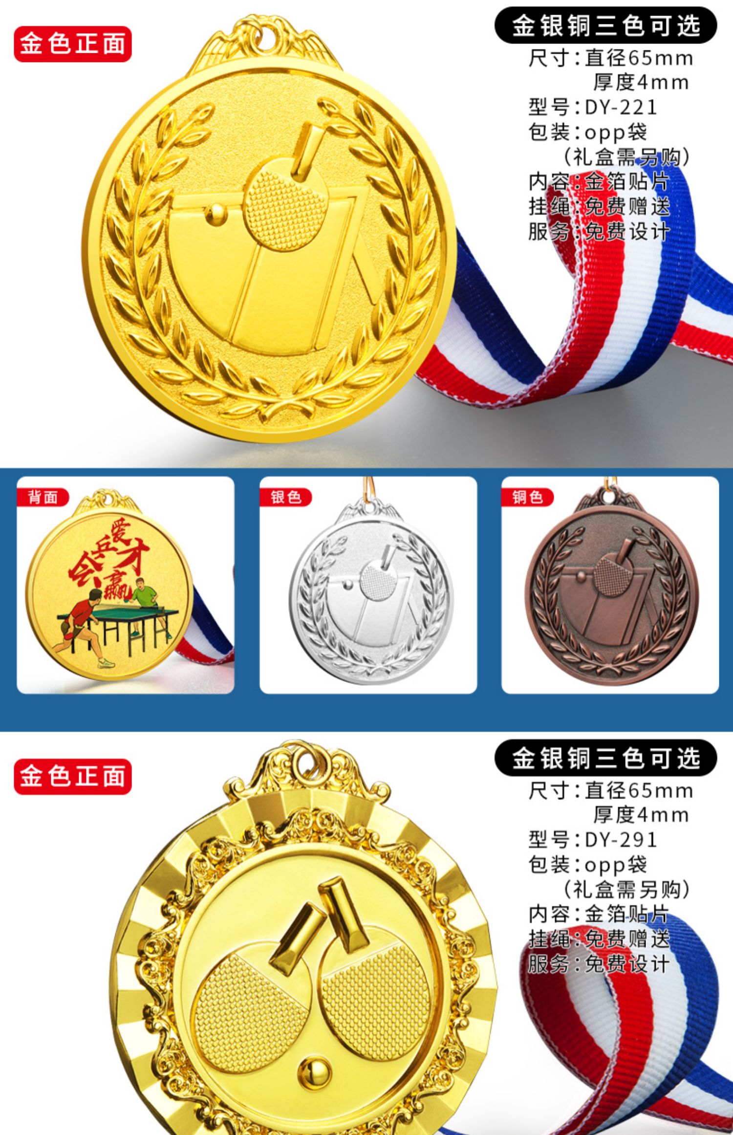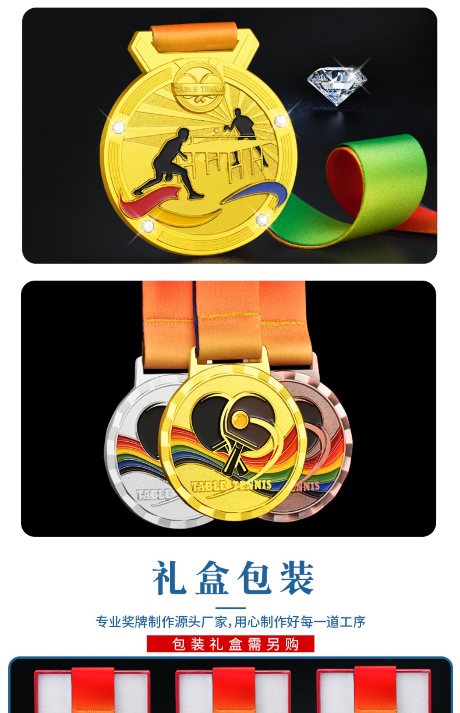 879 / 乒乓球奖牌定制运动比赛金银铜牌金箔奖杯定做儿童颁奖冠亚季奖品