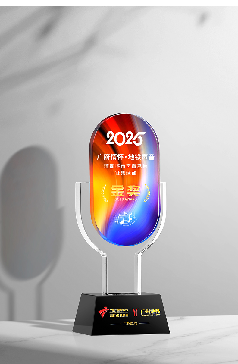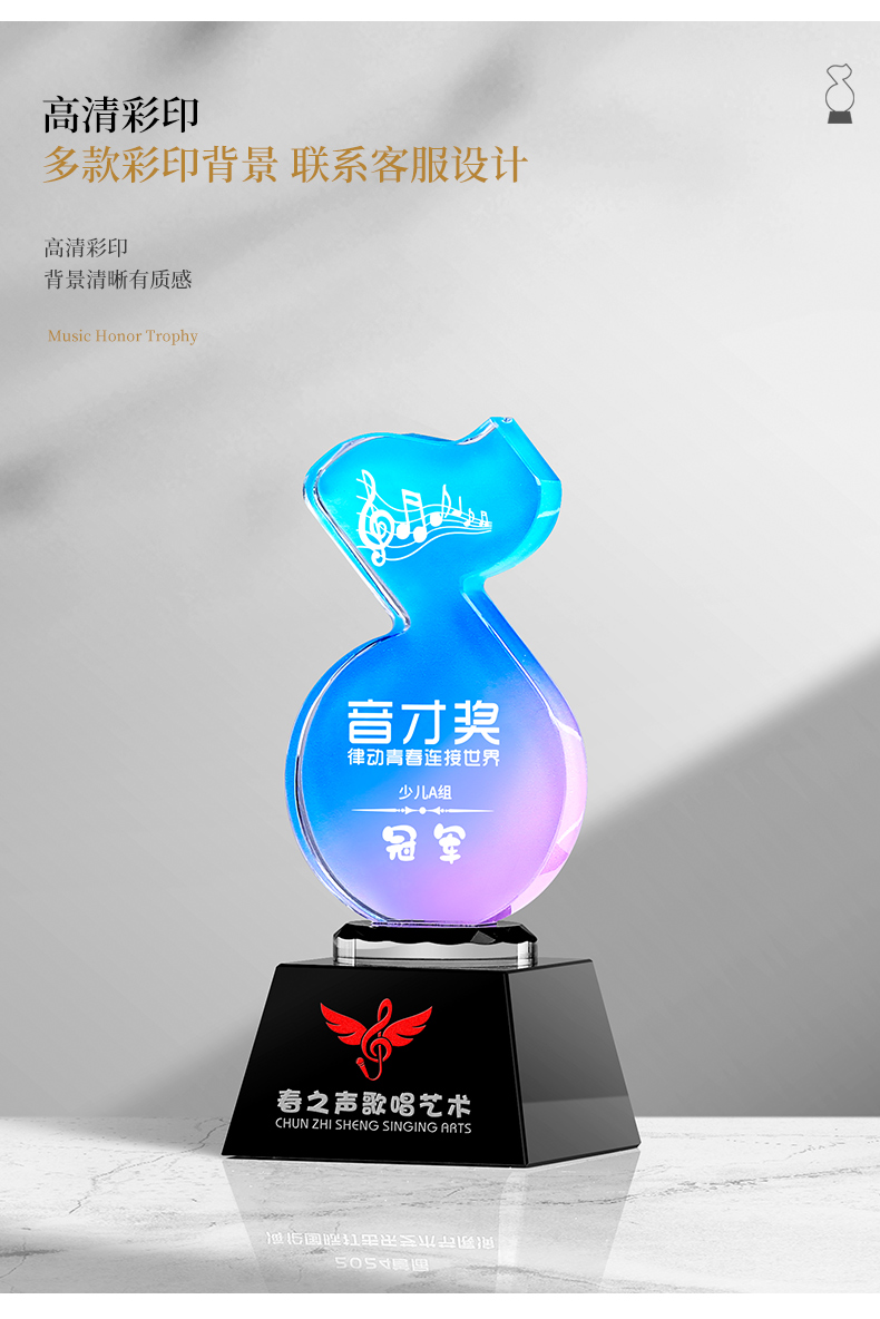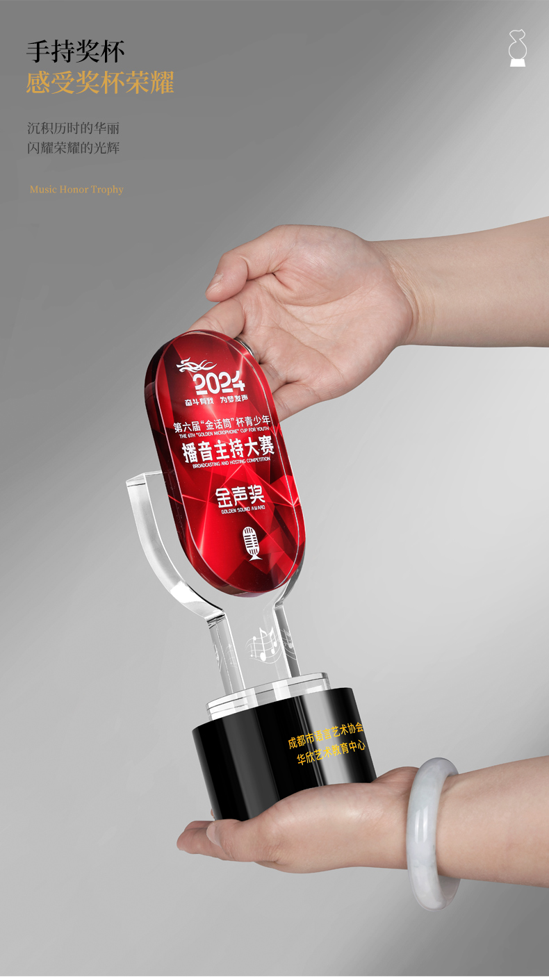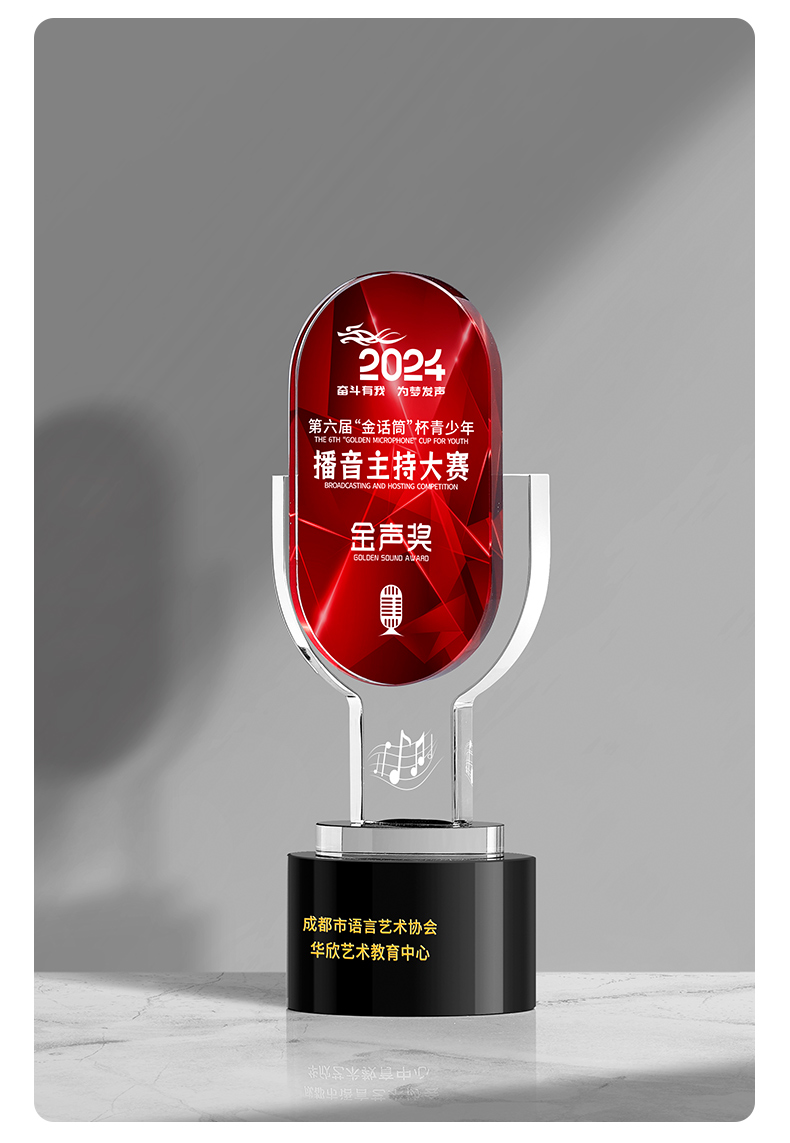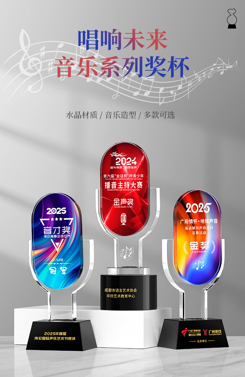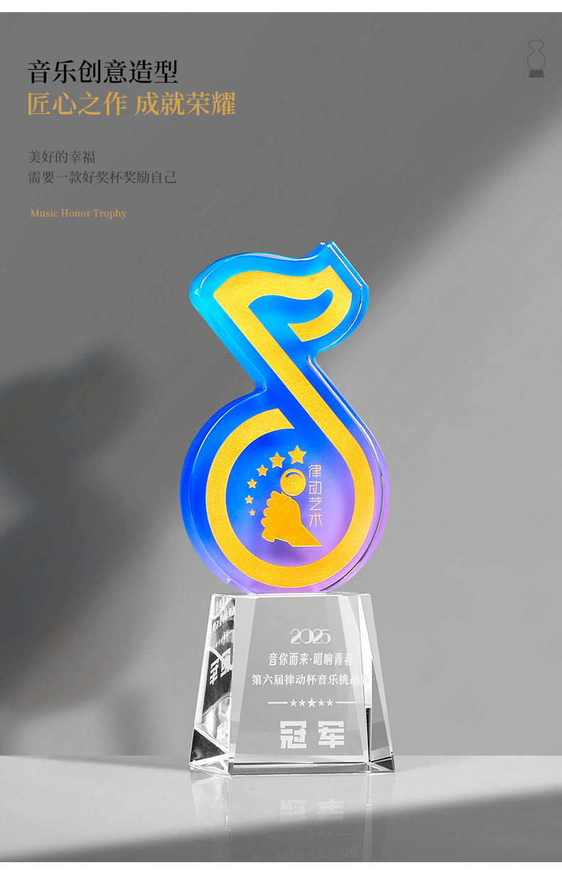 881 / 音乐音符水晶奖杯定制金话筒唱歌主持演讲辩论学生好声音比赛冠军