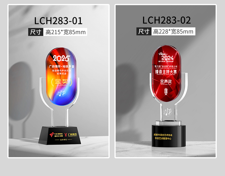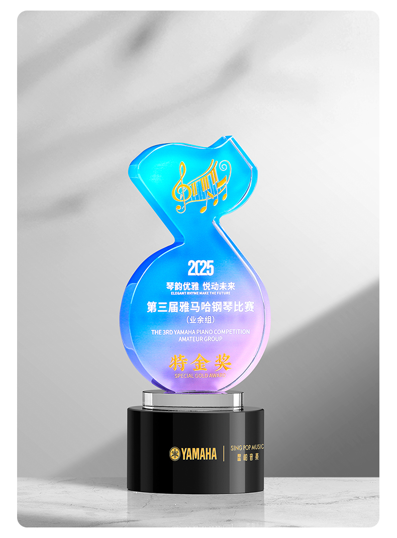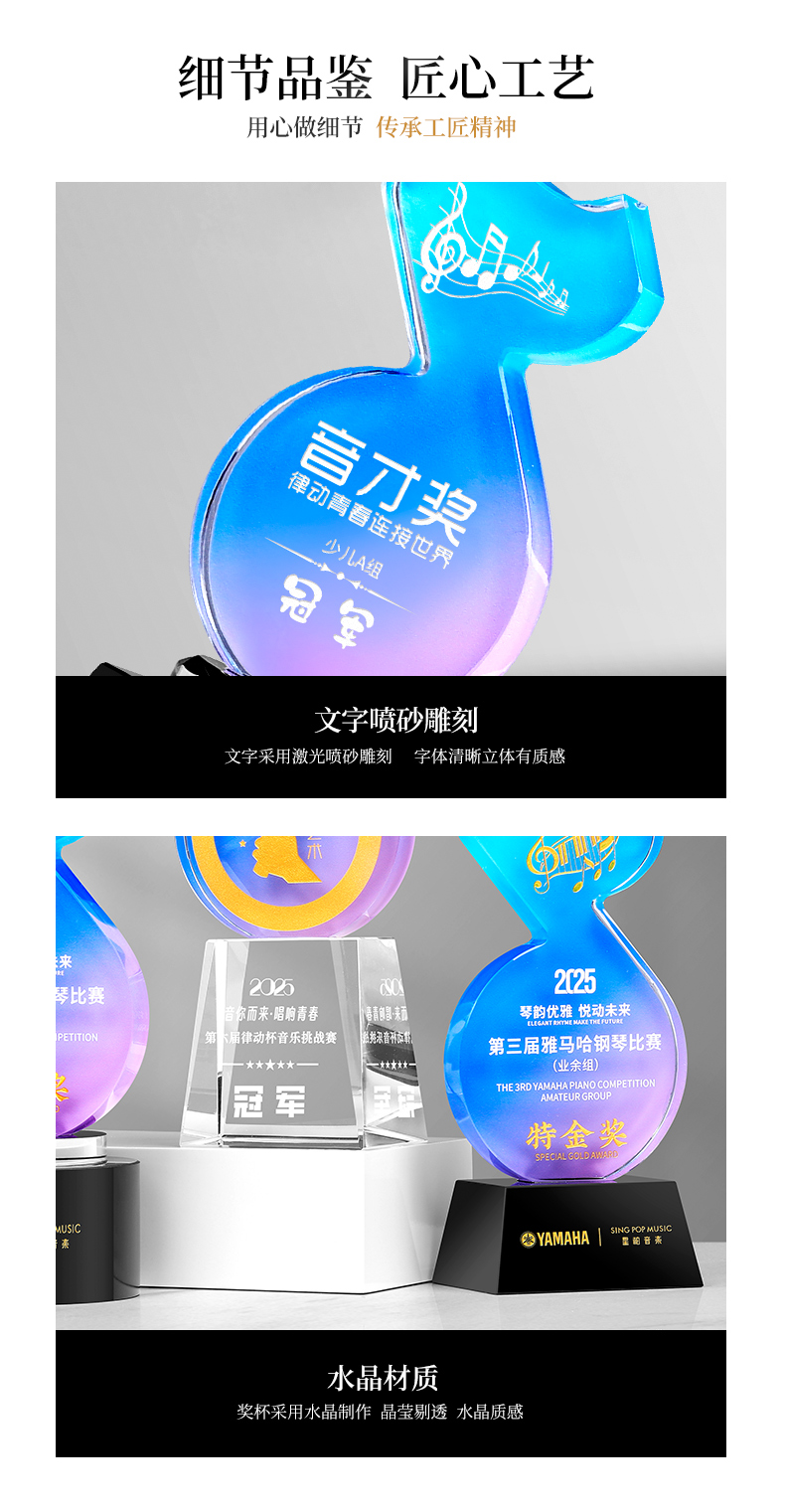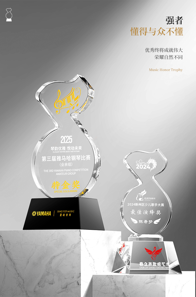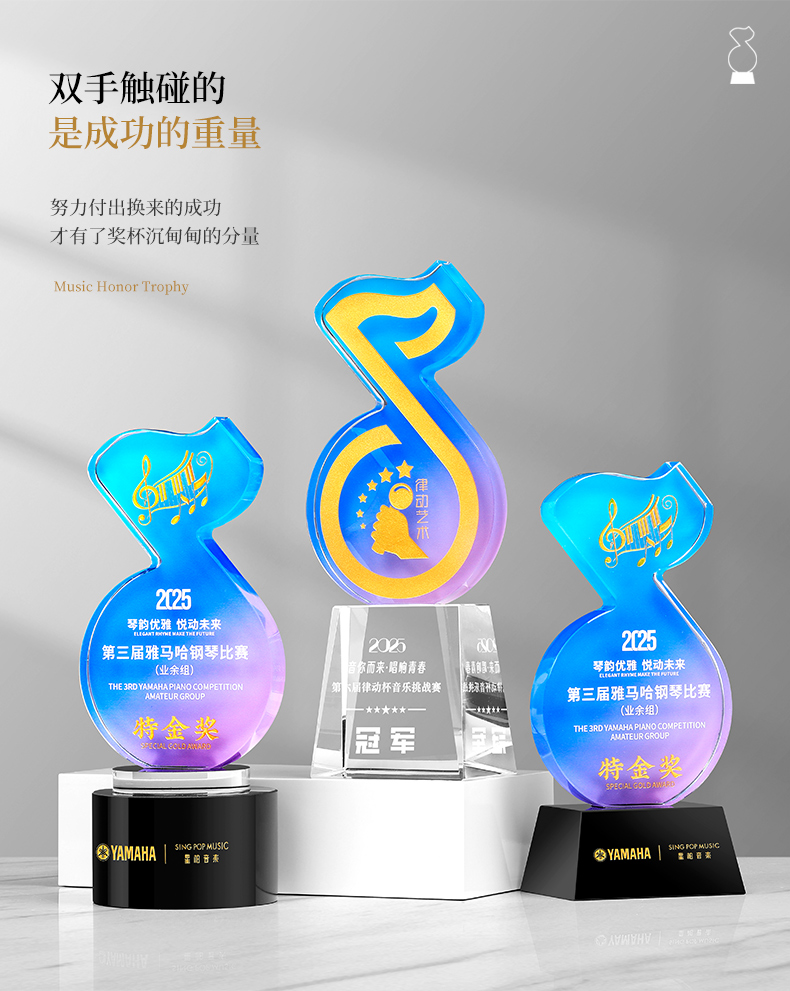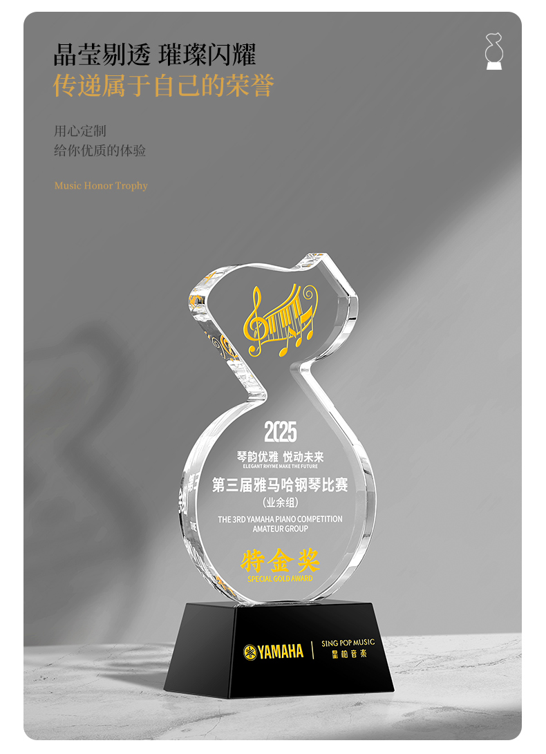 881 / 音乐音符水晶奖杯定制金话筒唱歌主持演讲辩论学生好声音比赛冠军