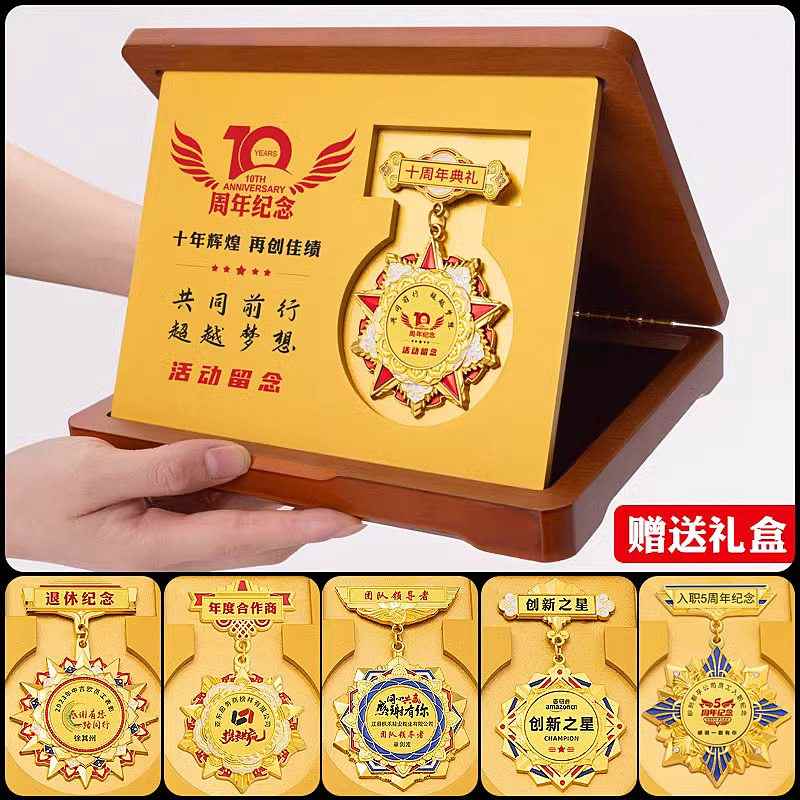 725 / 成都勋章定做折叠木板奖章退休十周年…