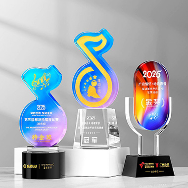881 / 成都音乐音符水晶奖杯定制金话筒唱歌…