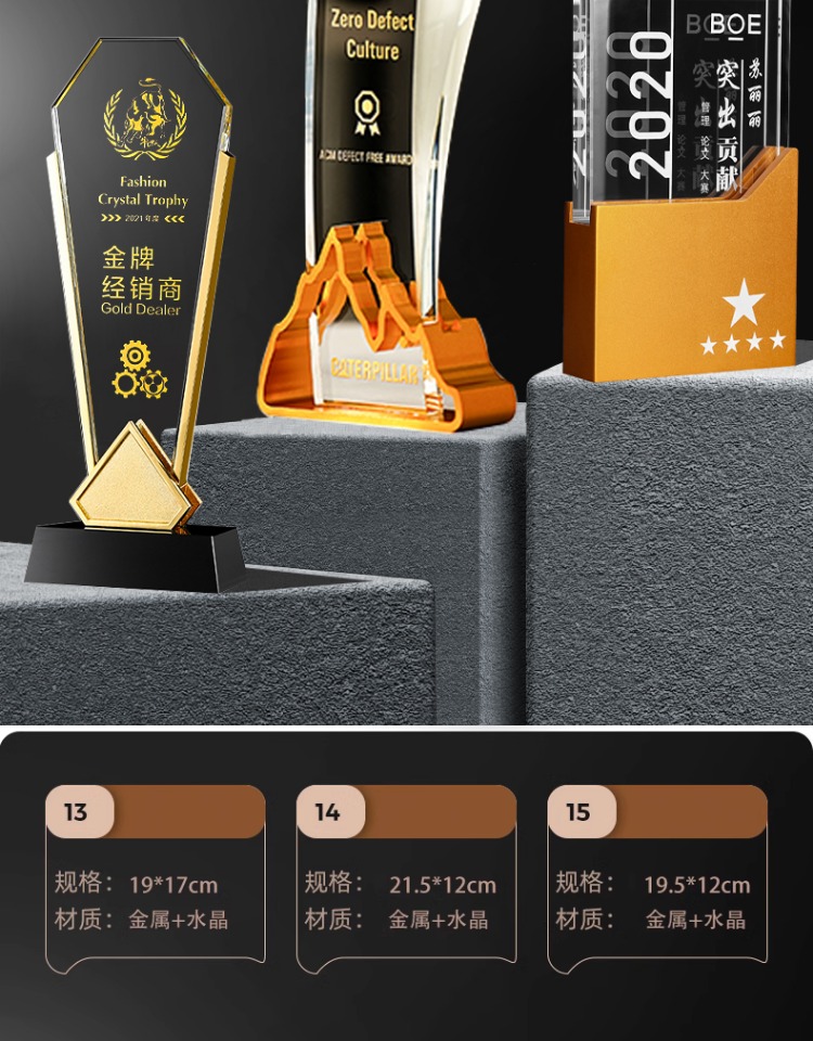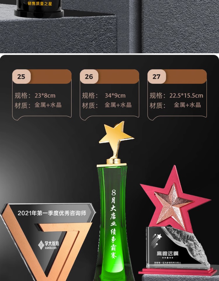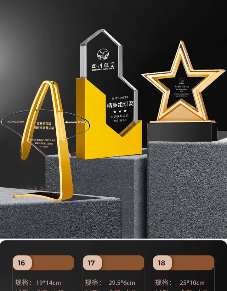 302 / 金属水晶奖杯新款高档创意定制金银铜五角星奖杯年度优秀员工颁奖奖牌