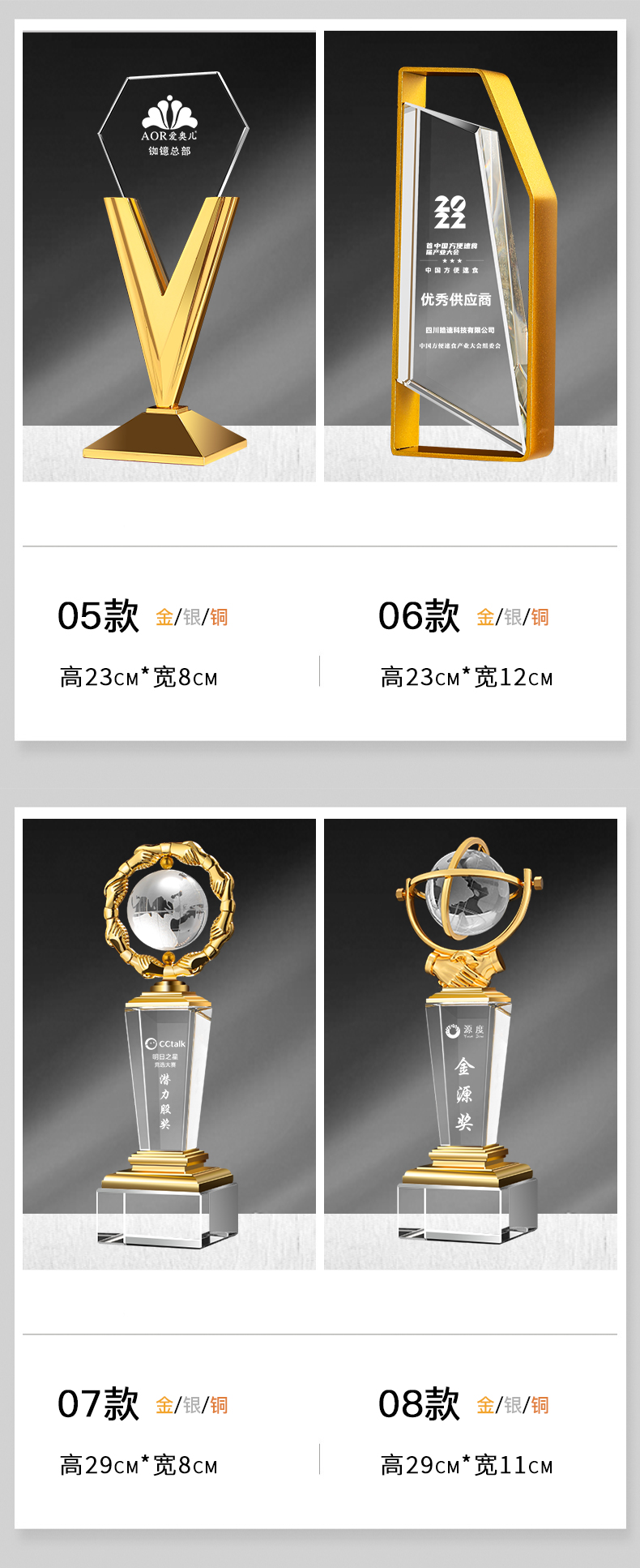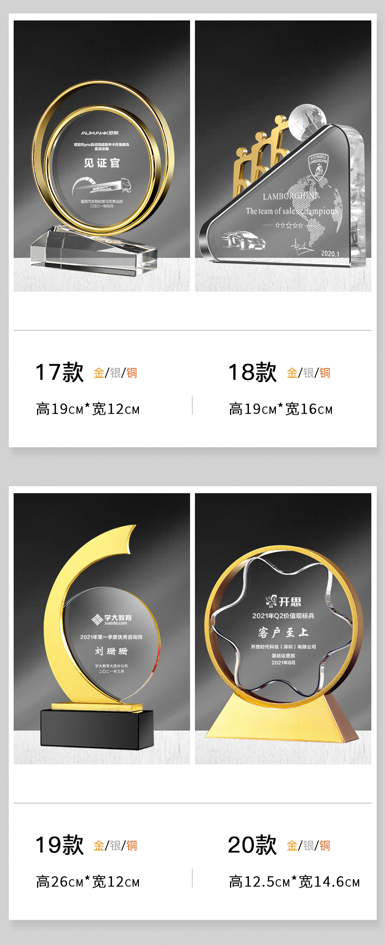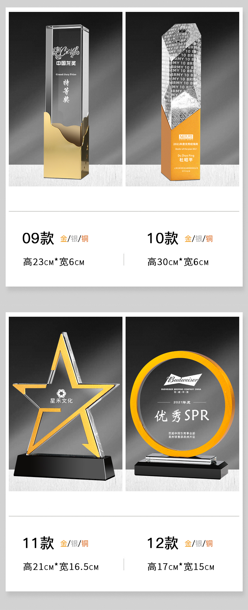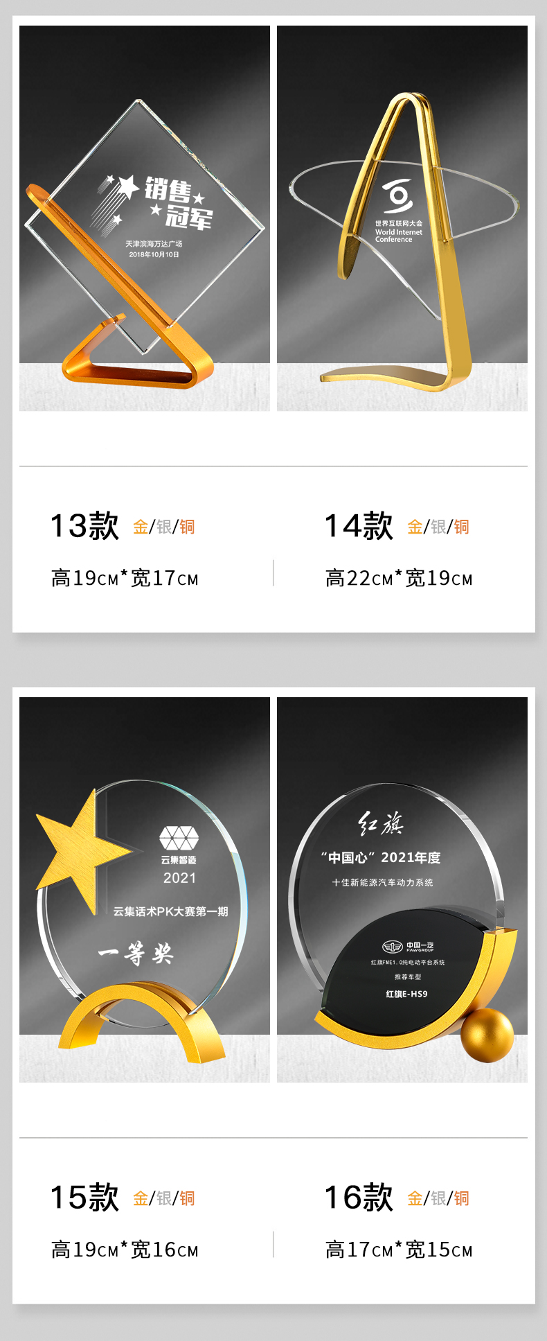 301 / 新款高档创意定制水晶金属金银铜五角星奖杯年度优秀员工颁奖奖牌