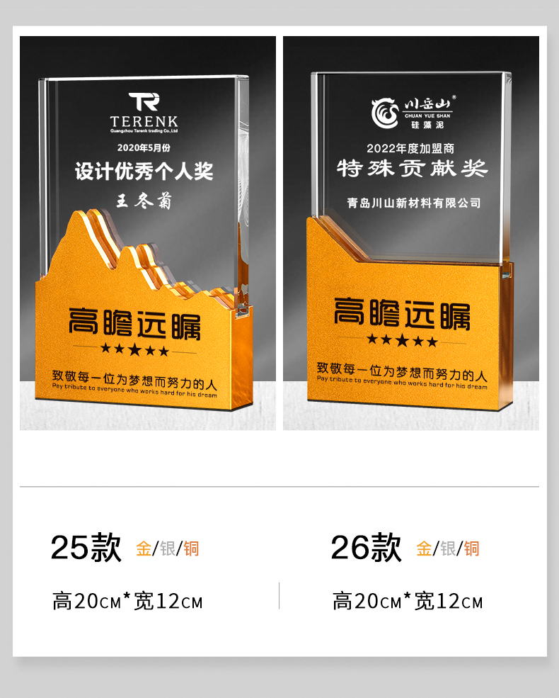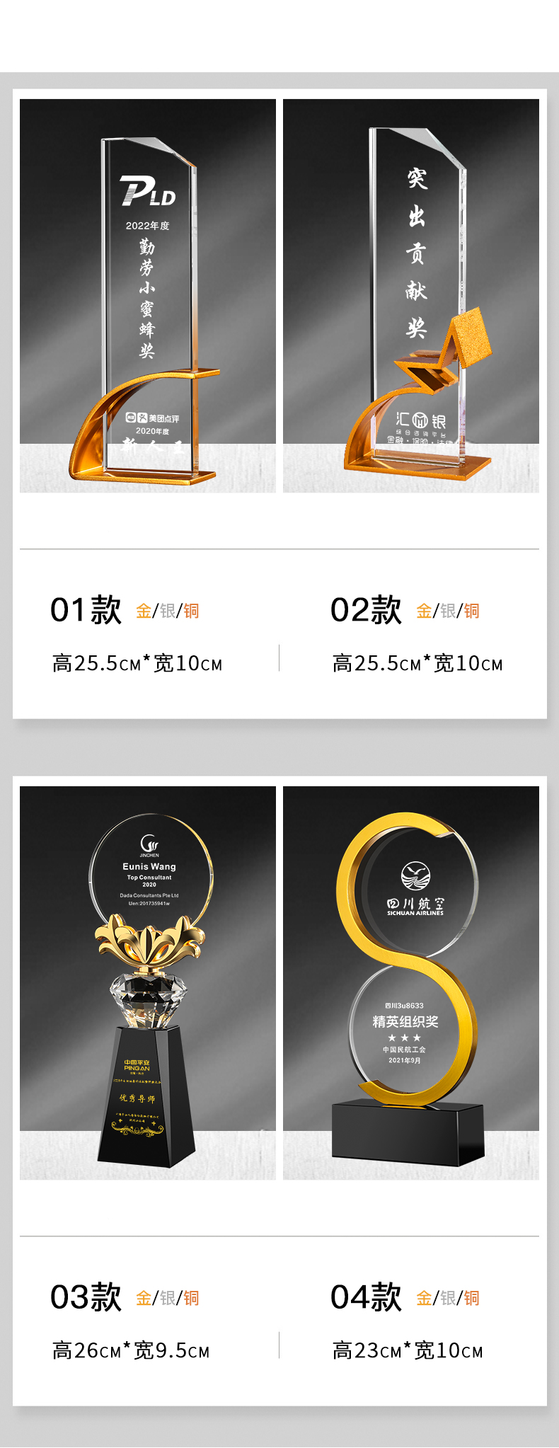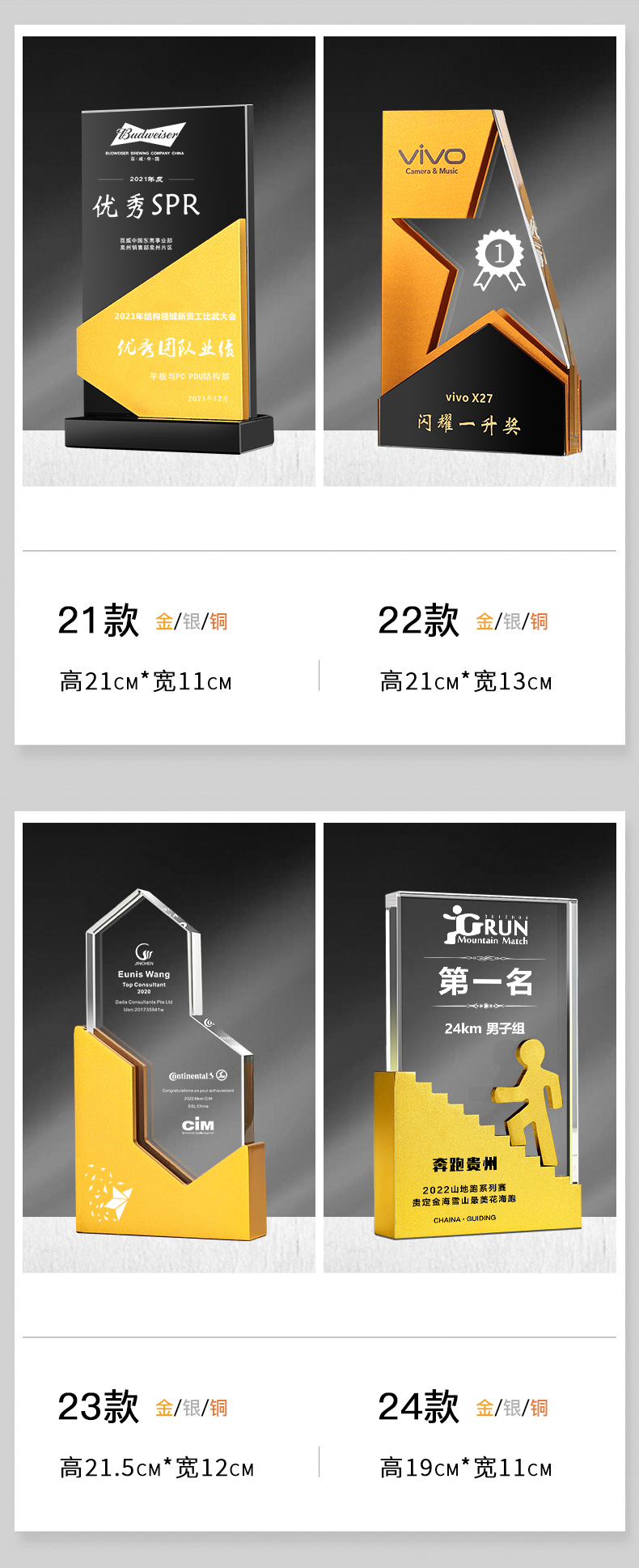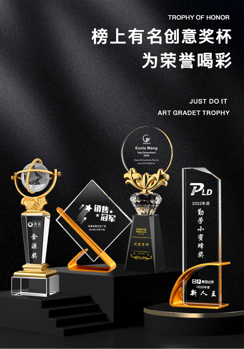301 / 新款高档创意定制水晶金属金银铜五角星奖杯年度优秀员工颁奖奖牌