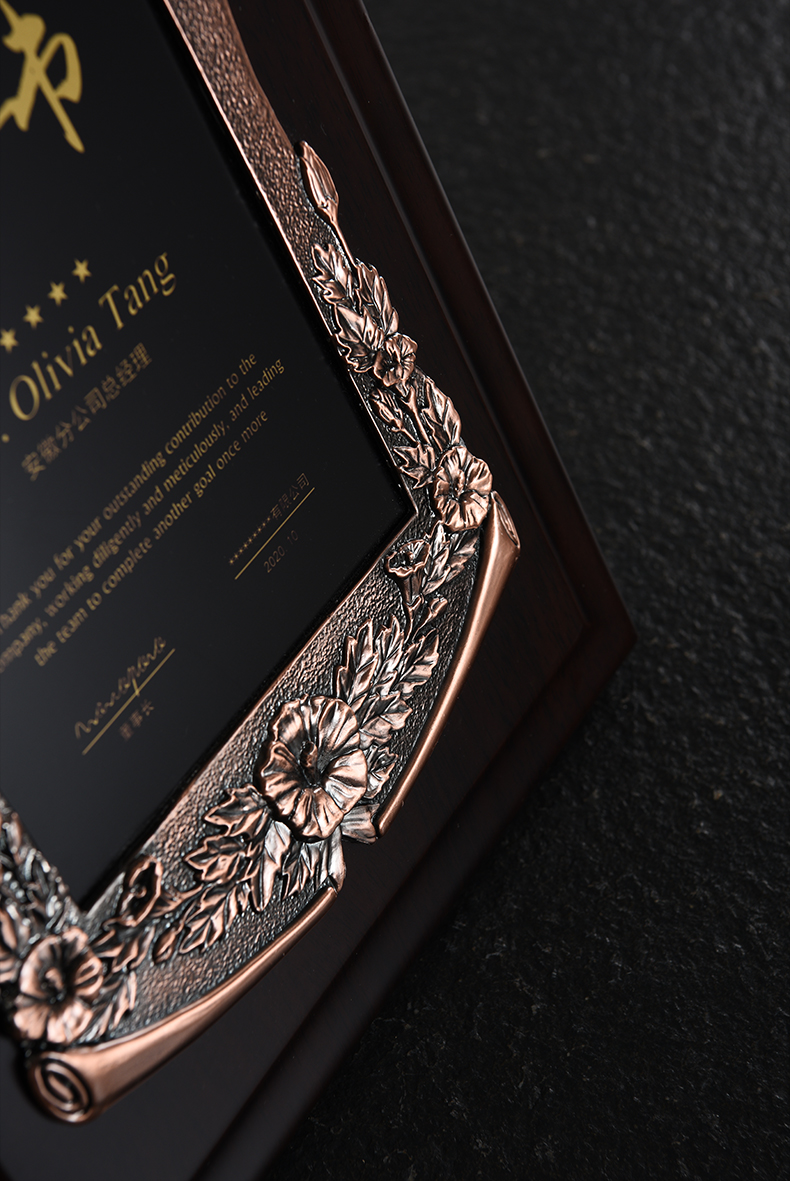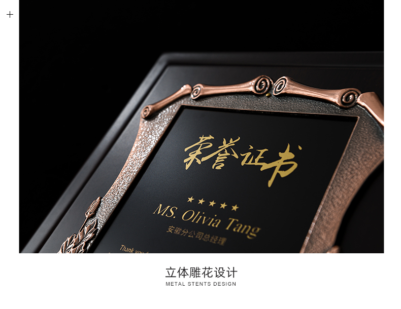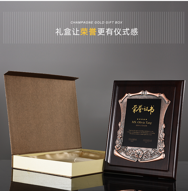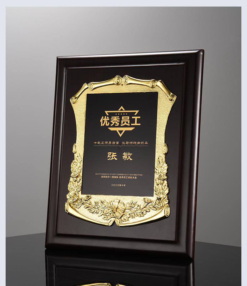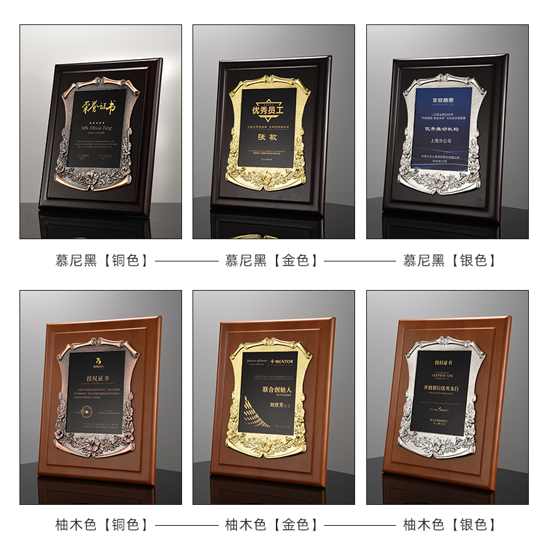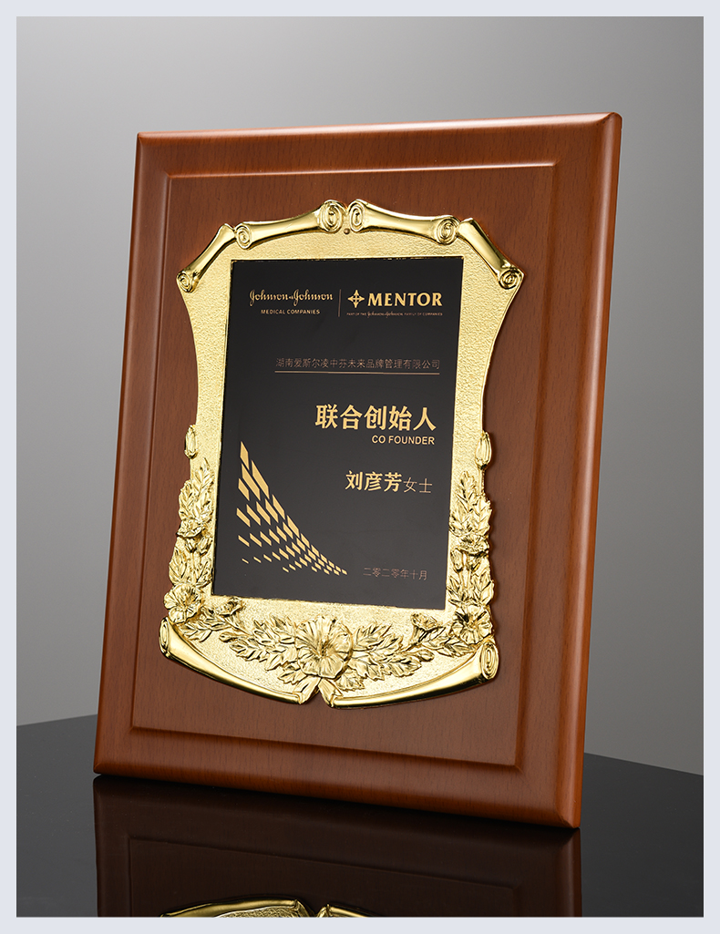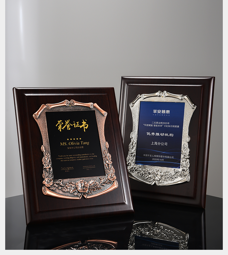 542 / 水晶奖牌定制金属框金箔荣誉授权牌代理加盟商牌匾木质奖杯定做