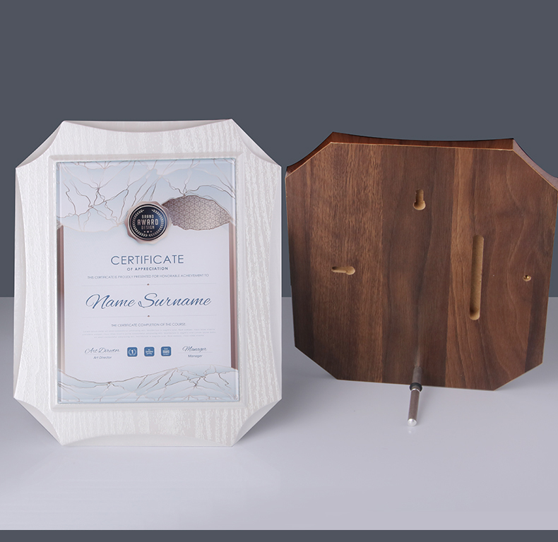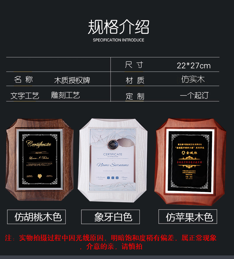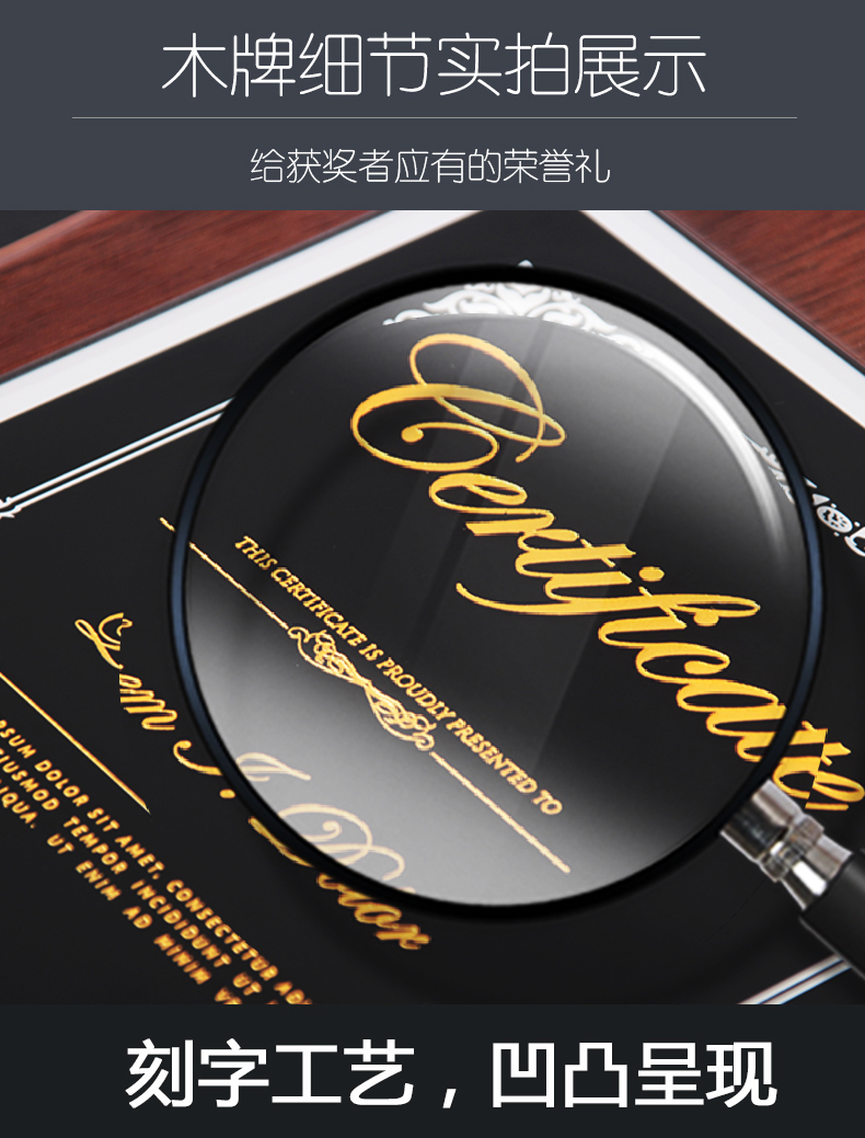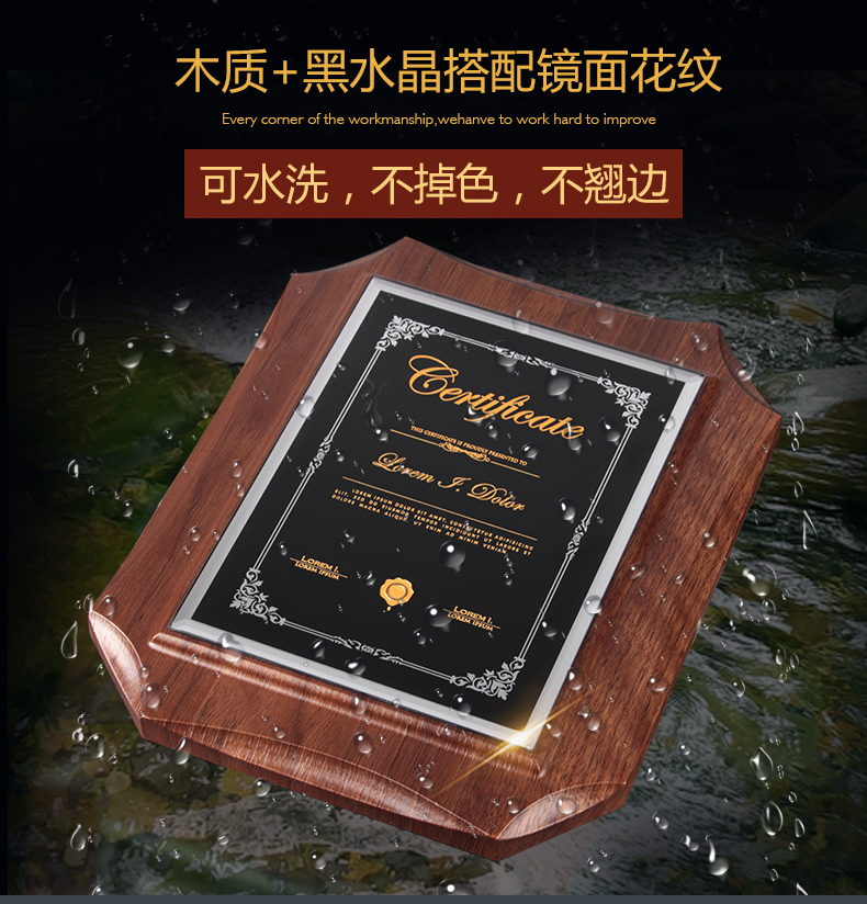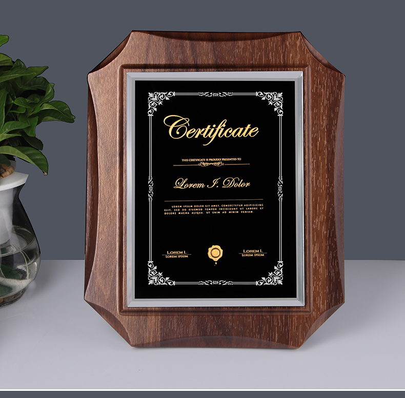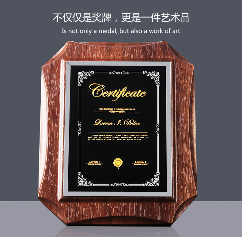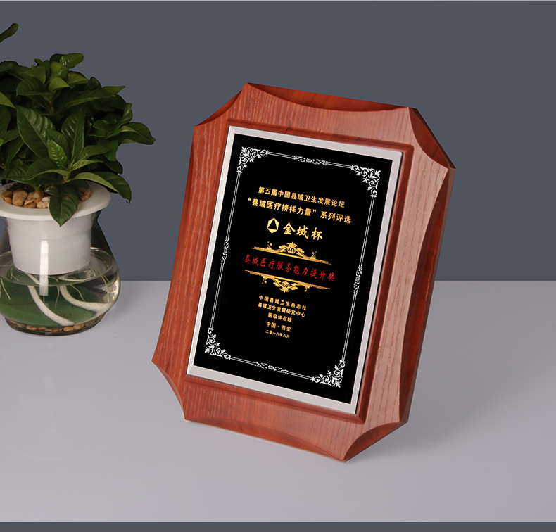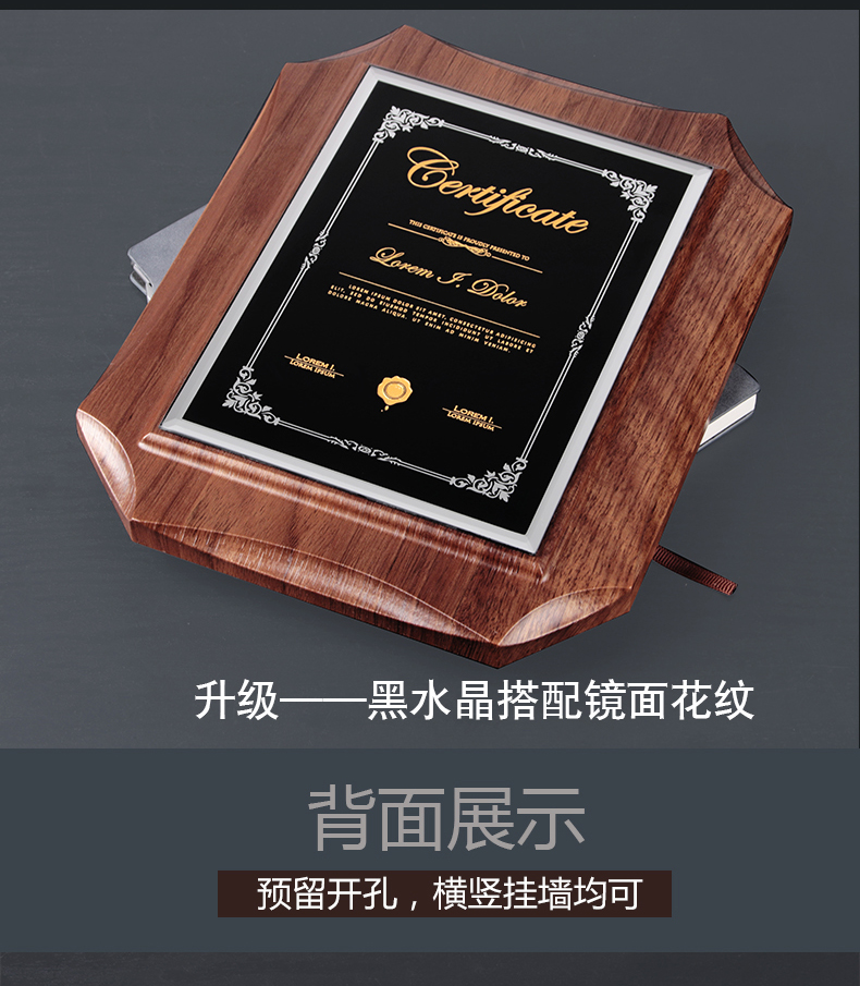 524 / 高档仿胡桃木奖牌定制定做企业公司品牌授权牌优秀员工水晶彩印牌