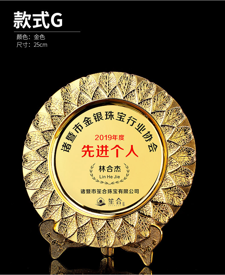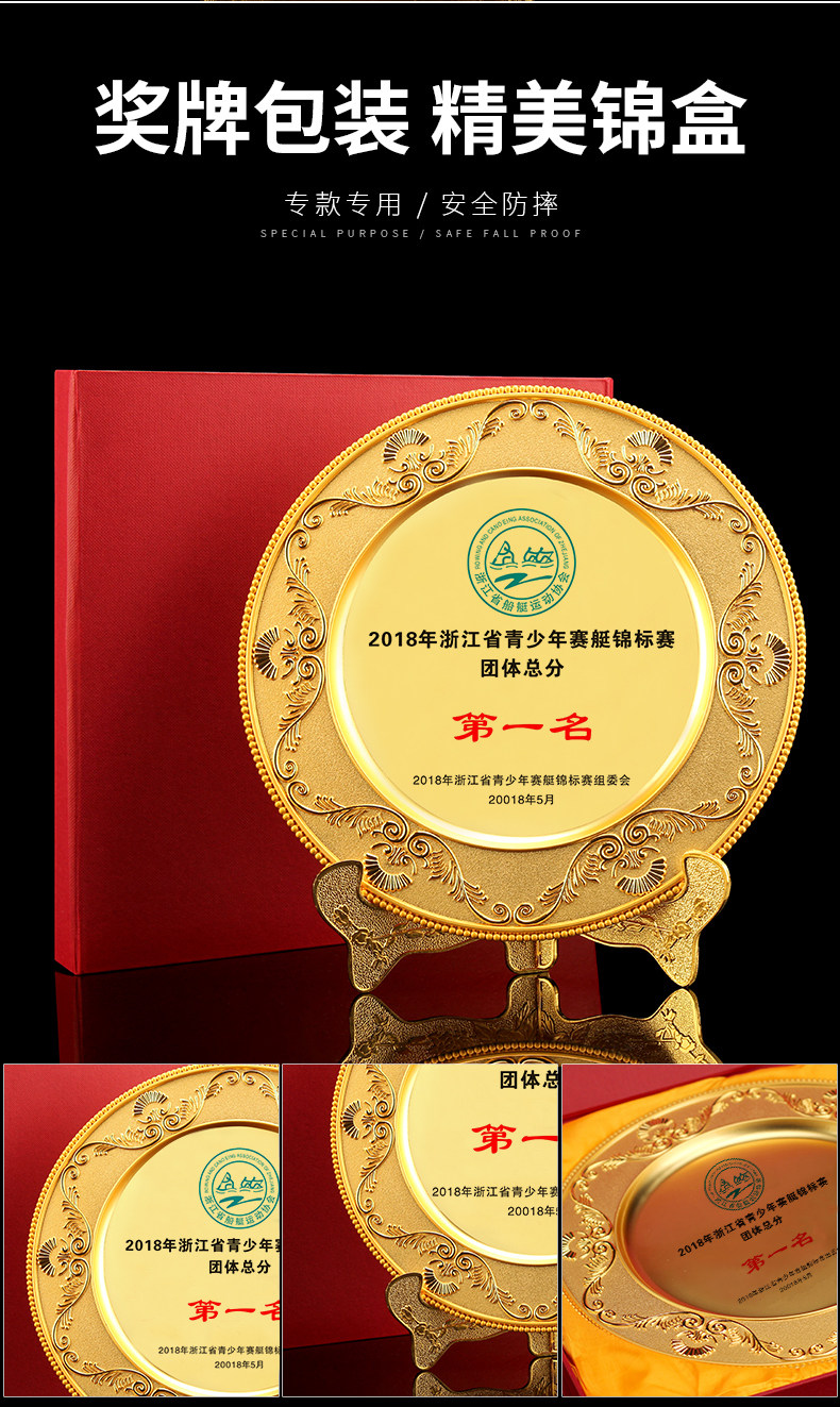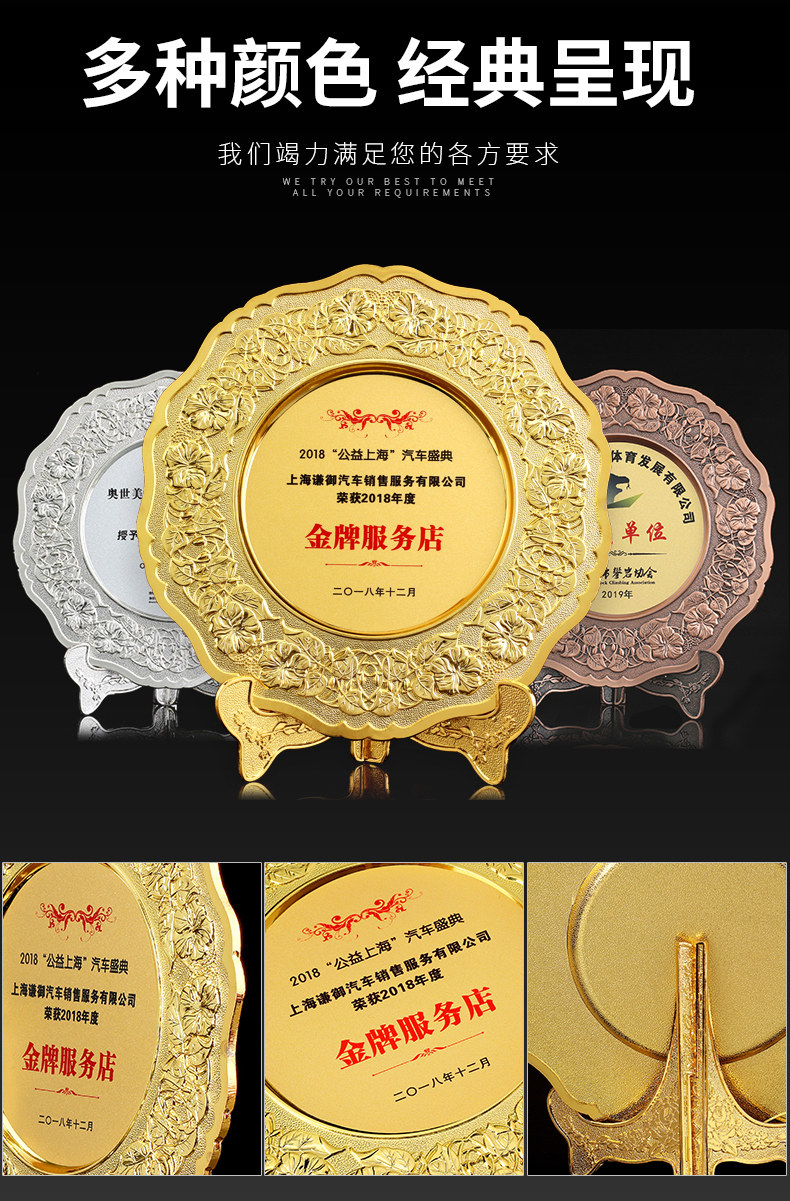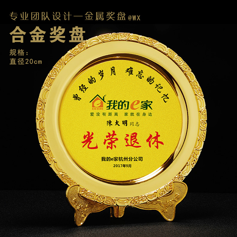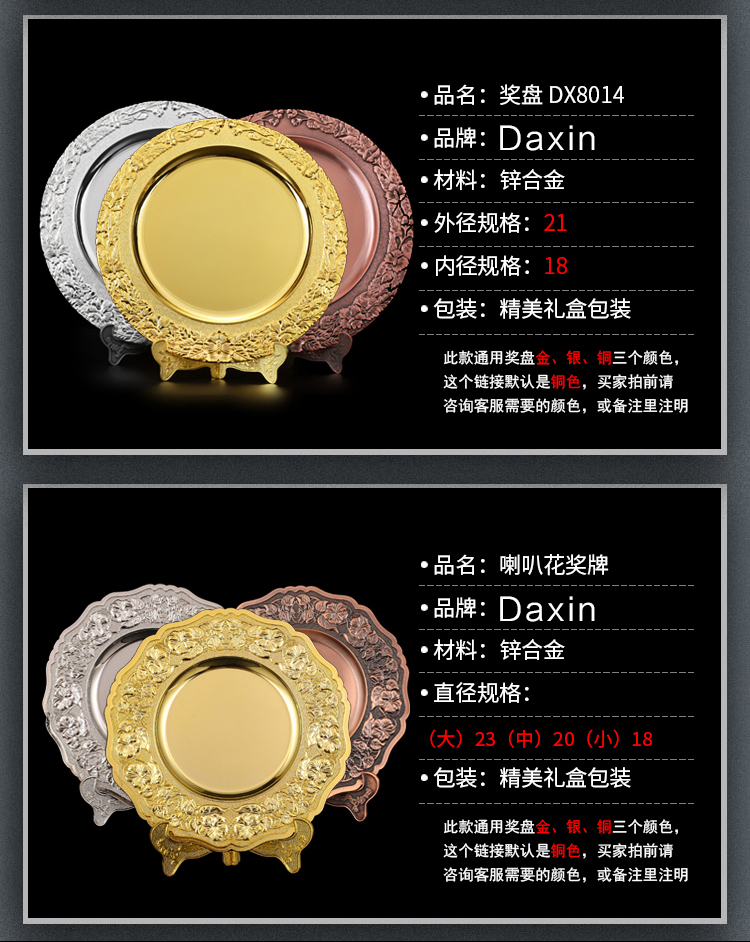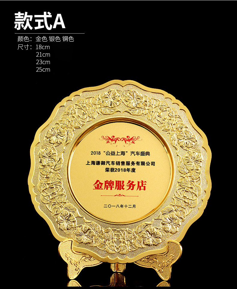 502 / 【合金奖盘】喇叭花奖盘奖牌金属锌合金奖碟商会体育运动比赛表彰颁奖定制印字