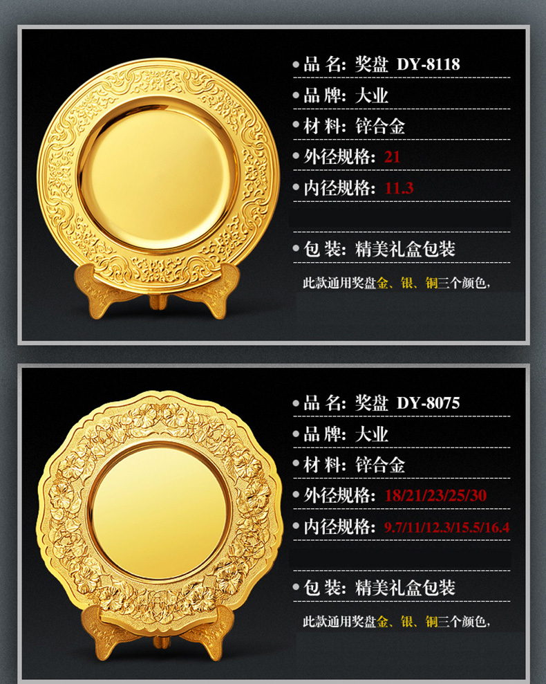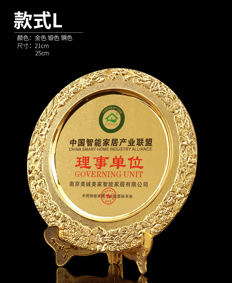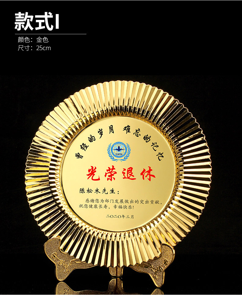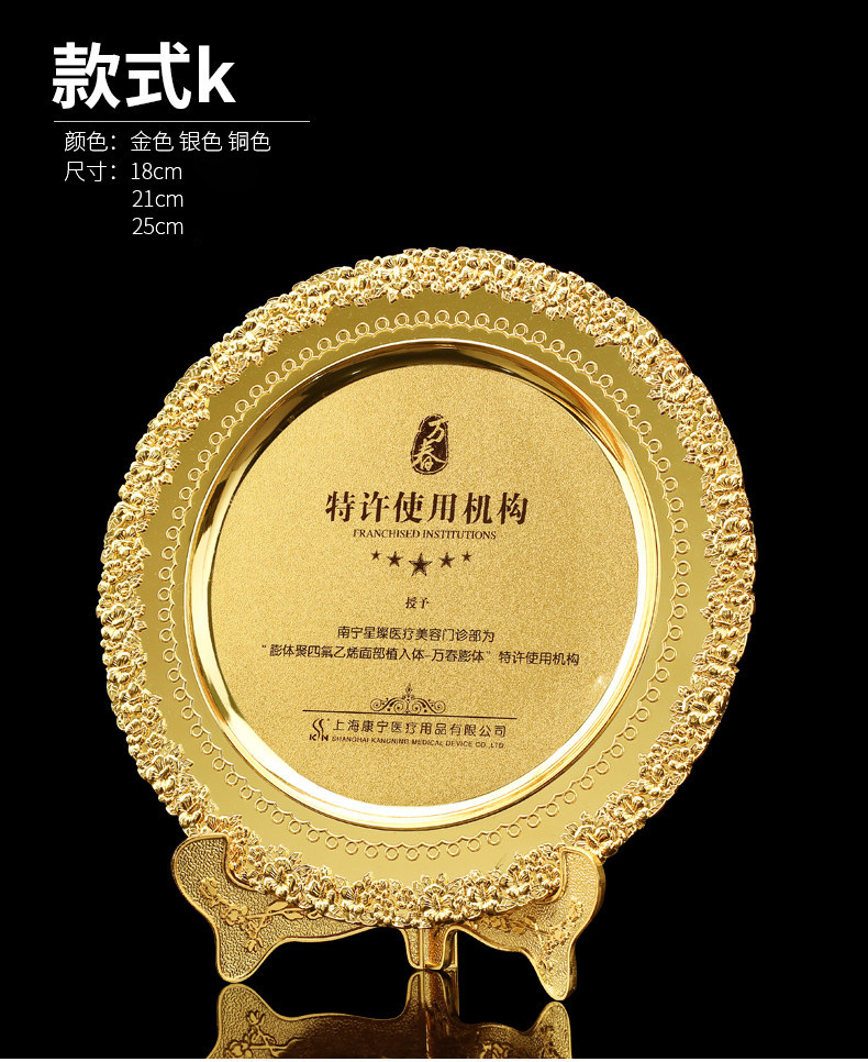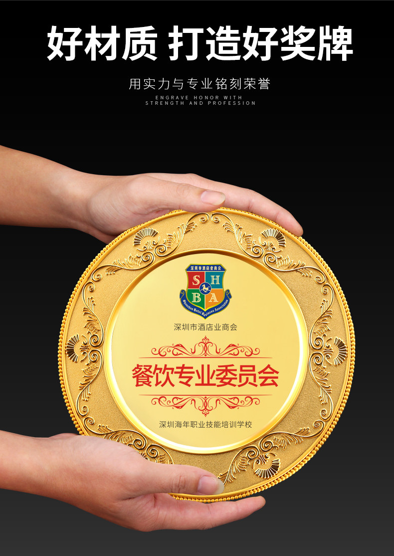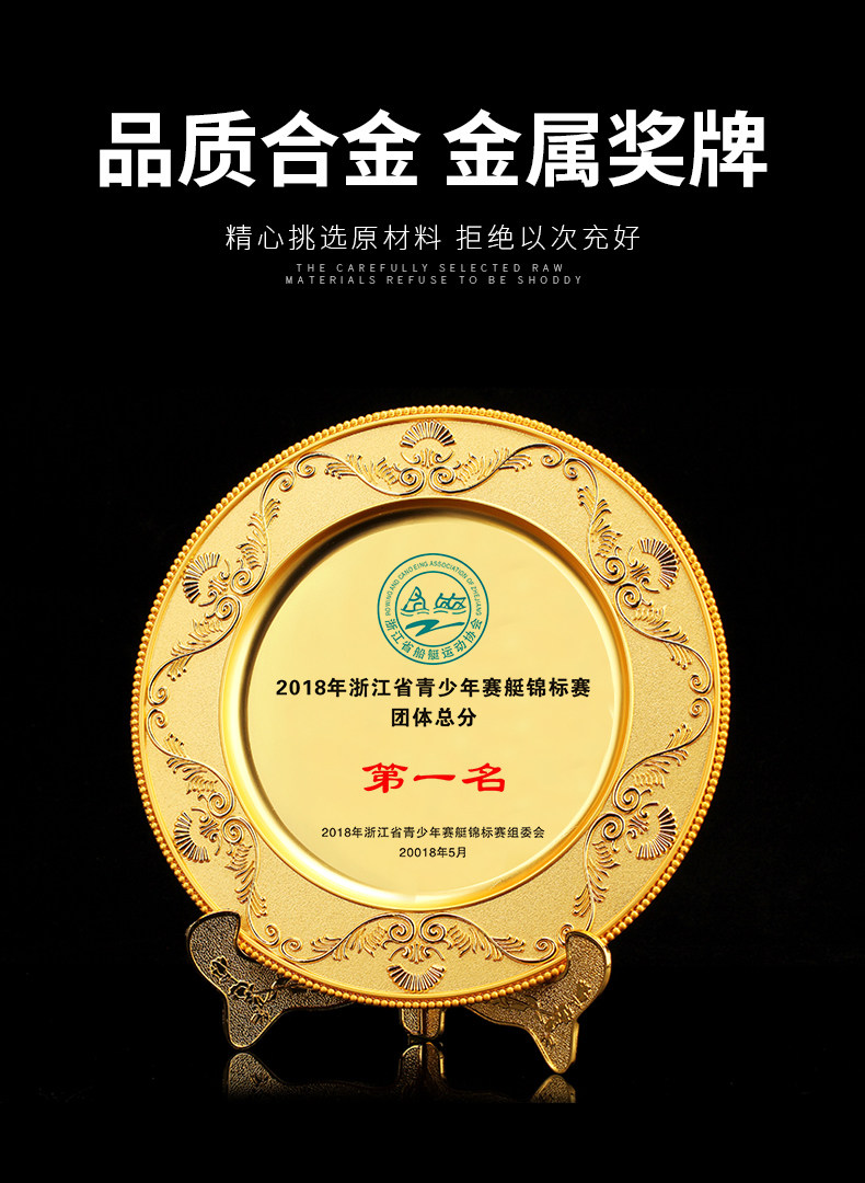 502 / 【合金奖盘】喇叭花奖盘奖牌金属锌合金奖碟商会体育运动比赛表彰颁奖定制印字