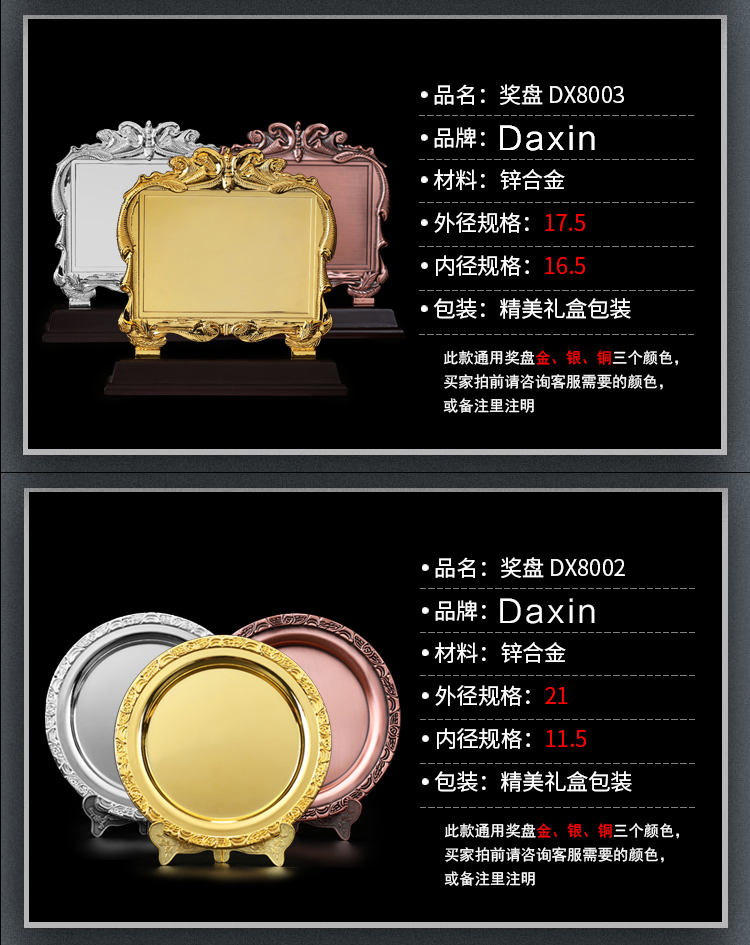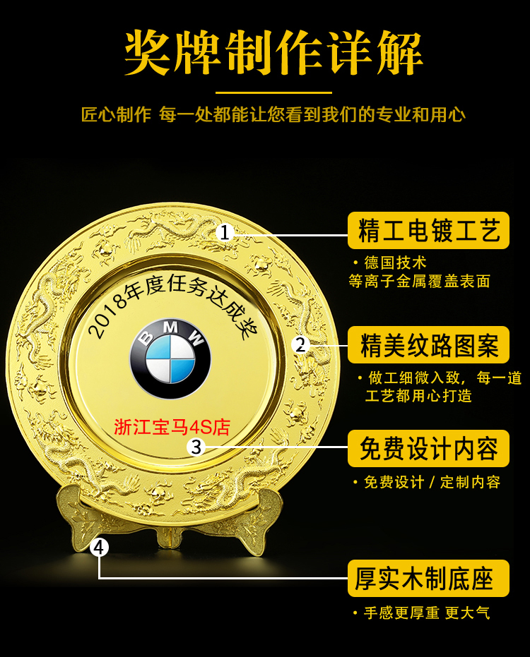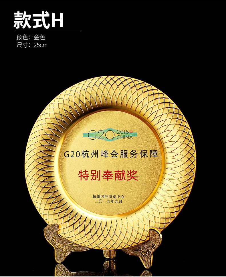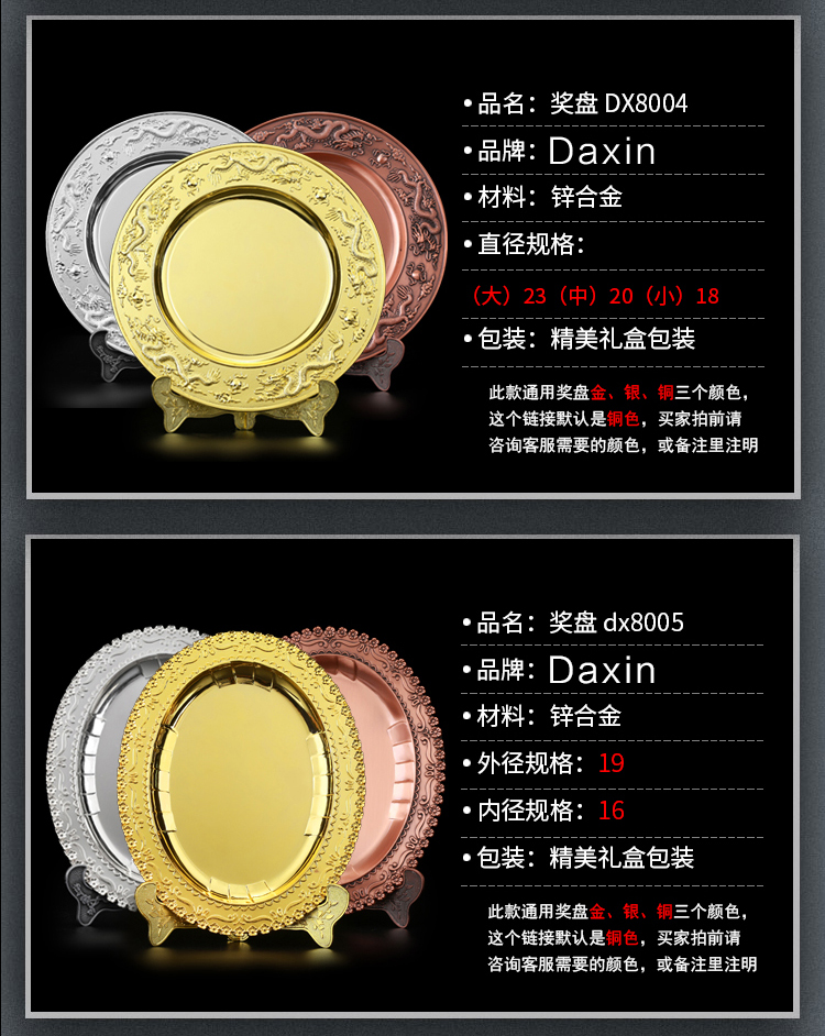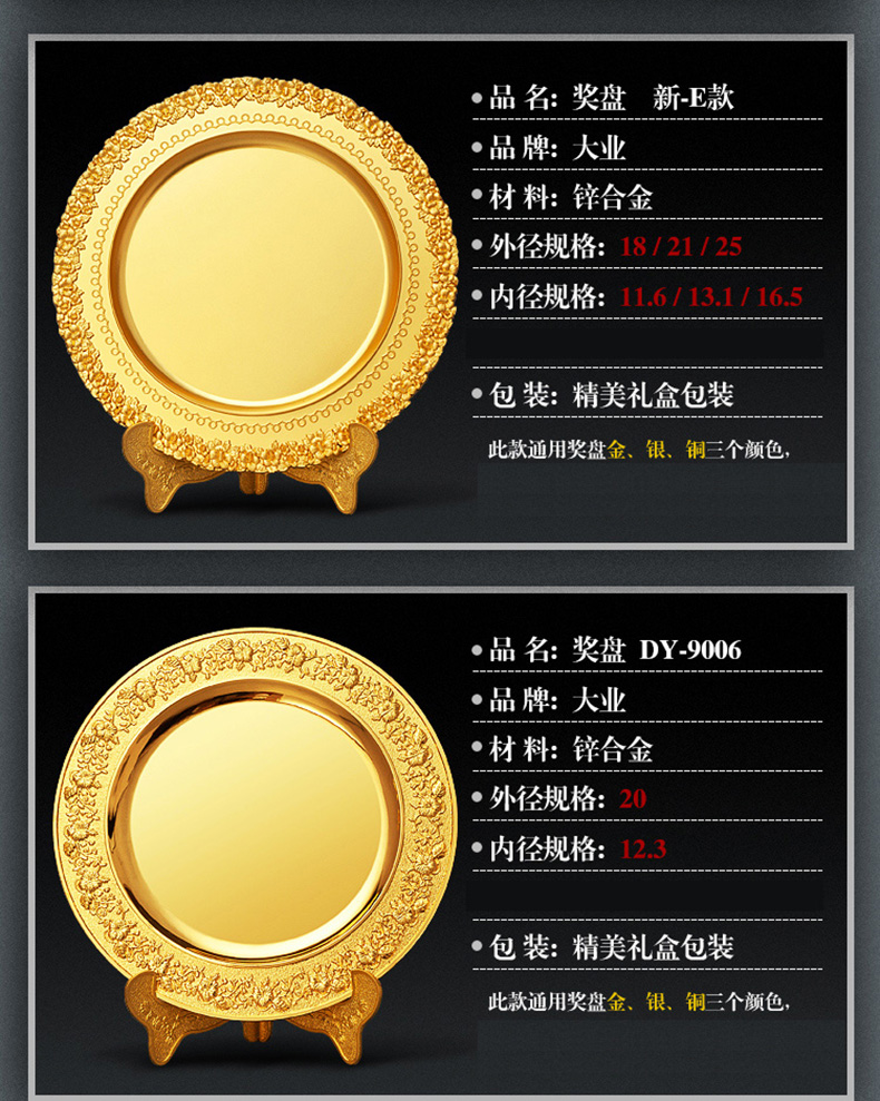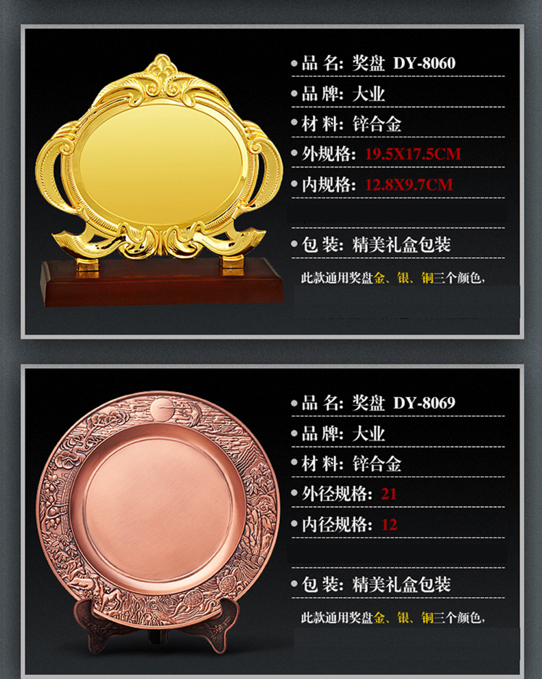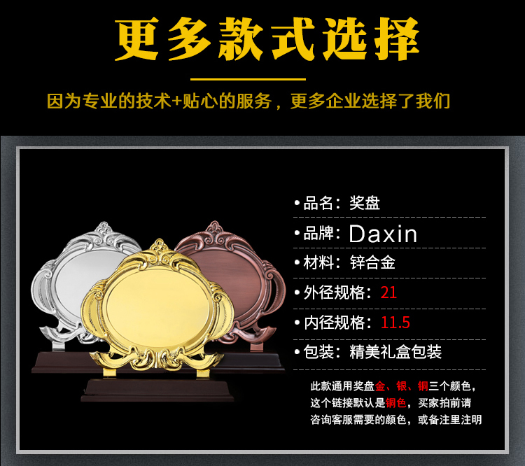 502 / 【合金奖盘】喇叭花奖盘奖牌金属锌合金奖碟商会体育运动比赛表彰颁奖定制印字
