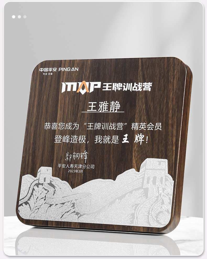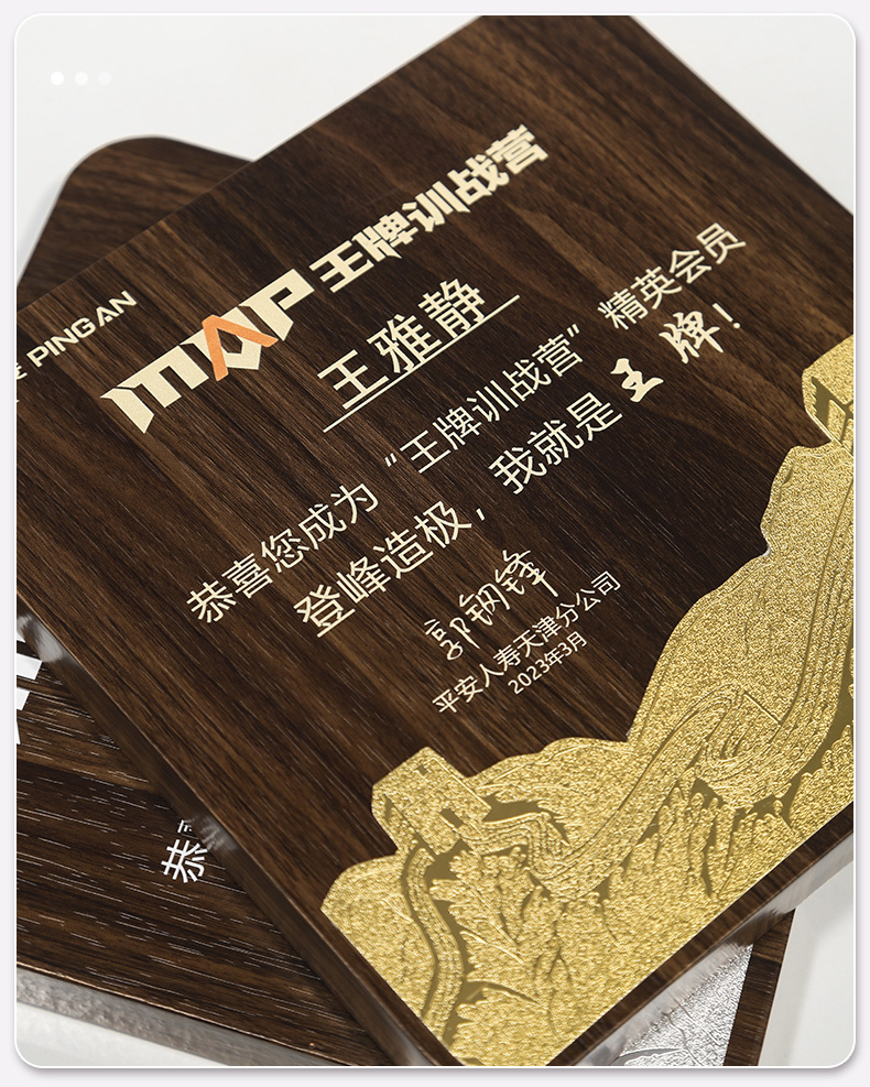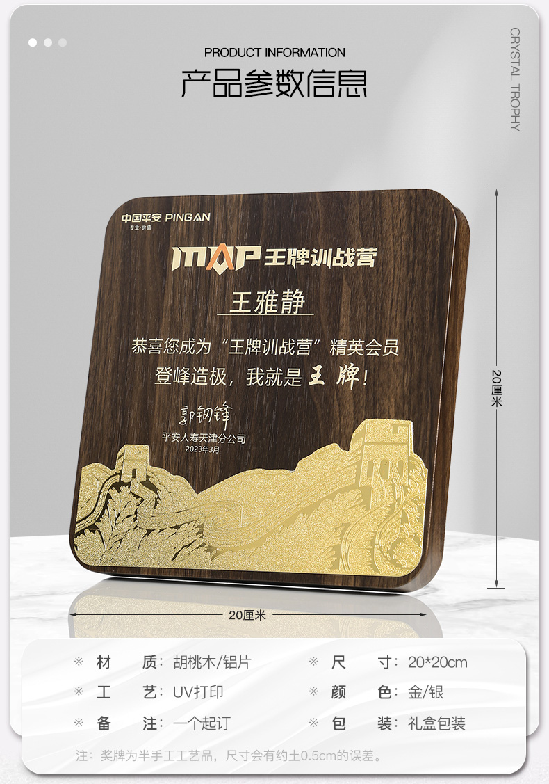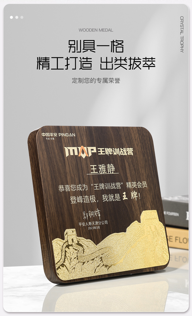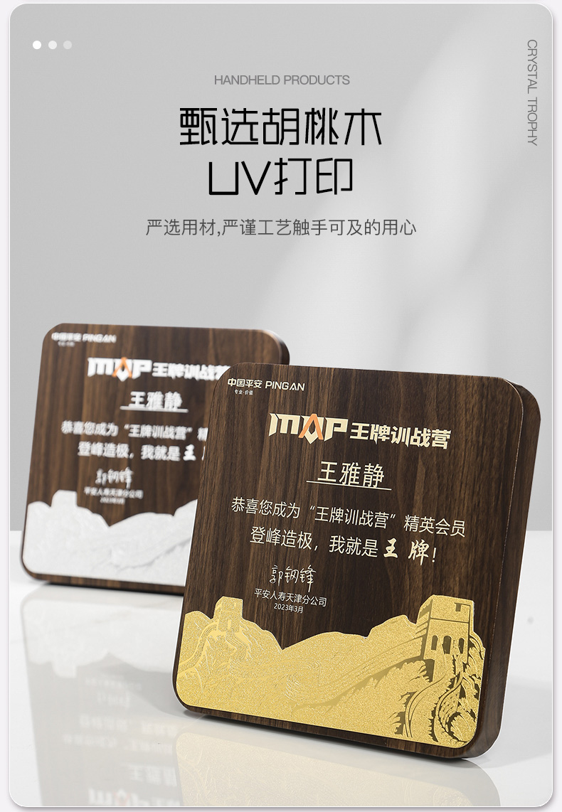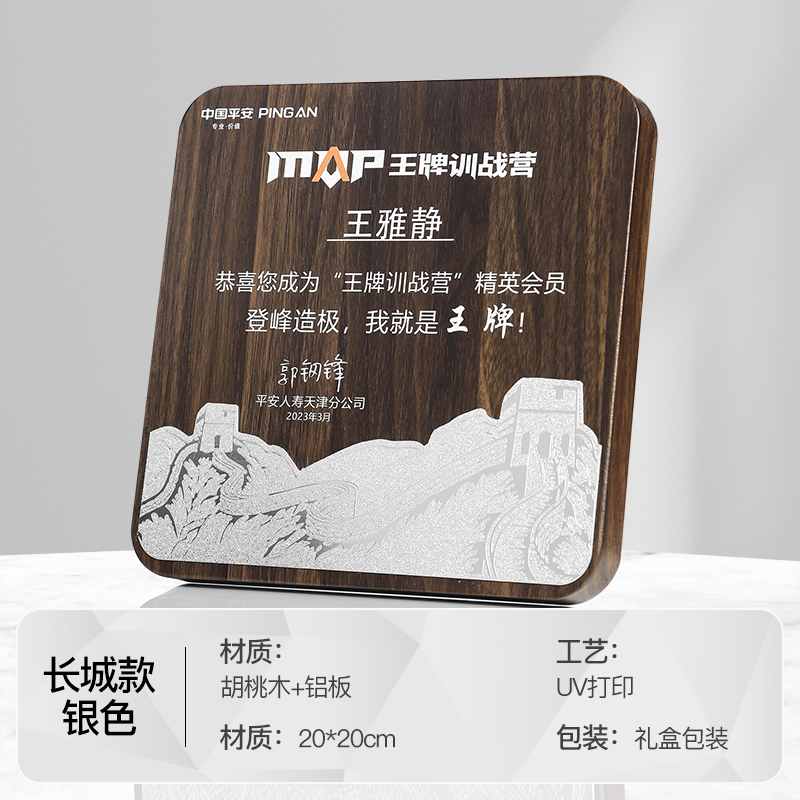 515 / 金属长城胡桃木奖牌木质奖牌定制胡桃实木加盟牌匾代理商金箔授权牌荣誉退休铜牌定做