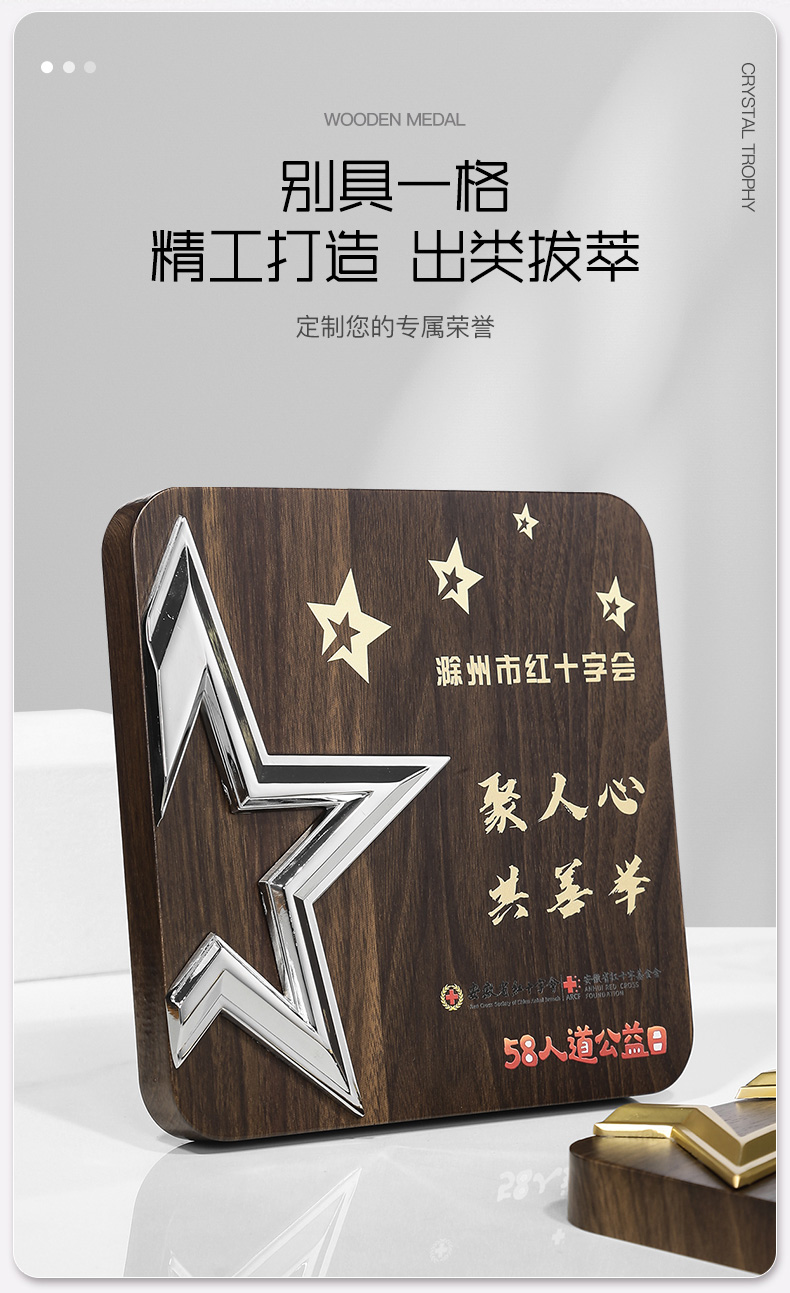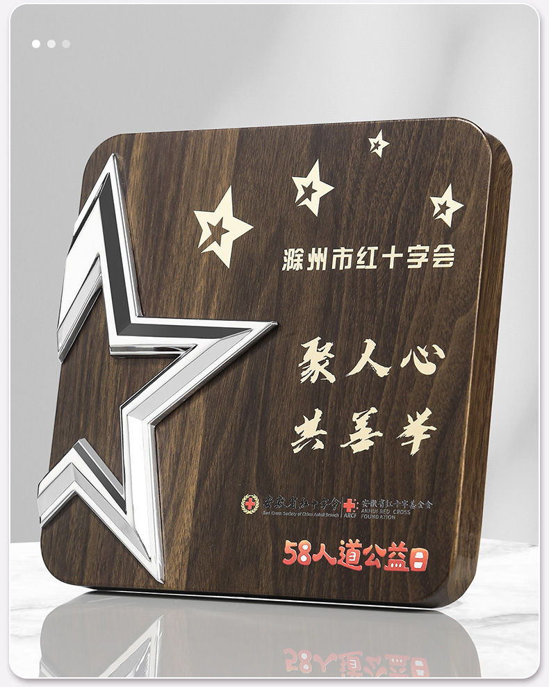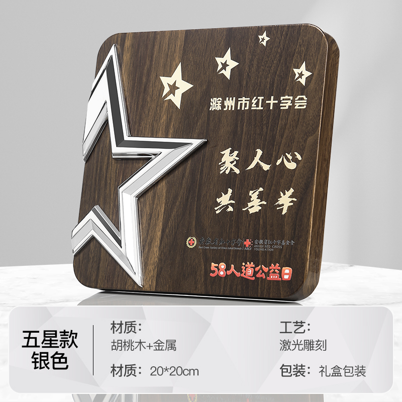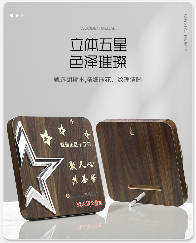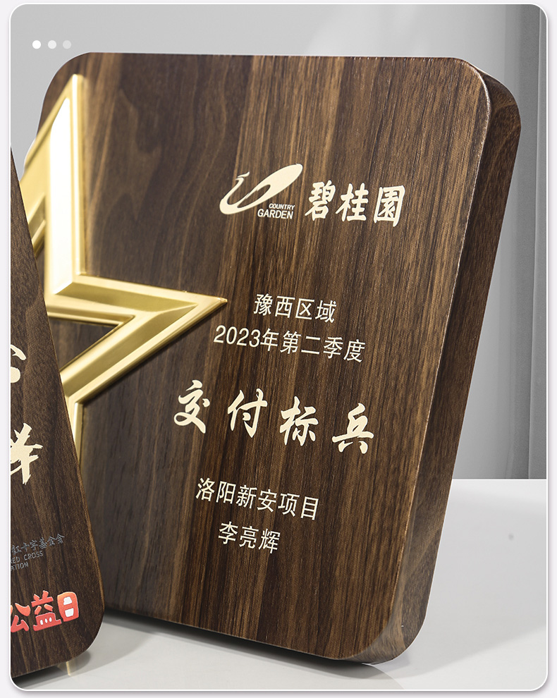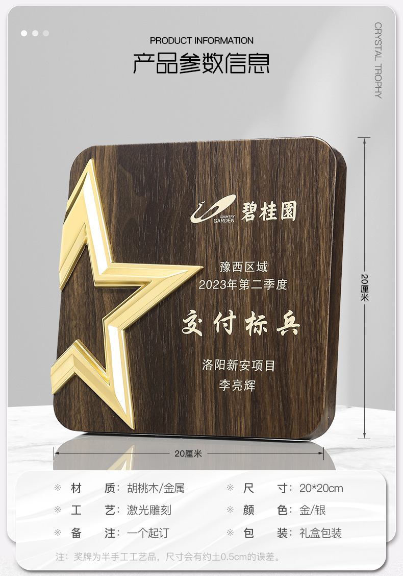 513 / 金属五星胡桃木奖牌木质奖牌定制胡桃实木加盟牌匾代理商金箔授权牌荣誉退休铜牌定做