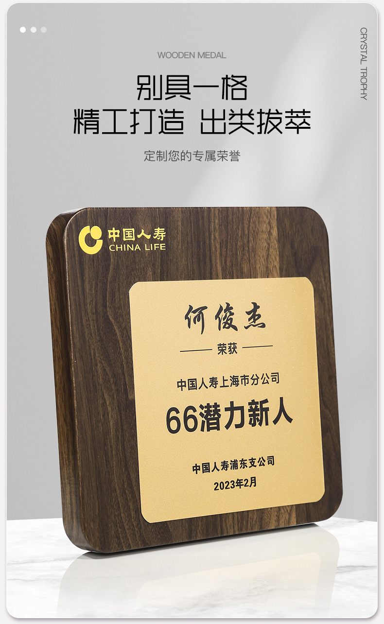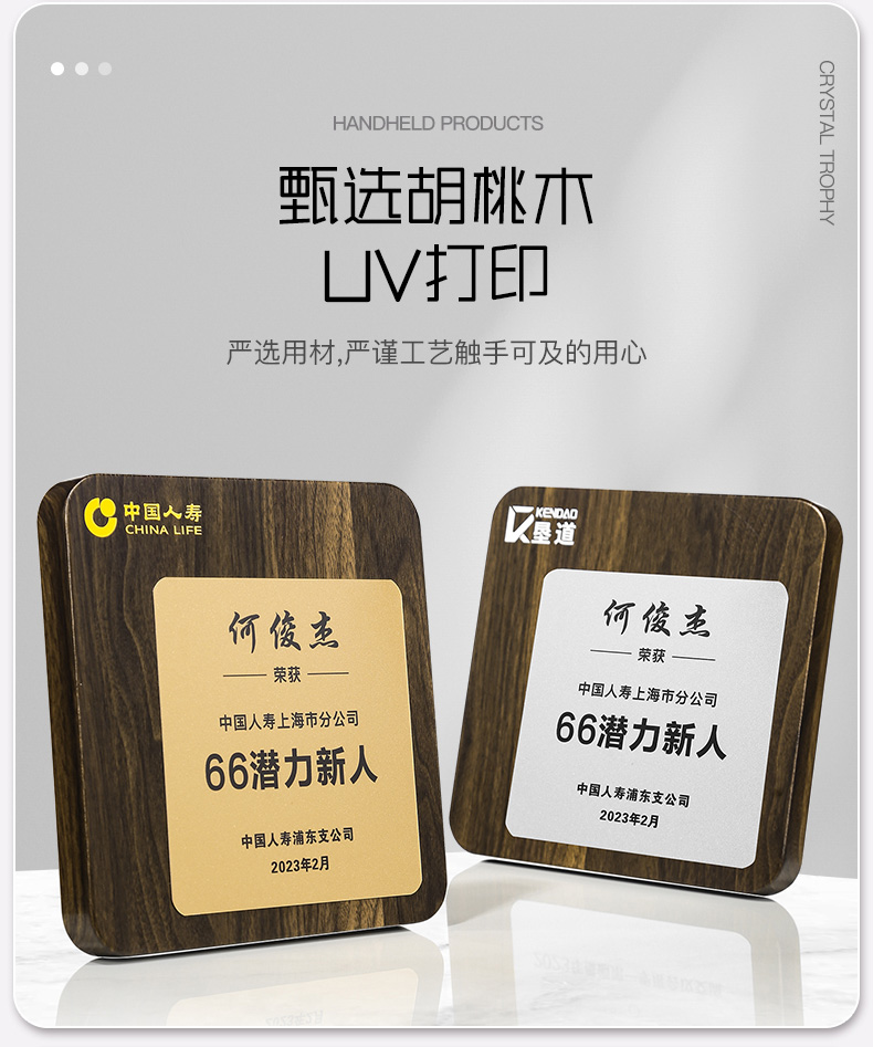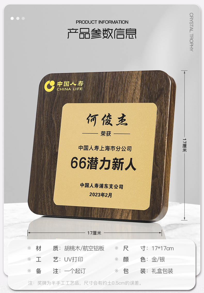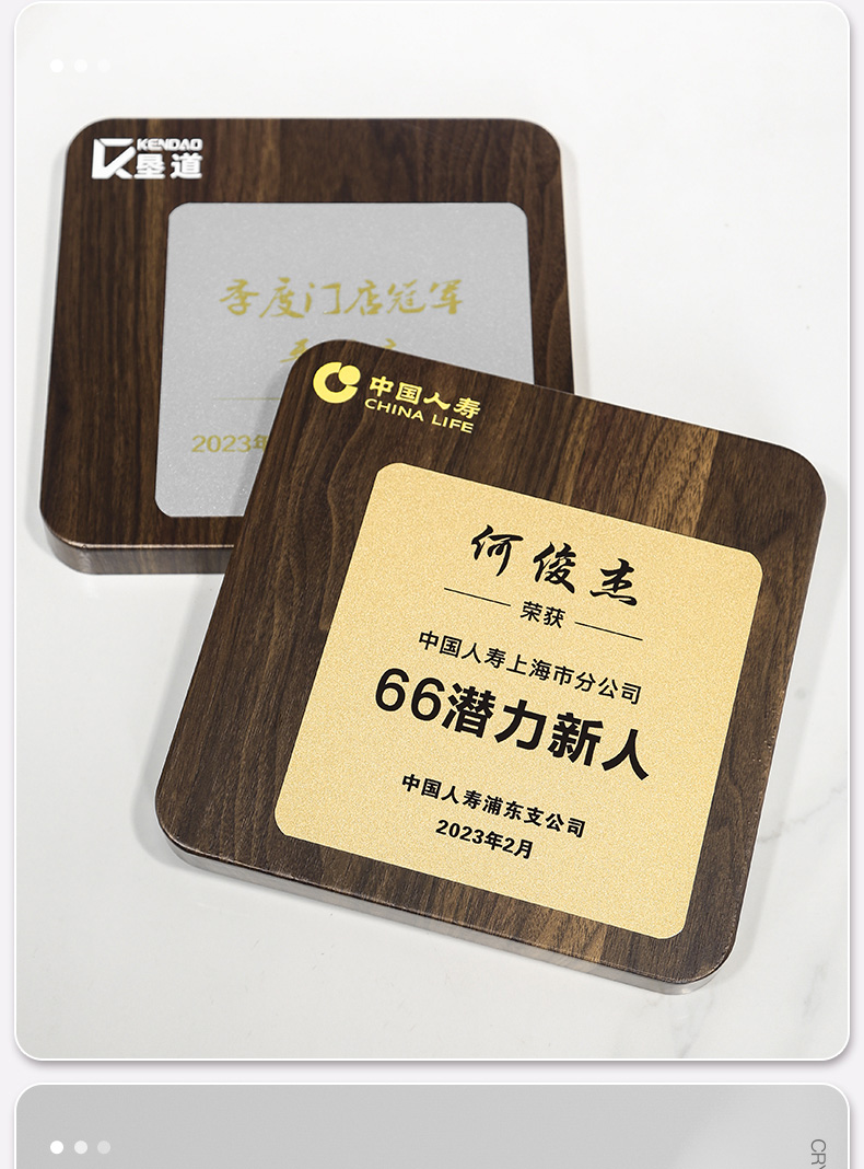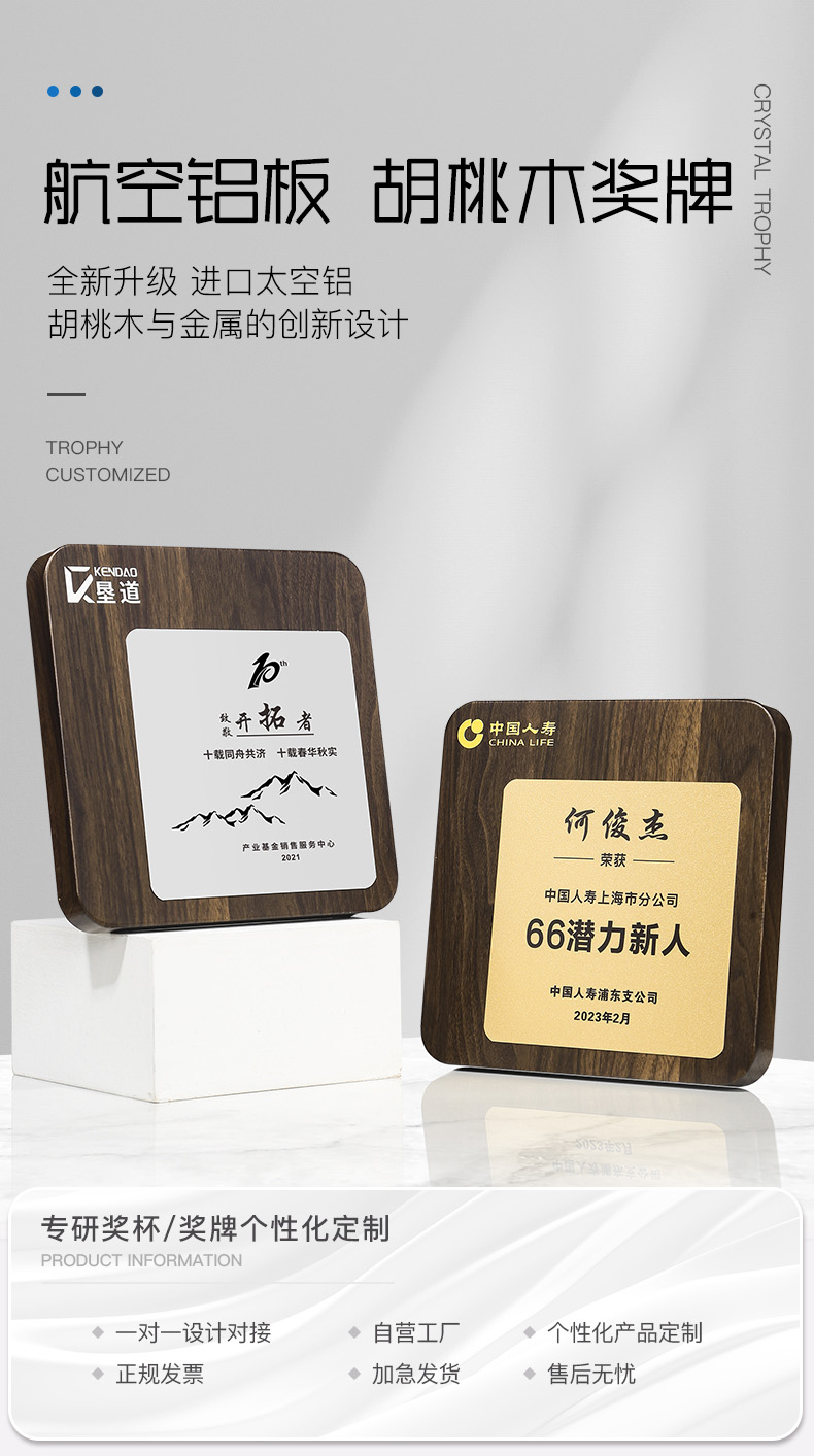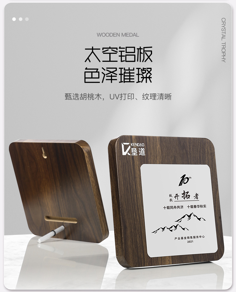 517 / 航空铝板胡桃木奖牌胡桃木奖牌定制高档木质荣誉牌匾挂墙证书聘书加盟会员授权牌订制