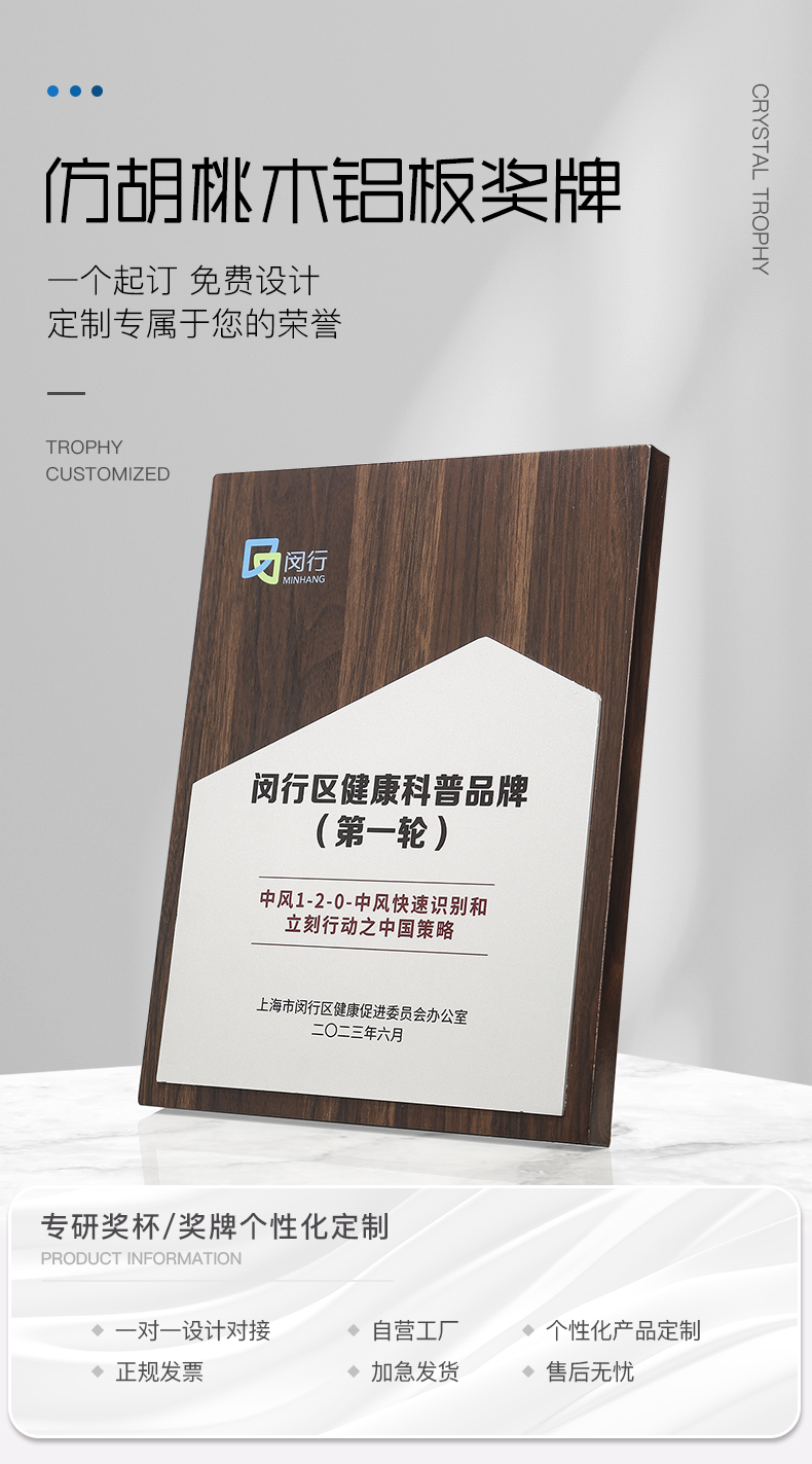 519 / 胡桃木铝片奖牌授权牌黑胡桃实木质奖牌定制定做创意高档代理加盟经销商授权牌荣誉牌匾