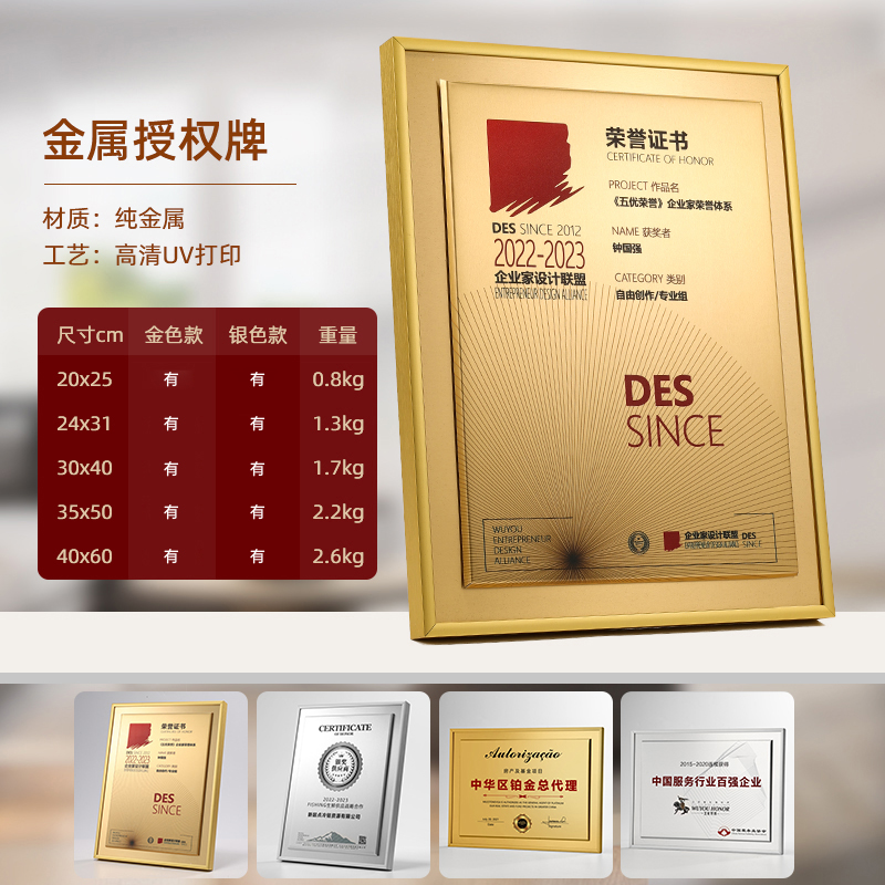 80 / 高档金属奖牌定制订做加盟代理授权牌荣誉牌聘书颁奖杯经销商纪念