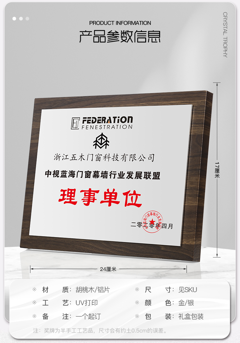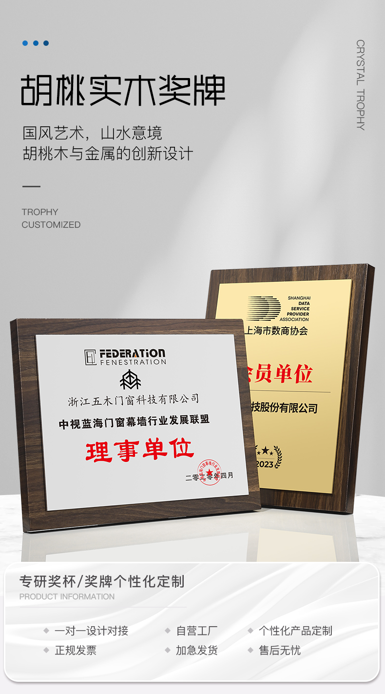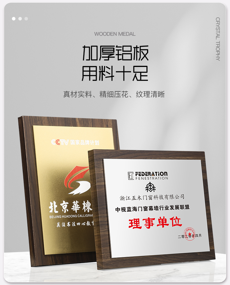 520 / 胡桃木实木航空铝板奖牌黑胡桃实木质奖牌定制定做创意高档代理加盟经销商授权牌荣誉牌匾