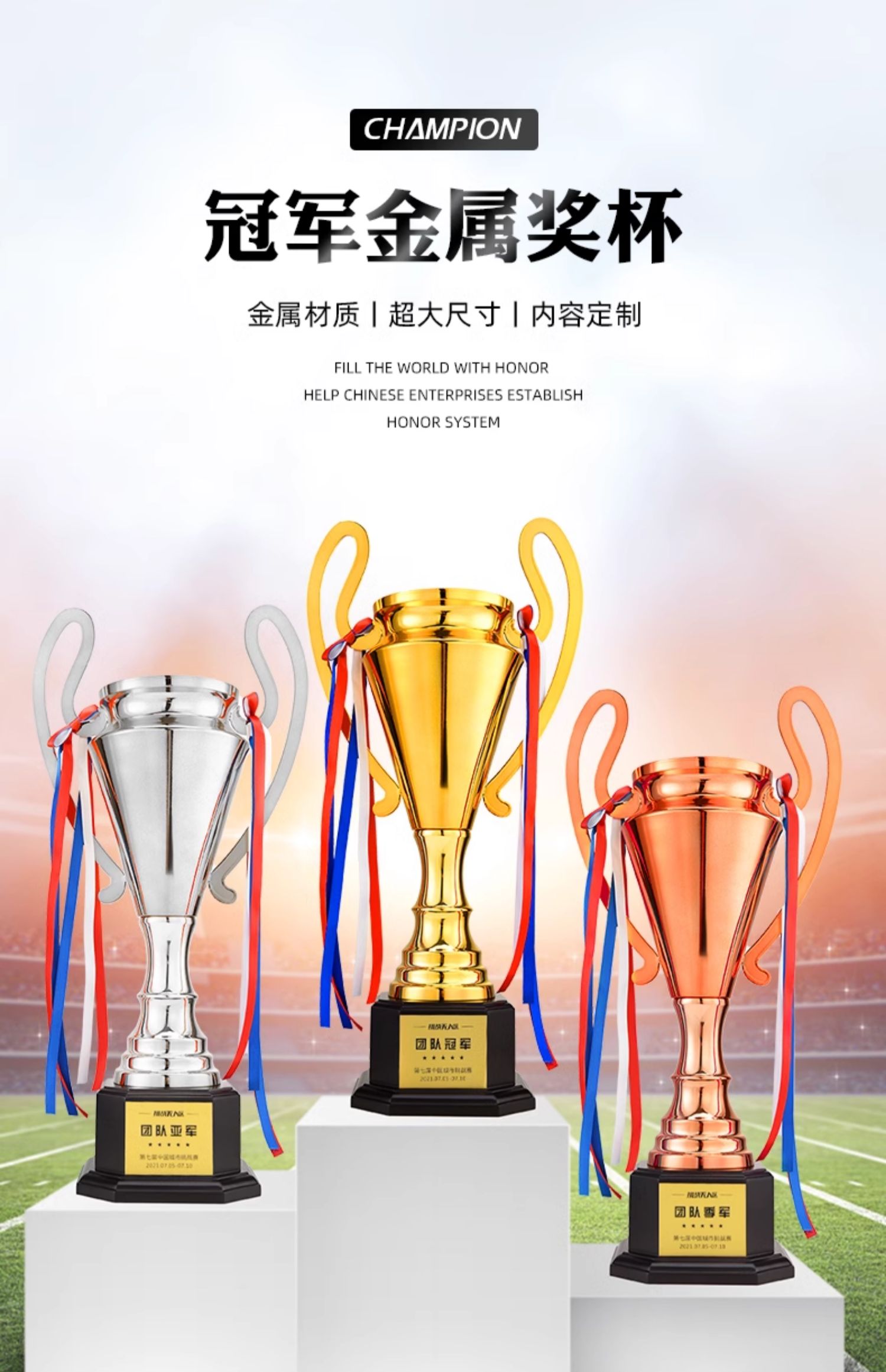 81 / 【大金属奖杯】团队冠军金银铜超大金属奖杯定制欧冠足球比赛订制篮球赛MVP订做