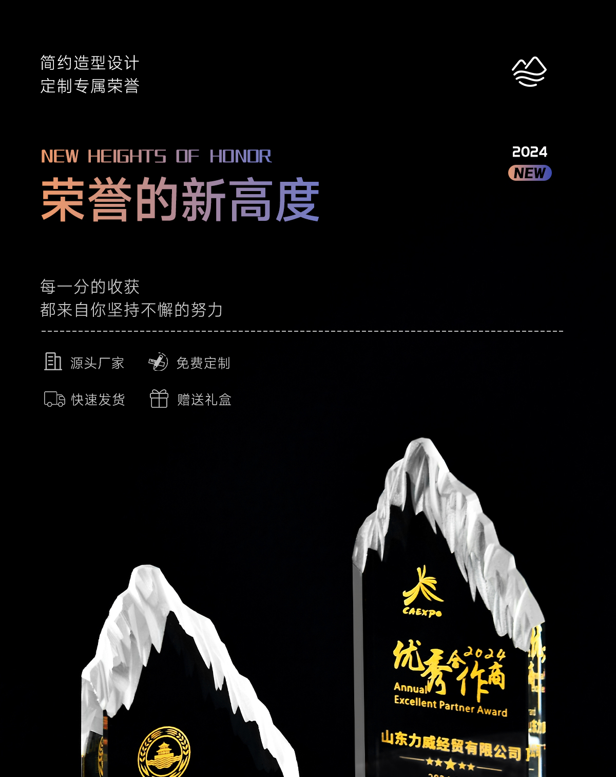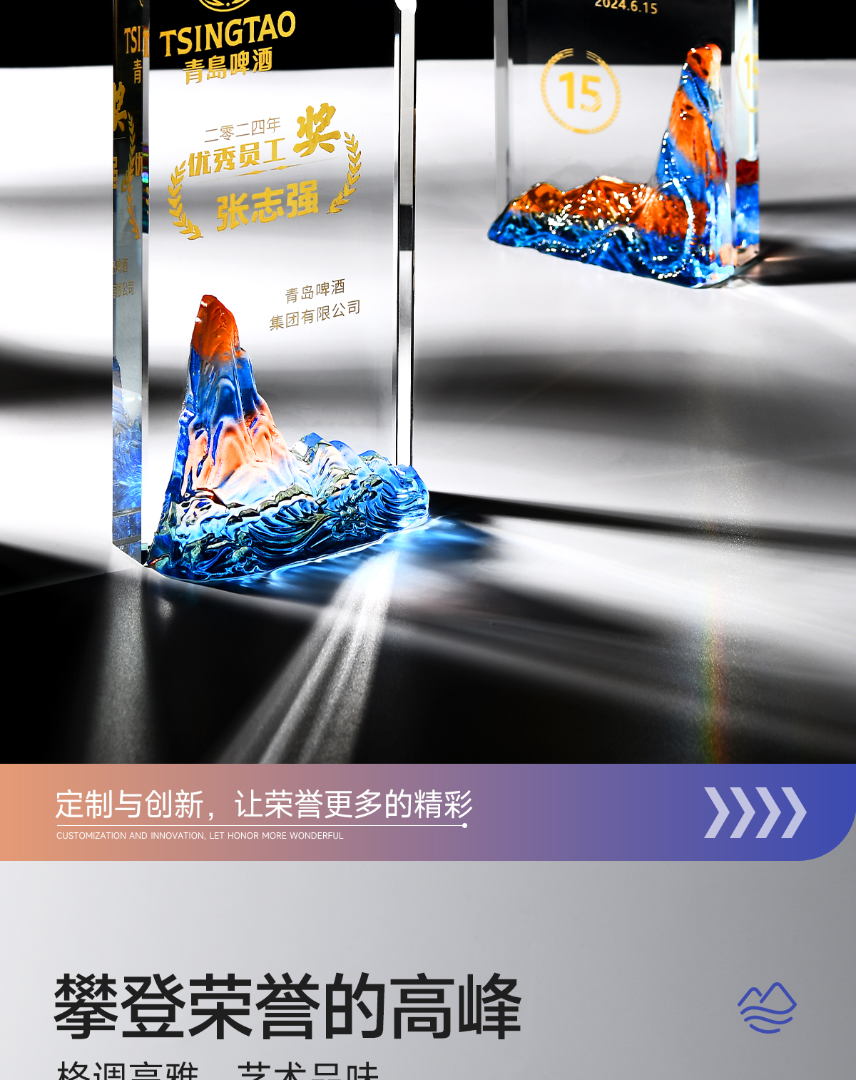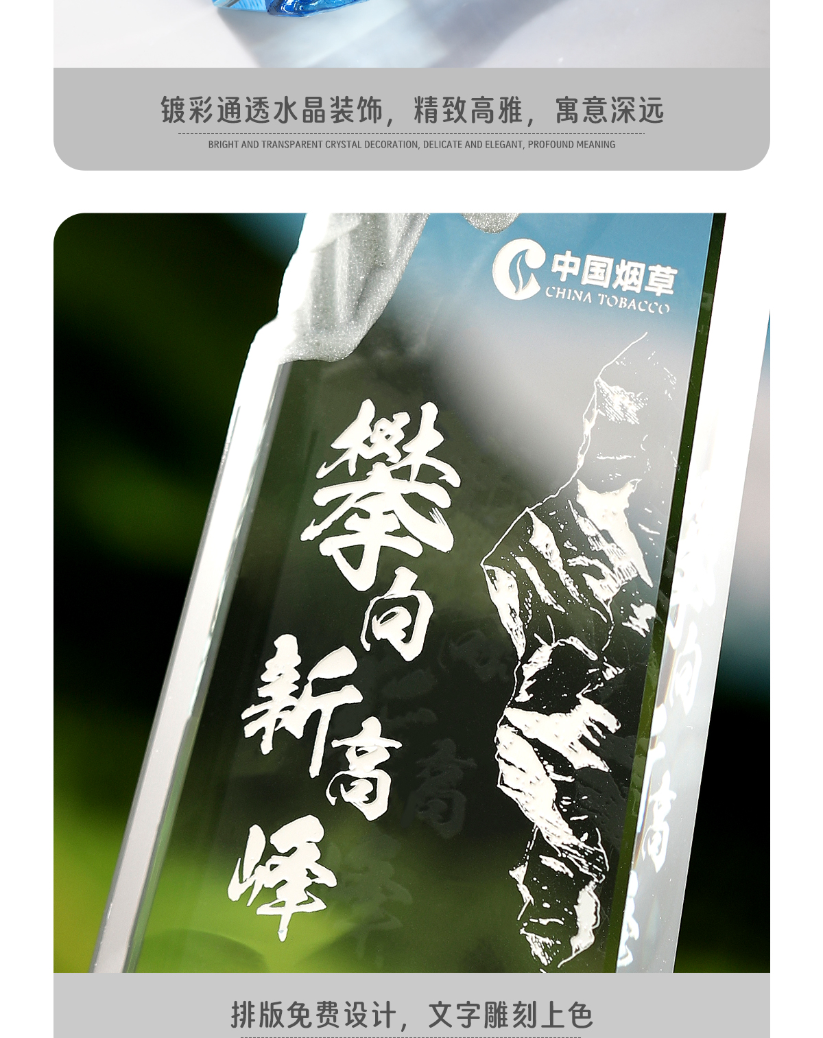 221 / 水晶奖杯定制刻字创意山峰高端大气企业活动颁奖优秀员工奖牌定制