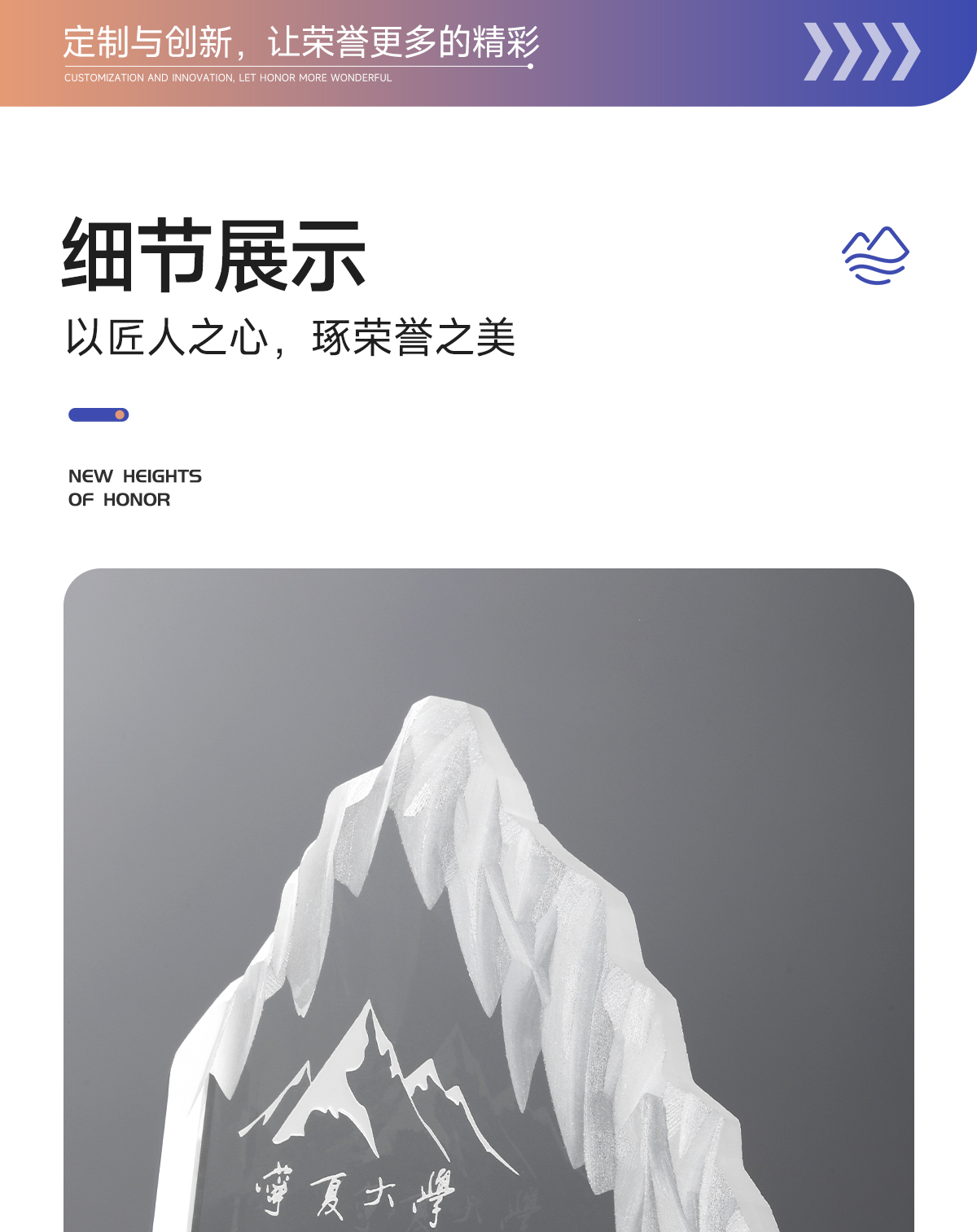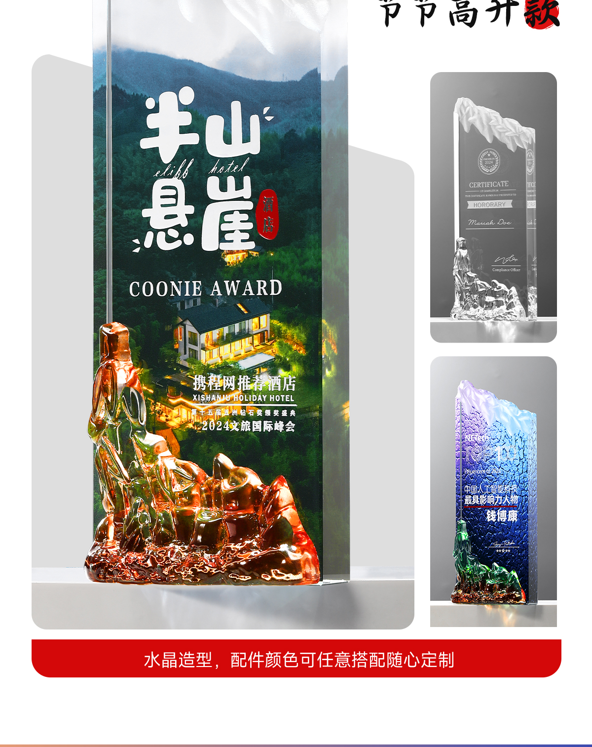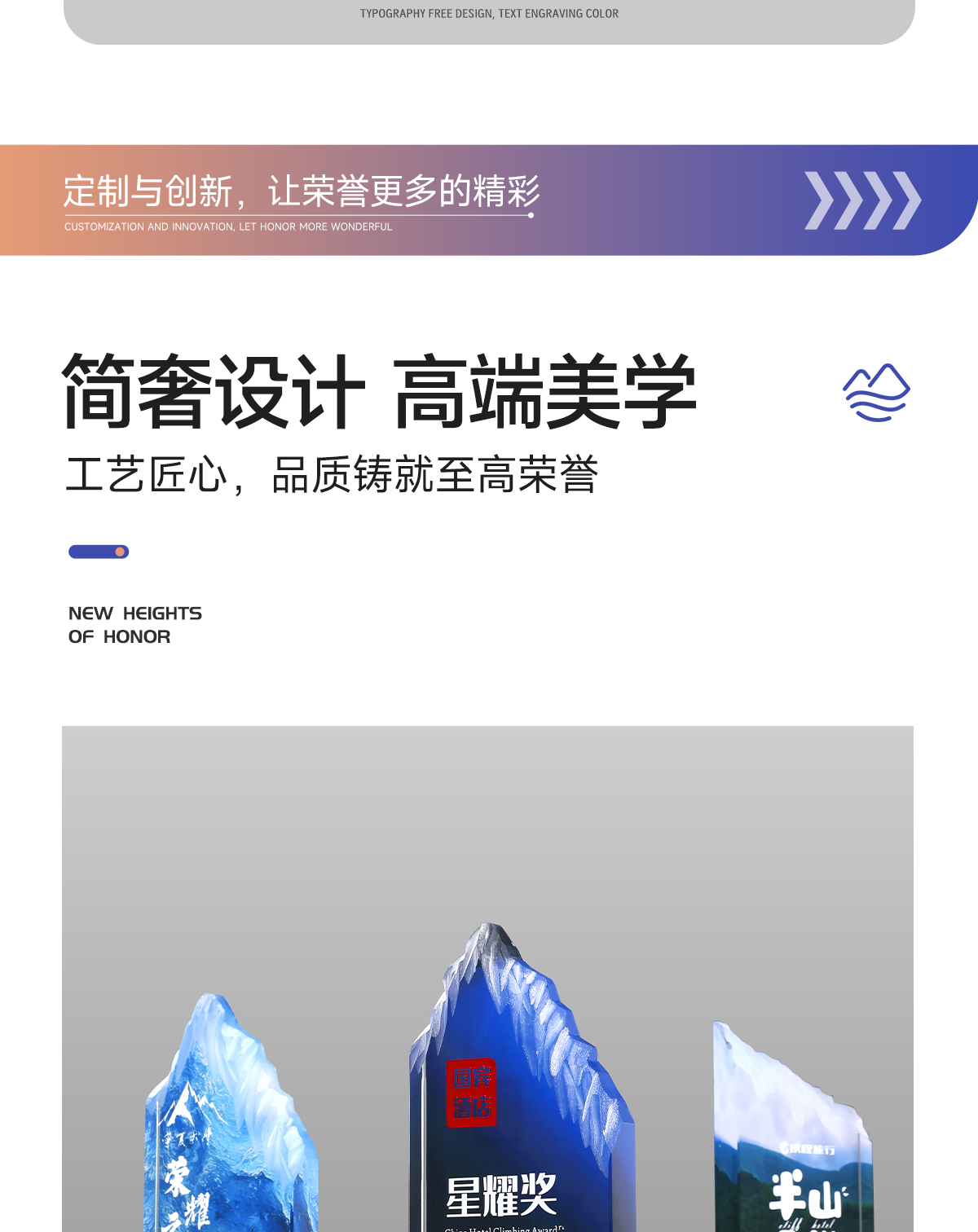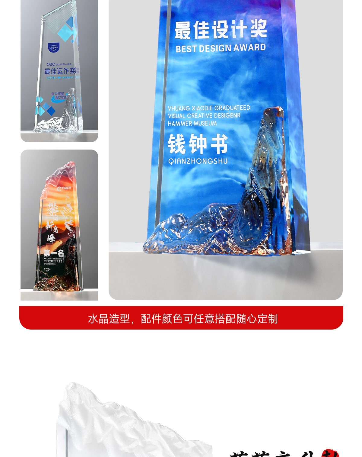 221 / 水晶奖杯定制刻字创意山峰高端大气企业活动颁奖优秀员工奖牌定制