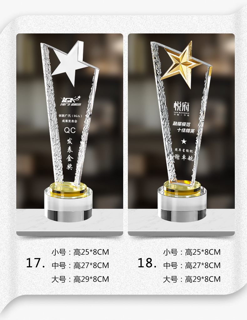 108 / 水晶奖杯定制创意五角星年会颁奖优秀员工奖牌订做玻璃刀片授权牌
