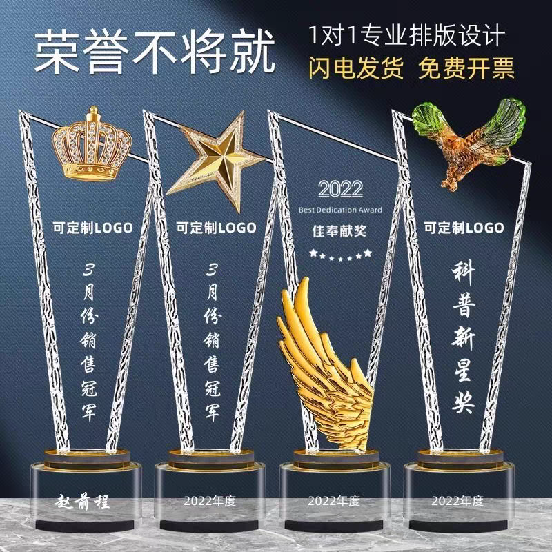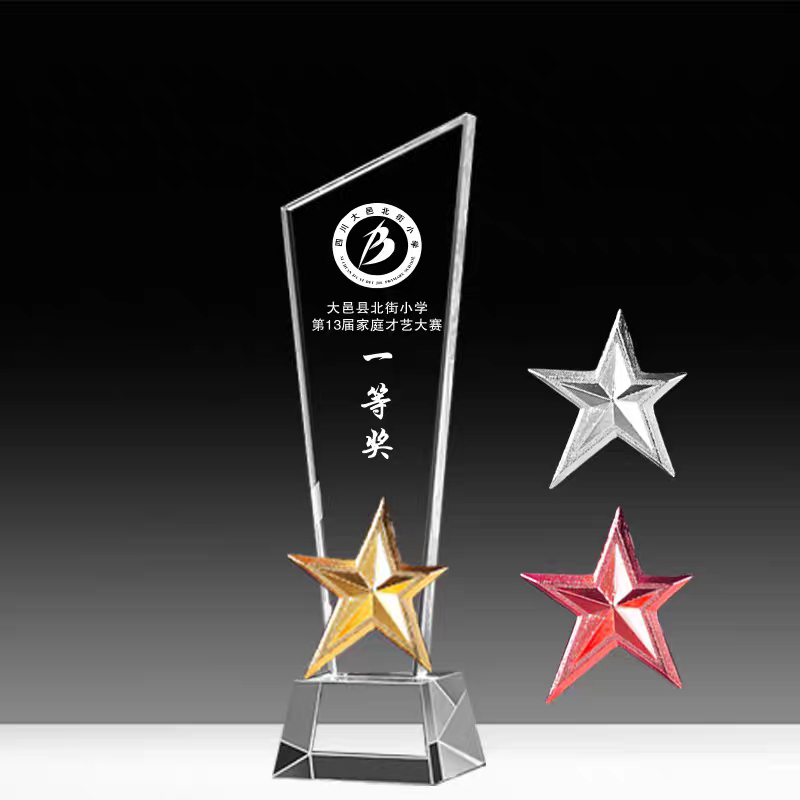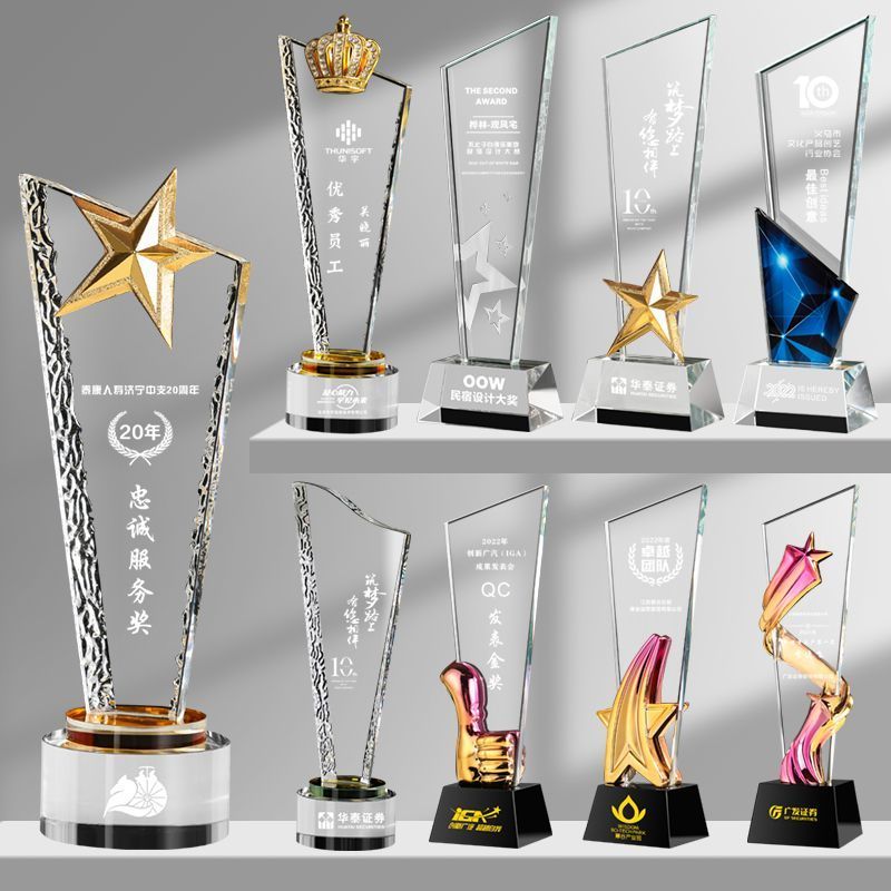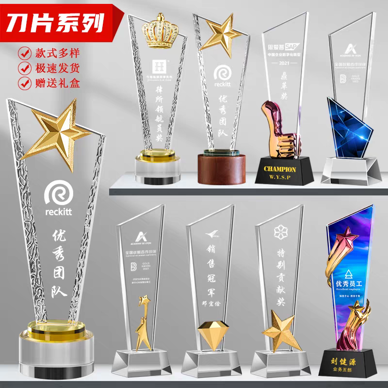 110 / 水晶奖杯定制创意五角星年会颁奖优秀员工奖牌订做玻璃刀片刻字
