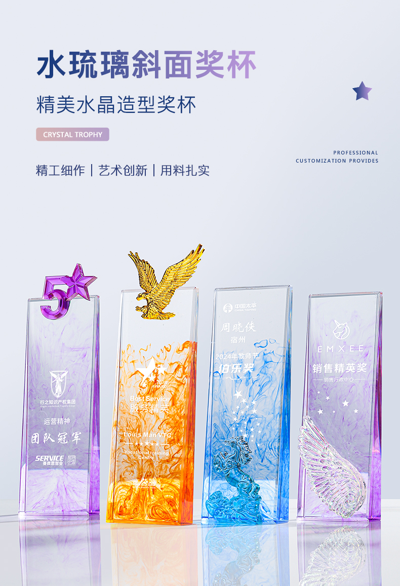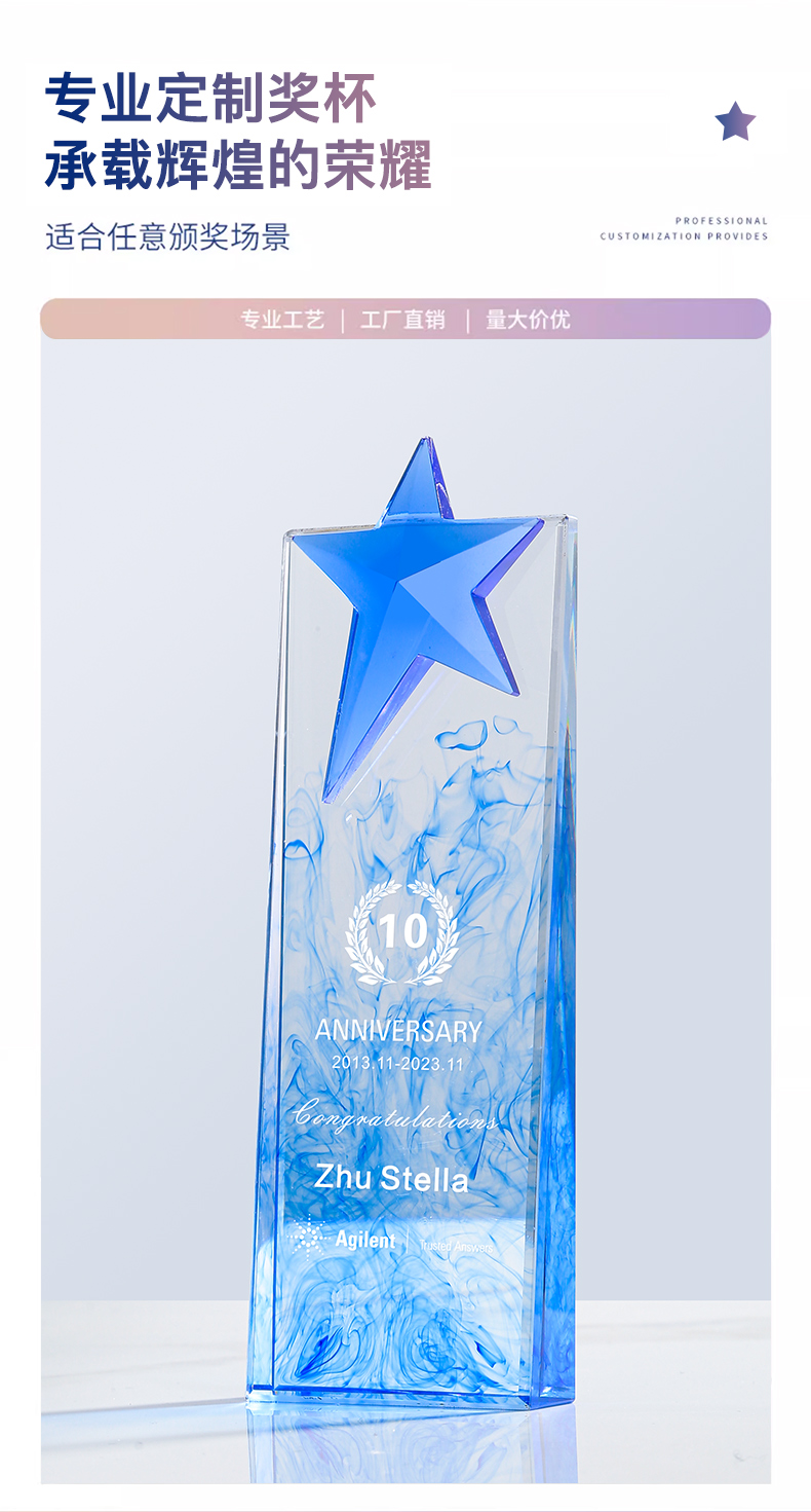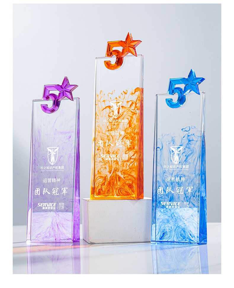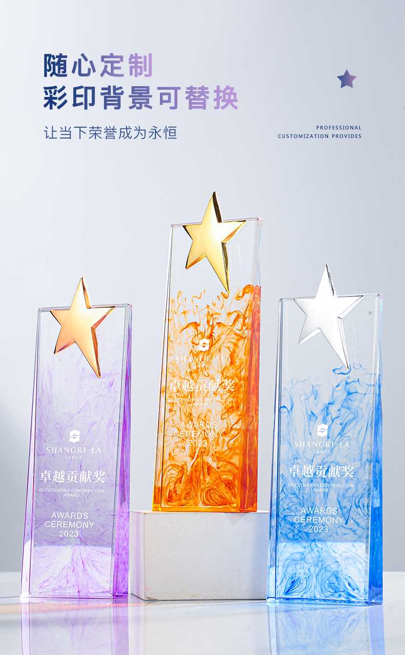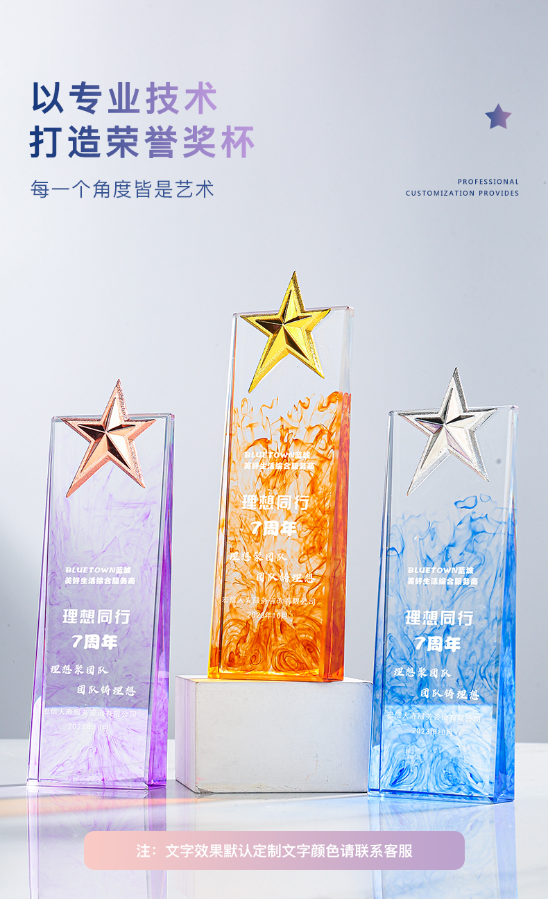 364 / 水晶奖杯奖牌定制斜面板五角星琉璃优秀员工年会颁奖纪念