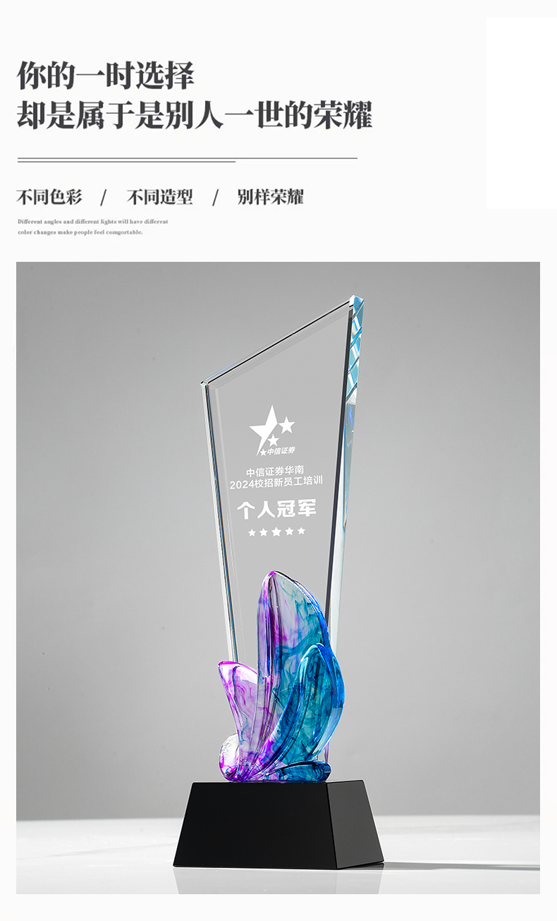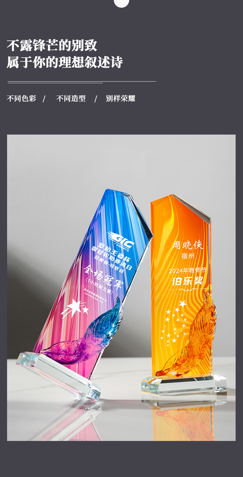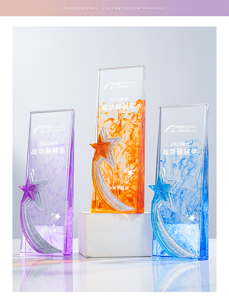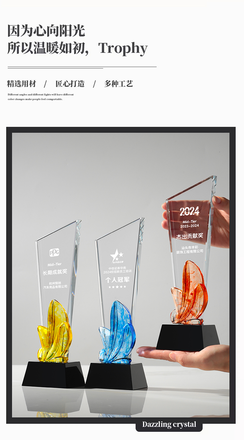 364 / 水晶奖杯奖牌定制斜面板五角星琉璃优秀员工年会颁奖纪念
