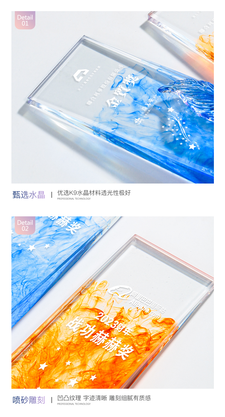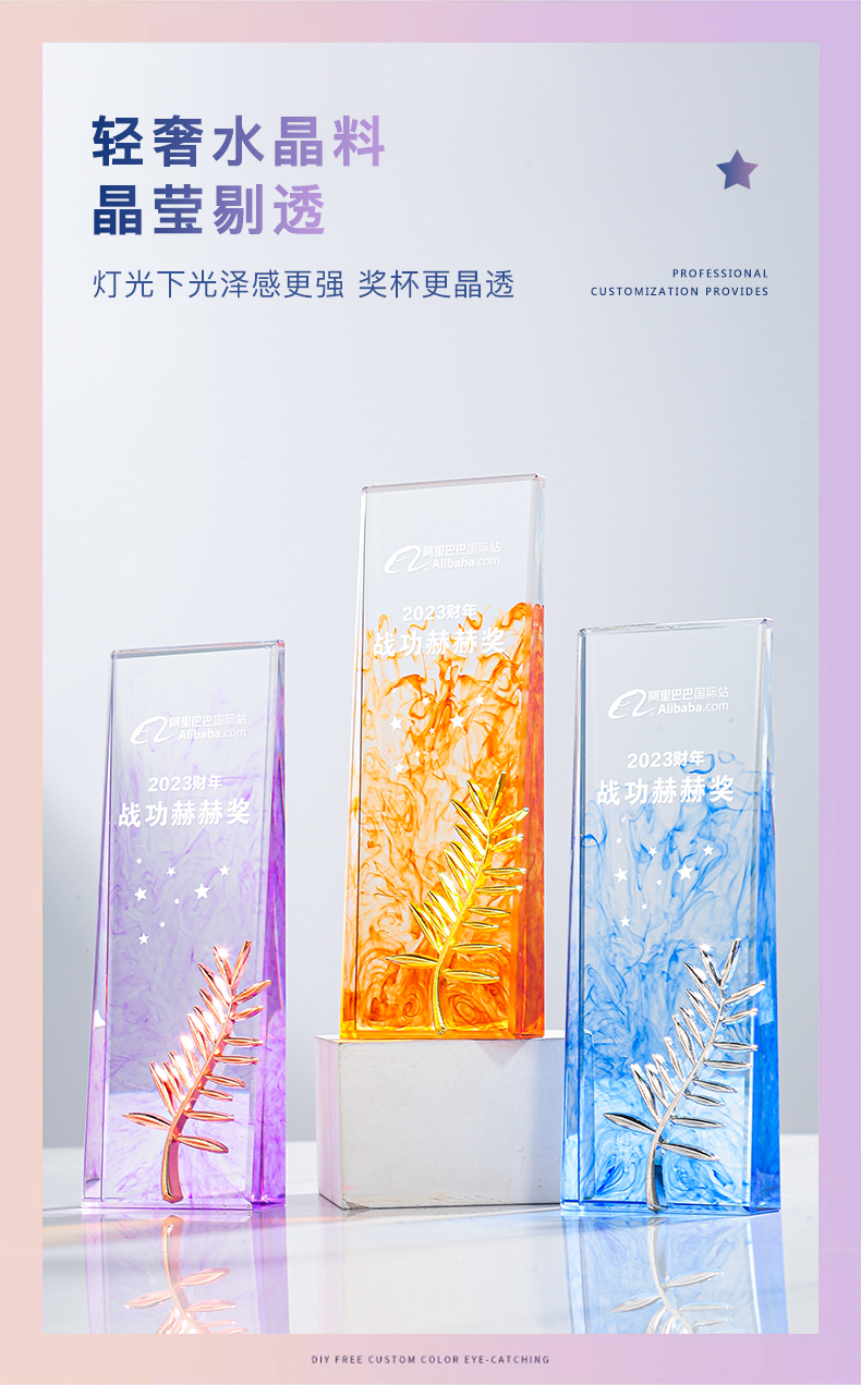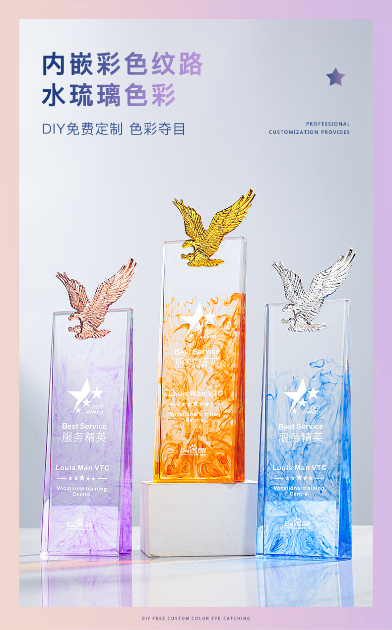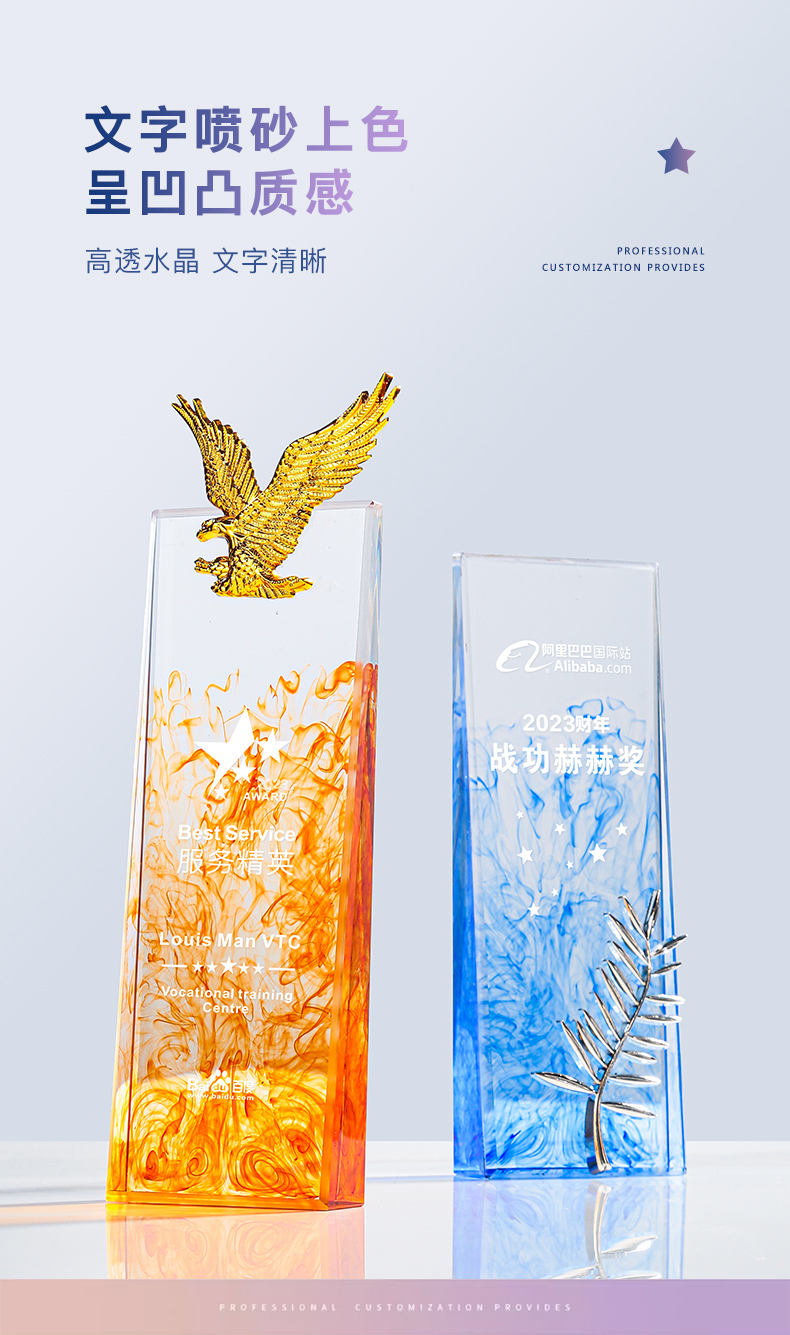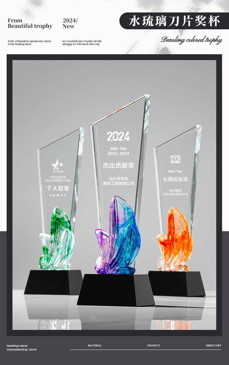 364 / 水晶奖杯奖牌定制斜面板五角星琉璃优秀员工年会颁奖纪念