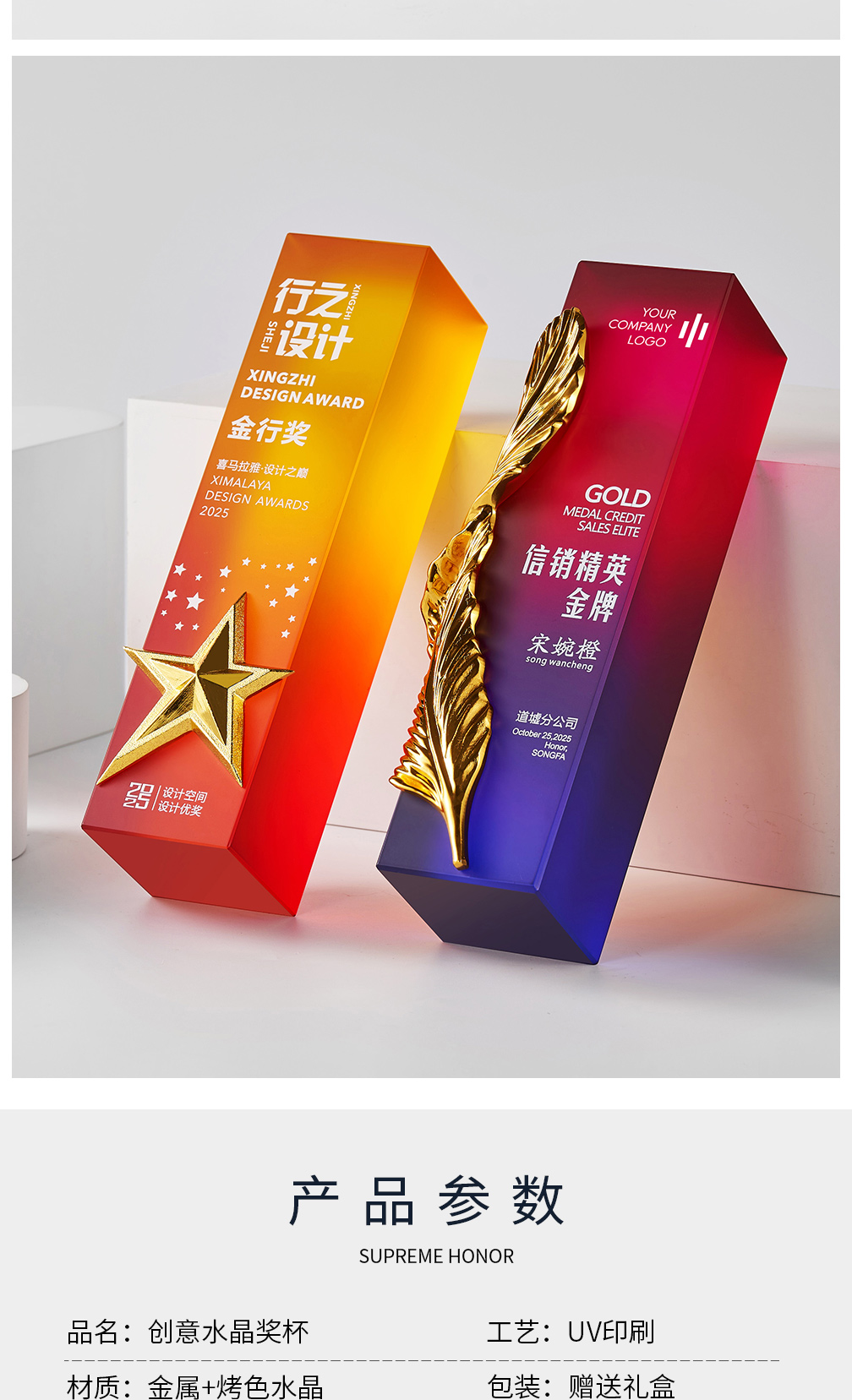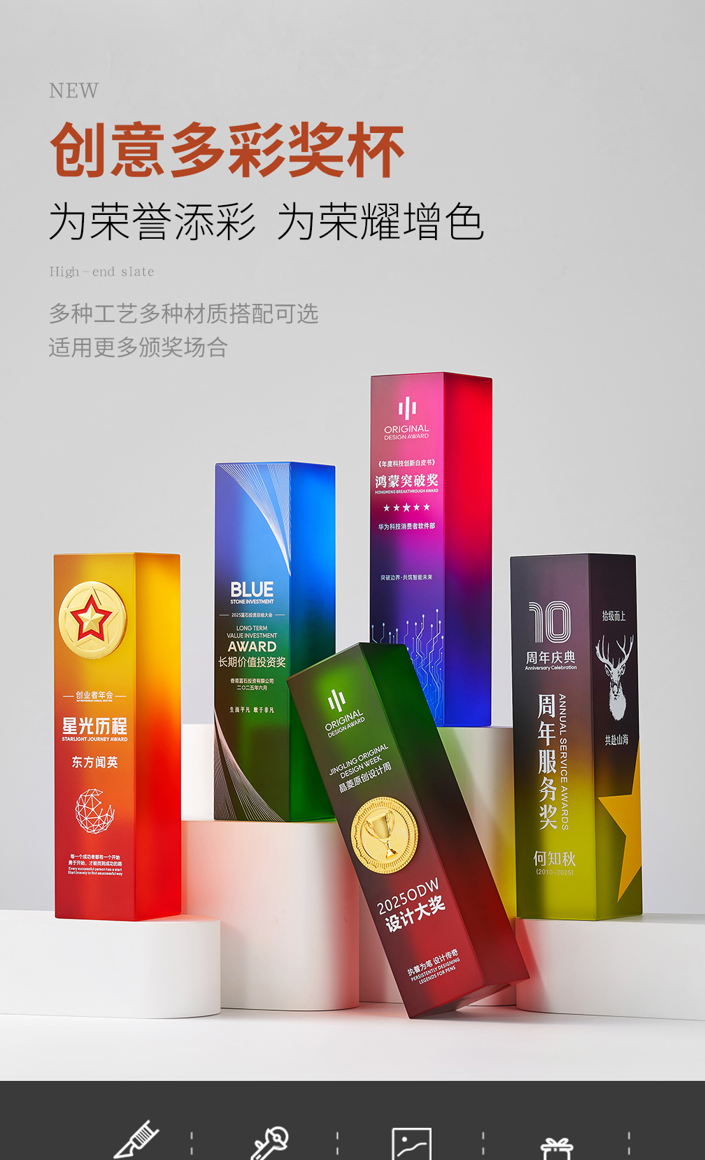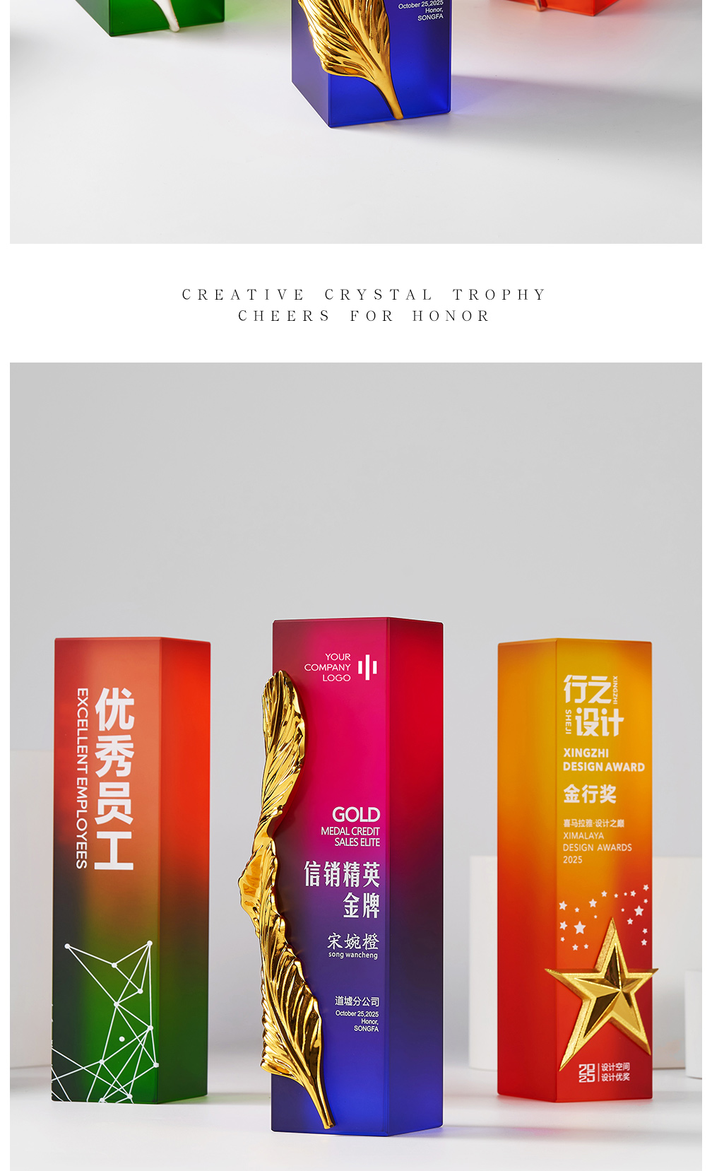 207 / 2025新款创意奖杯定制高档年会优秀员工周年比赛冠军颁奖炫彩奖杯