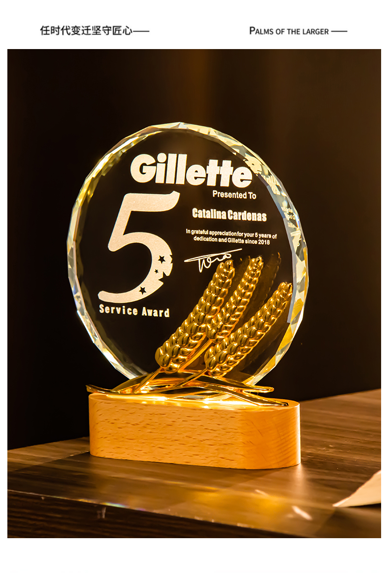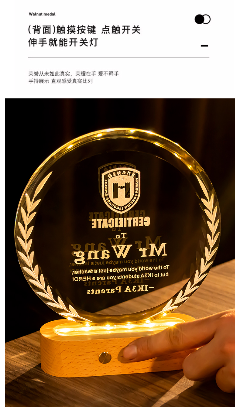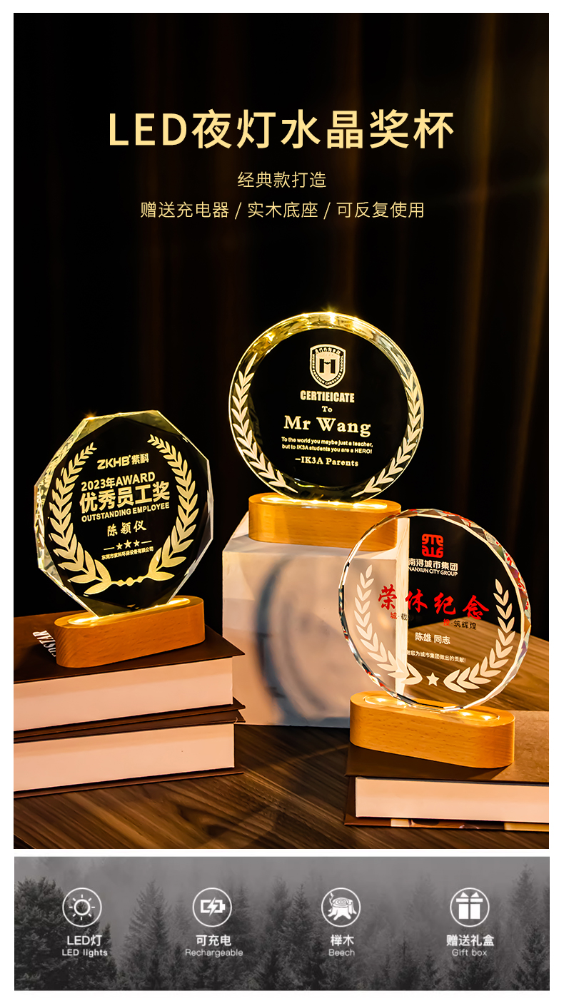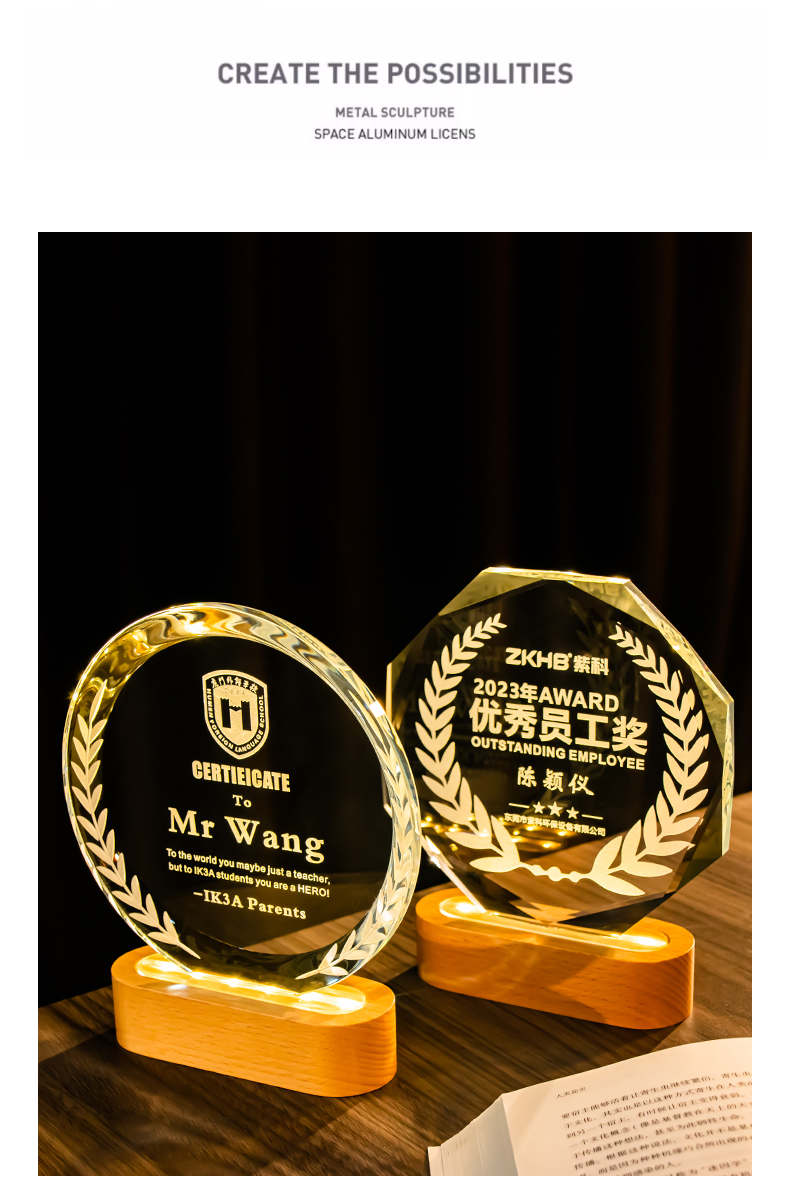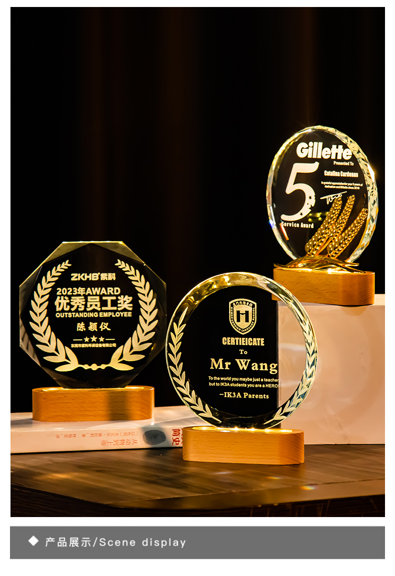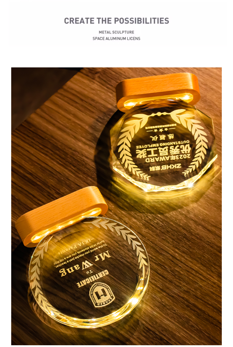 361 / 新款水晶奖杯定制定做创意年会颁奖优秀员工荣誉发光奖牌订制纪念