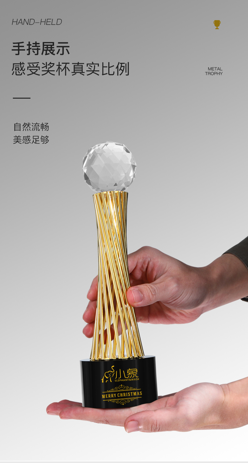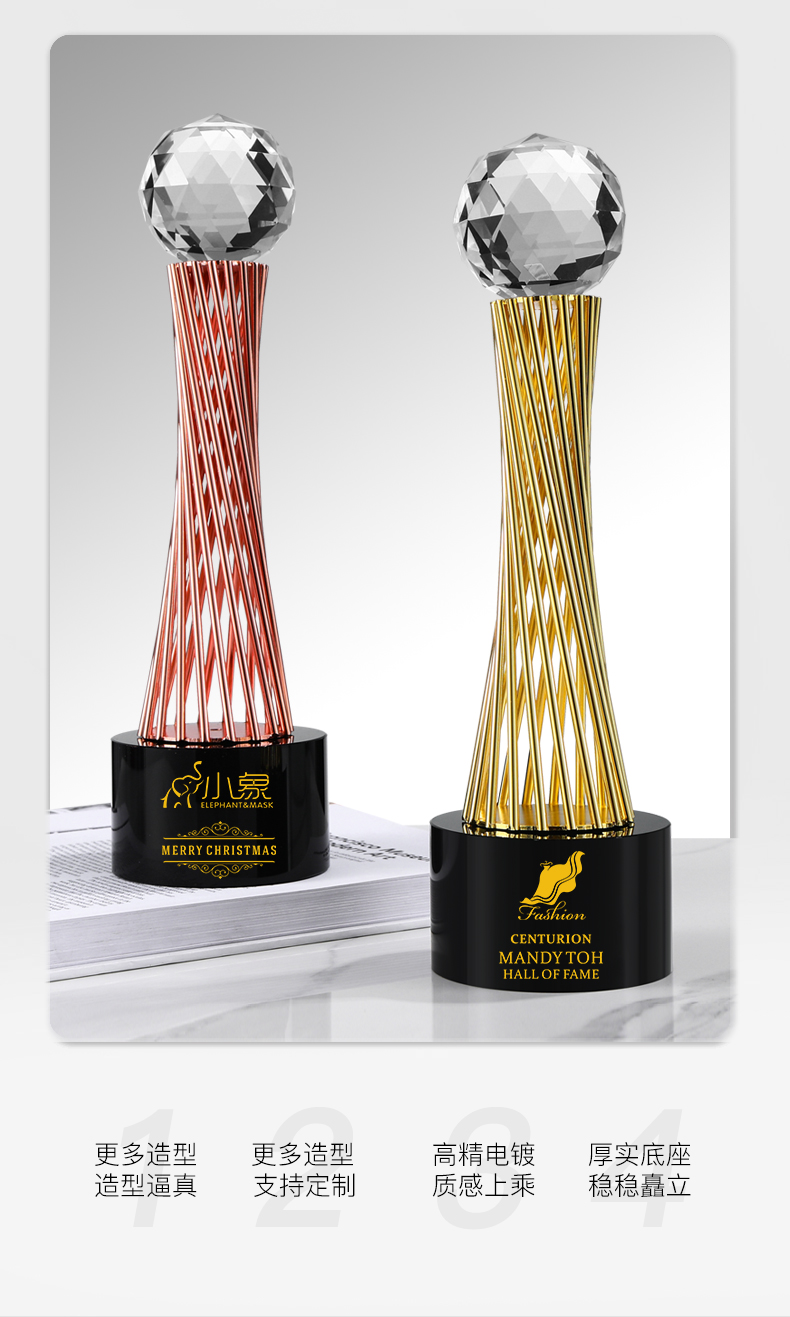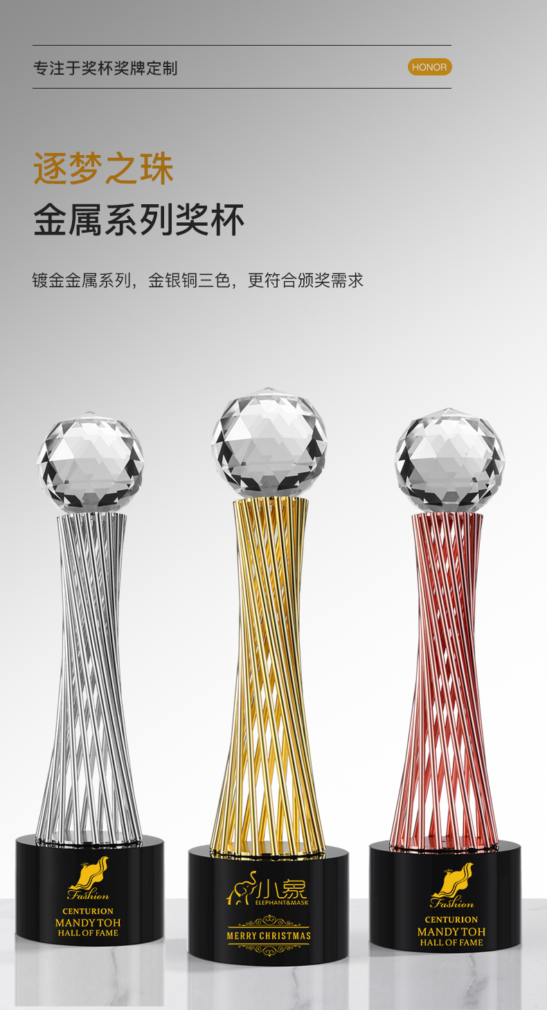 1036 / 金属奖杯定制创意高档大气水晶奖牌定做设计刻字优秀员工奖杯订制